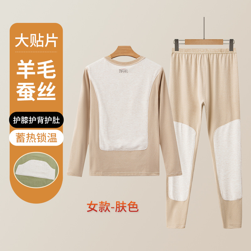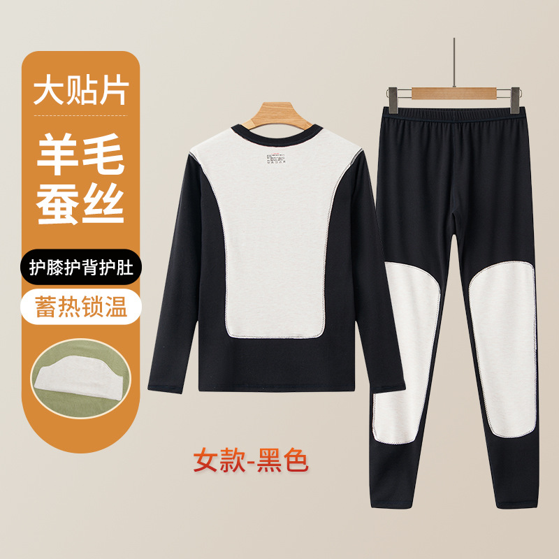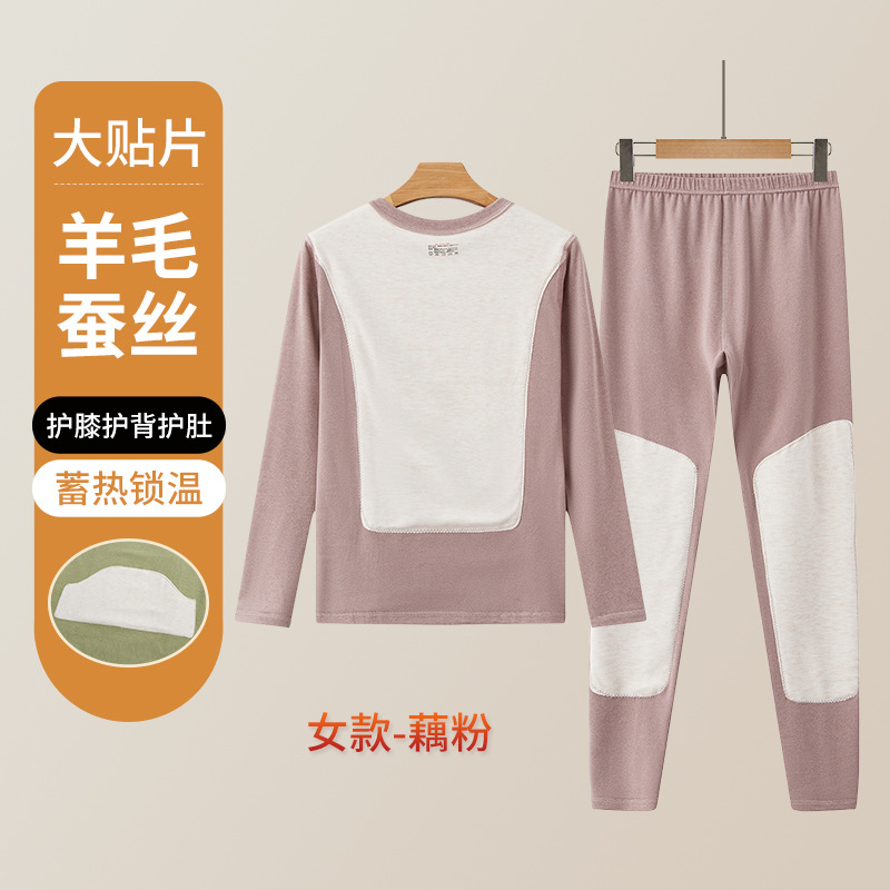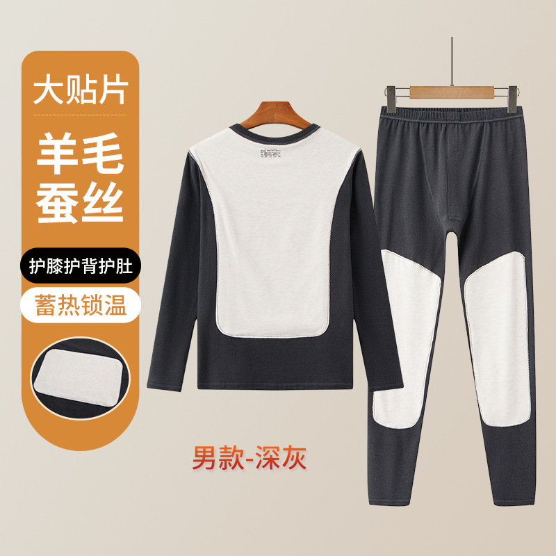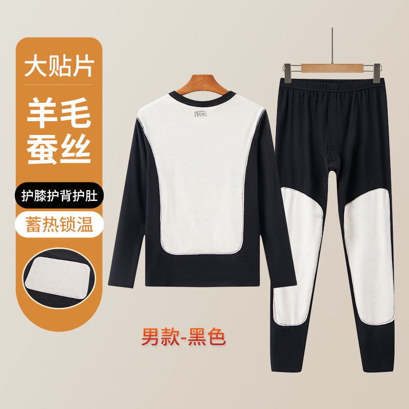 男士保暖内衣套装加厚防寒护膝贴片情侣睡衣打底衫蚕丝秋衣秋裤女