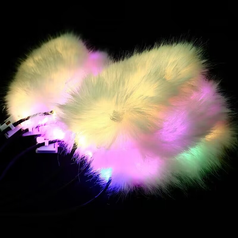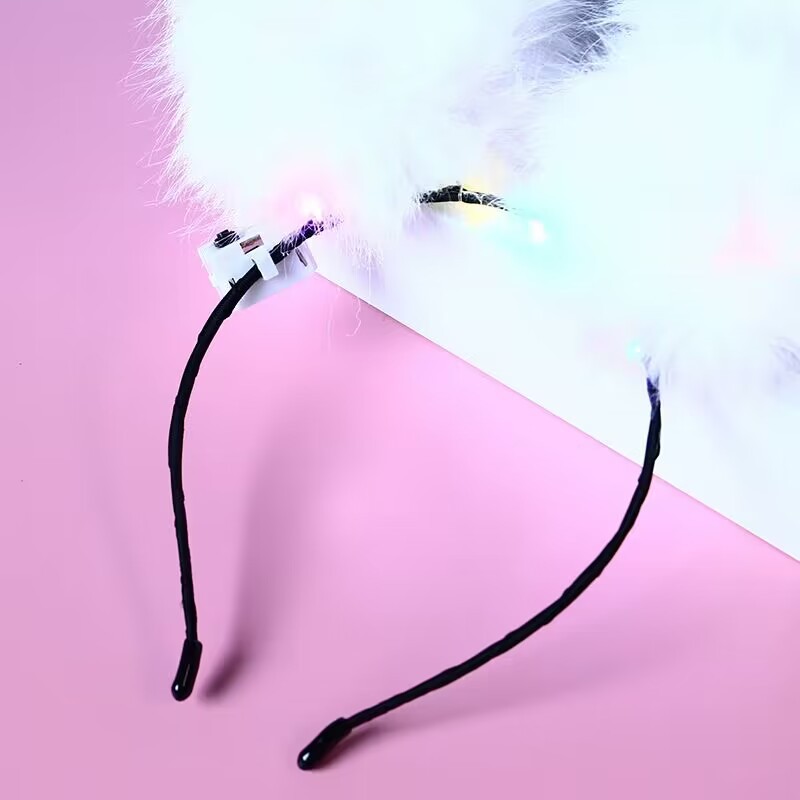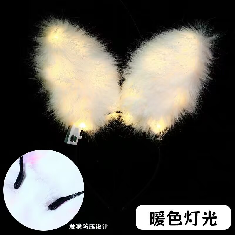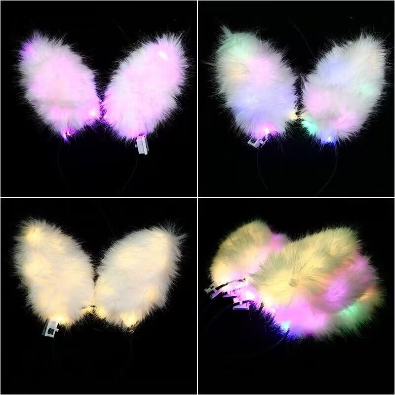 新款绒毛兔耳朵发饰发光兔耳朵纯手工制作酒吧夜市地摊儿童玩具批