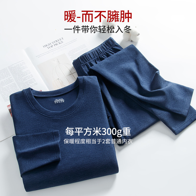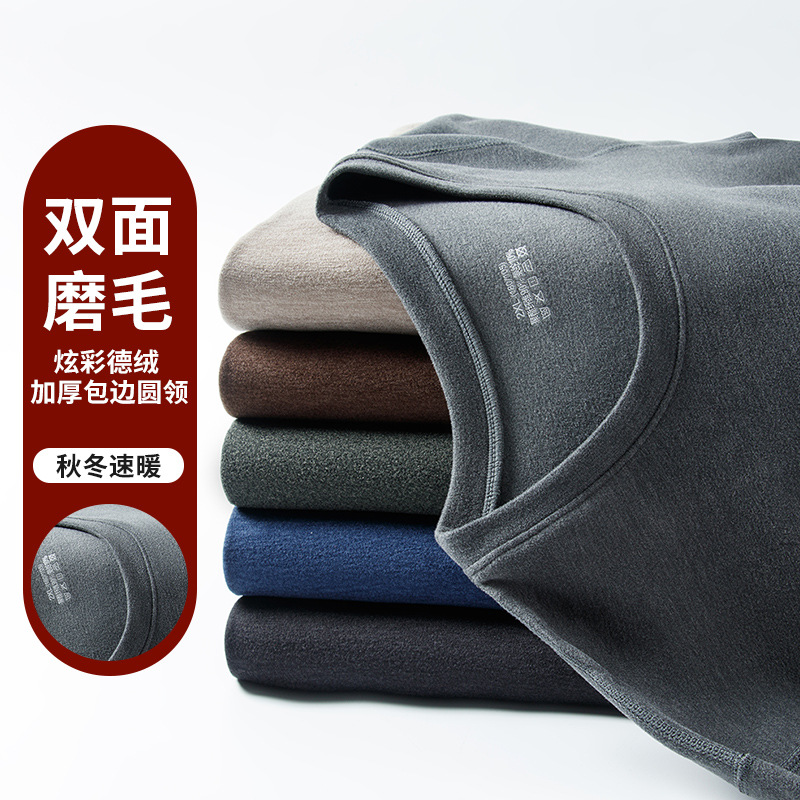 新款男士炫彩绒德保暖内衣修身圆领长袖长裤保暖内衣套装现货批发