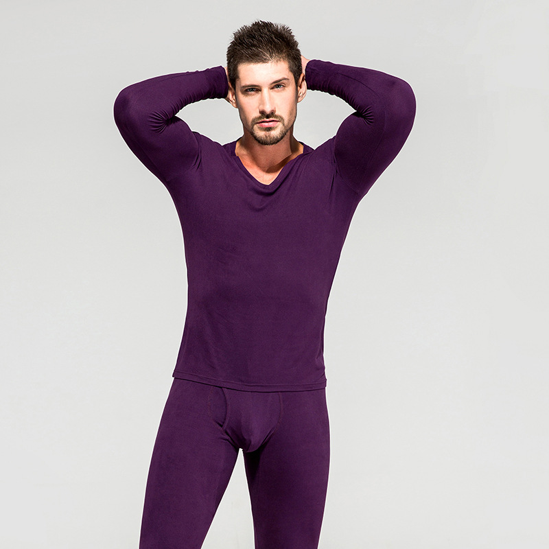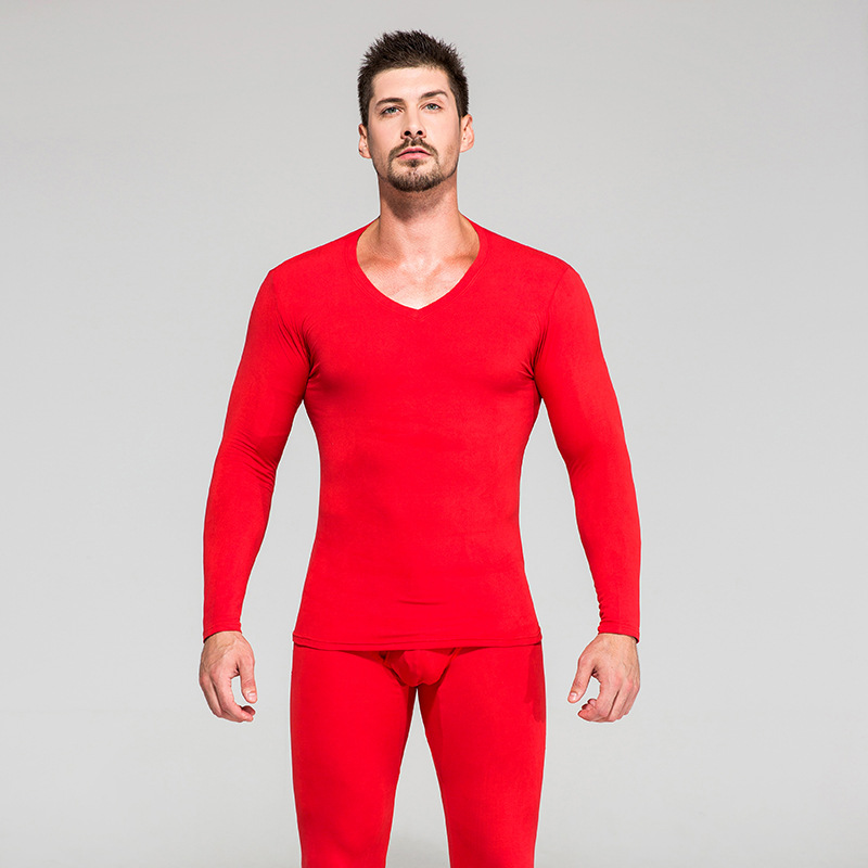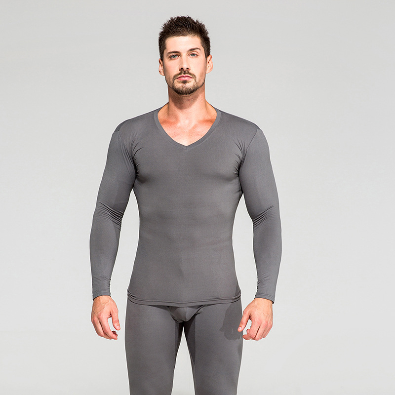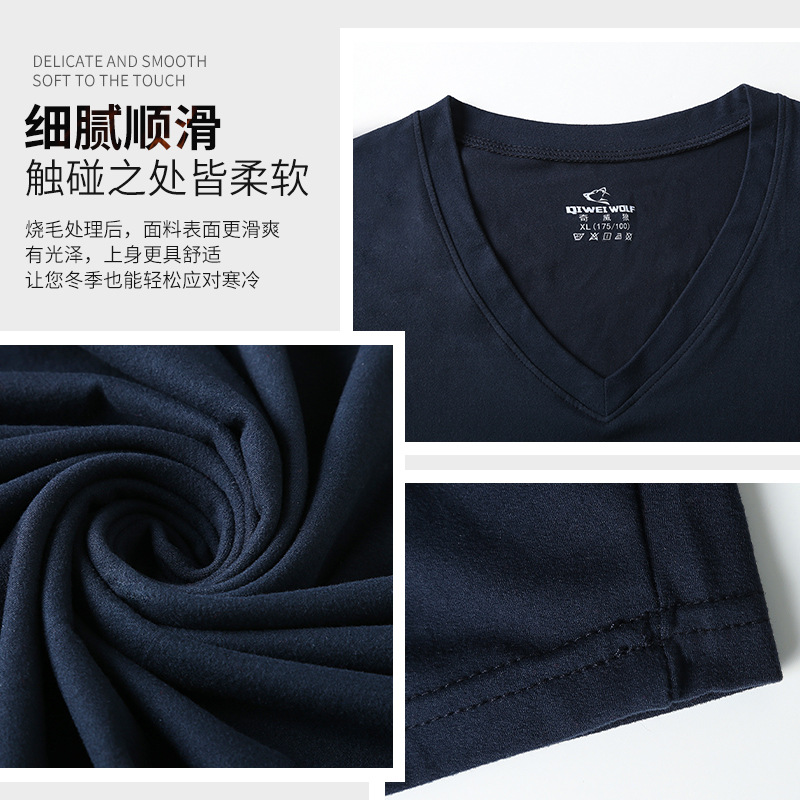 2022新款男士薄款秋衣秋裤套装 修身V领长袖长裤保暖内衣套装批发