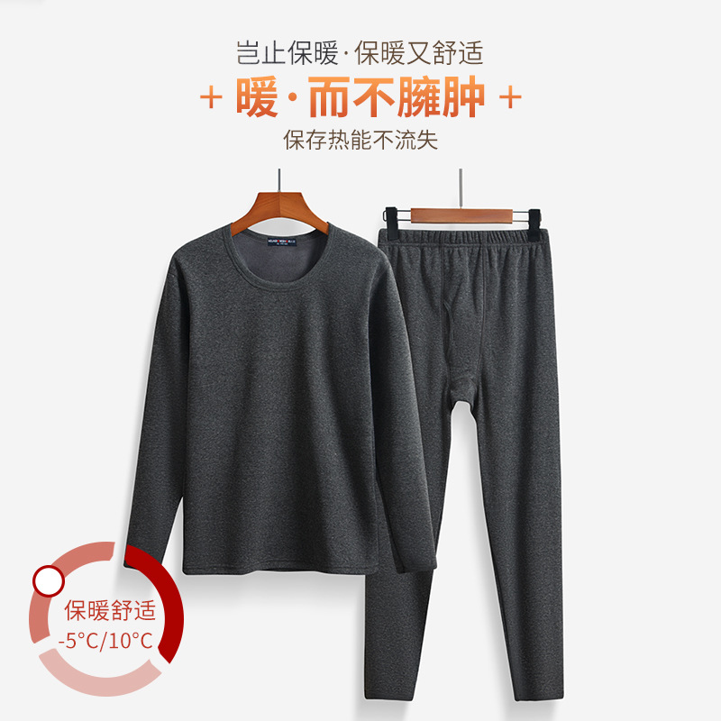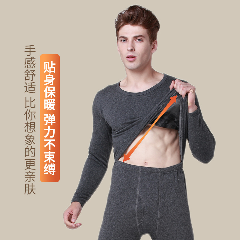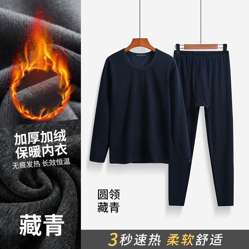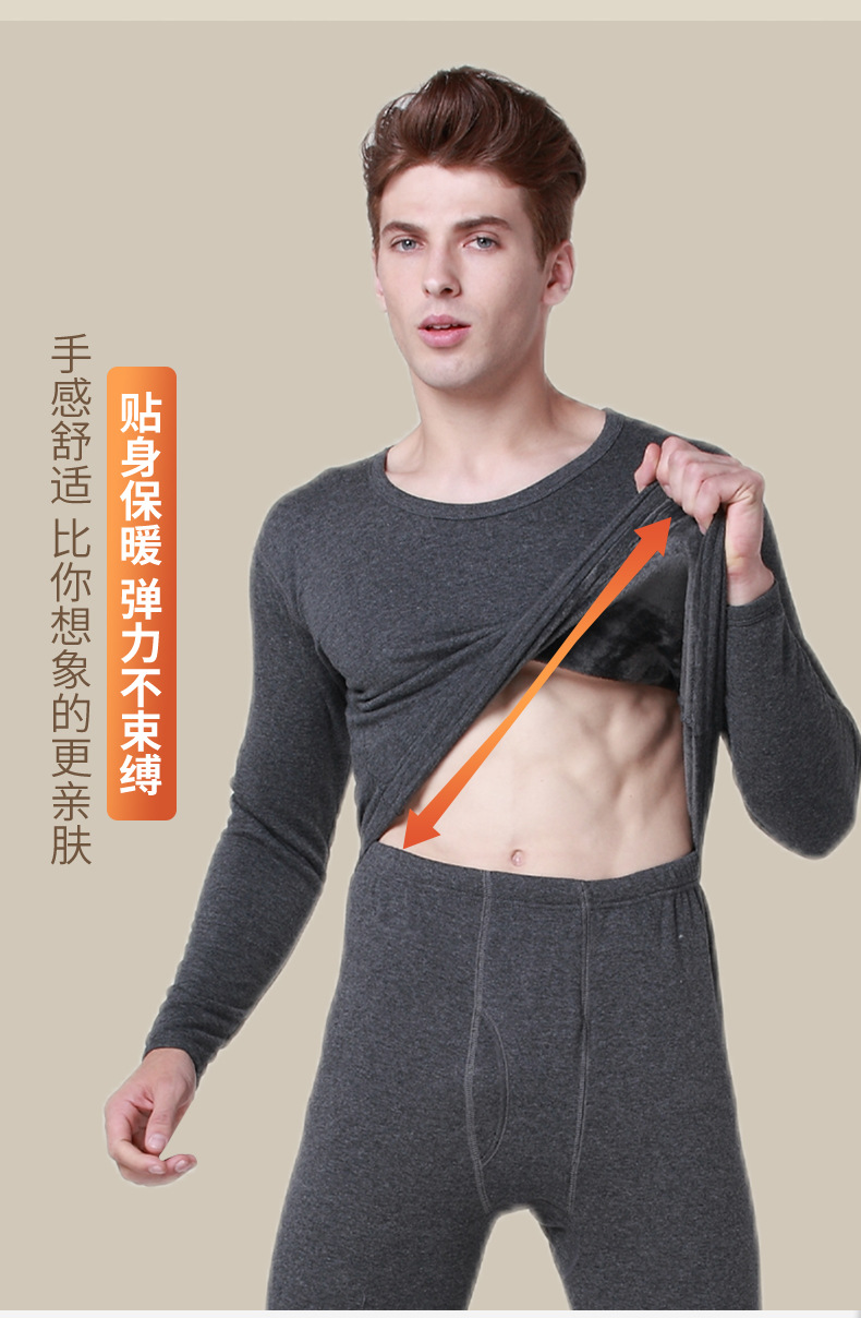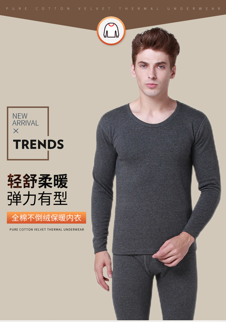 秋冬男士全棉不倒绒保暖内衣套装批发圆领加厚加绒保暖内衣套装男