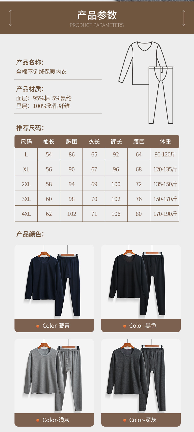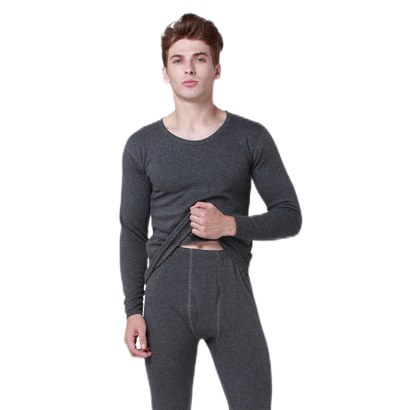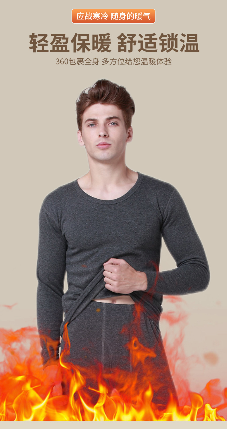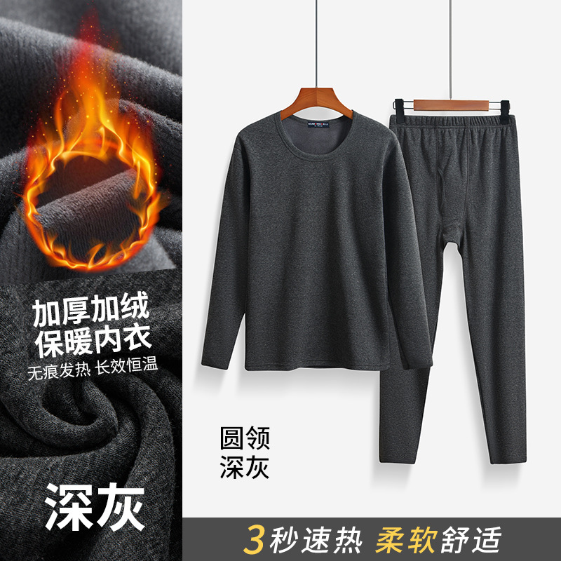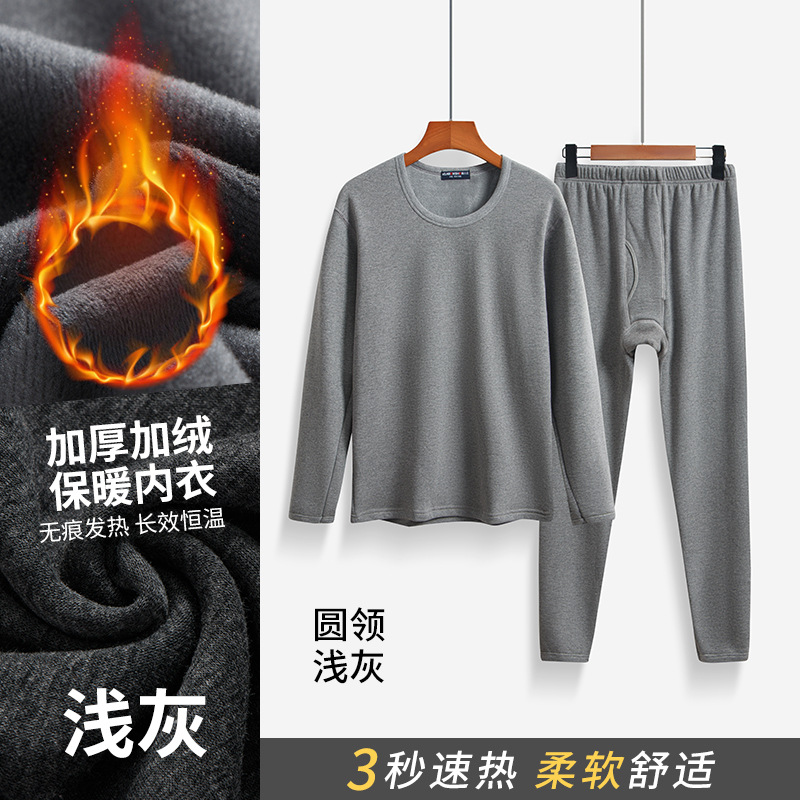 秋冬男士全棉不倒绒保暖内衣套装批发圆领加厚加绒保暖内衣套装男