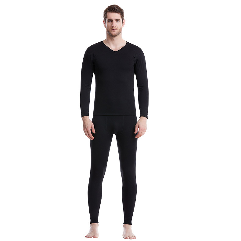 男士阳离子V领保暖内衣套装透气弹力秋衣秋裤男轻盈修身磨毛内衣