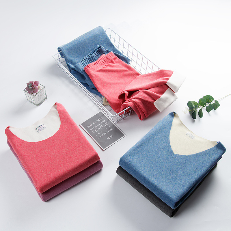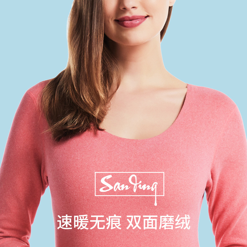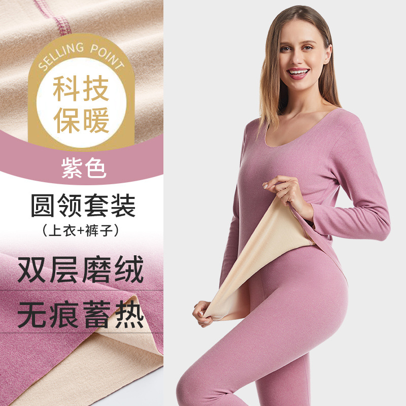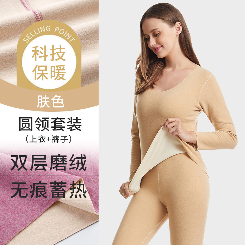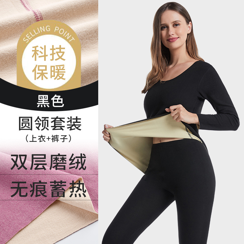 女士AB面无痕保暖内衣套装双面磨绒高弹力绒德内衣秋冬