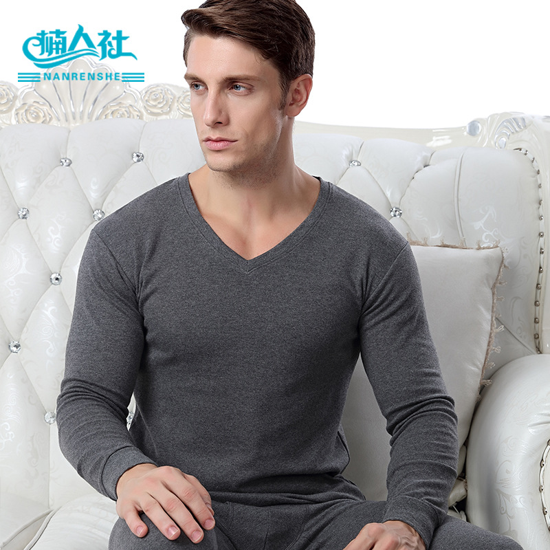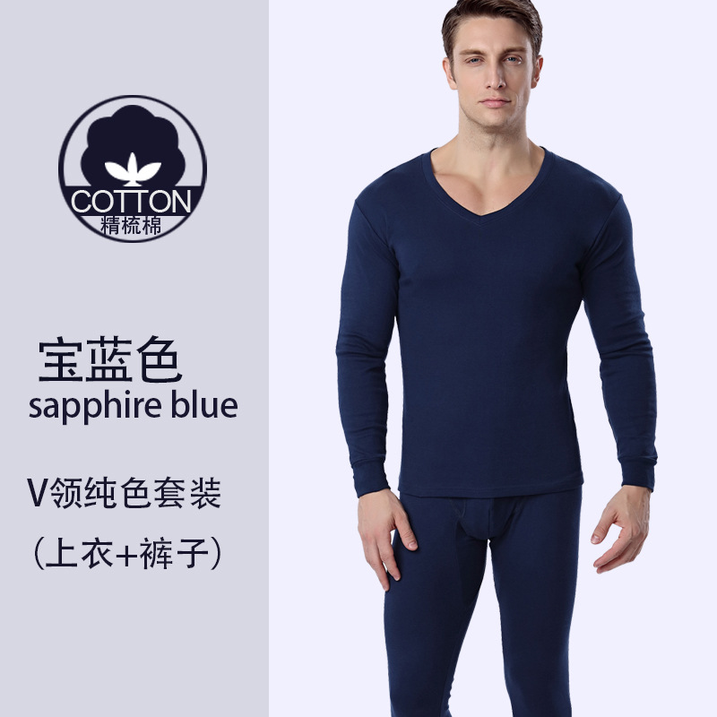 精梳棉男士保暖内衣套装 弹力透气V领秋衣秋裤 抗寒时尚保暖内衣