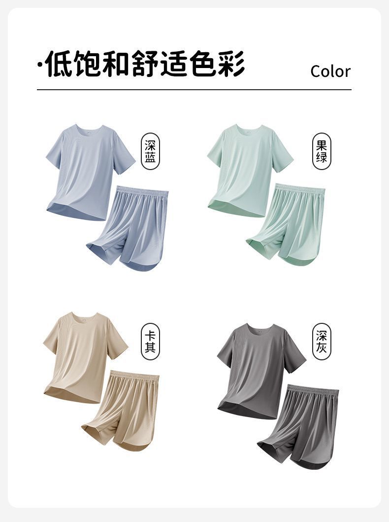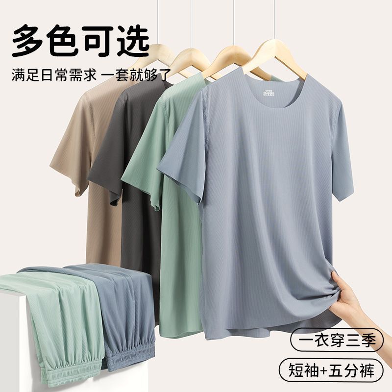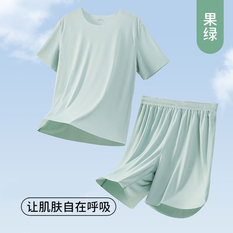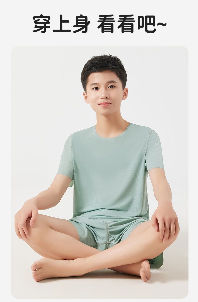 男士睡衣冰丝夏季天短袖短裤2024新款学生青少年家居服套装薄款