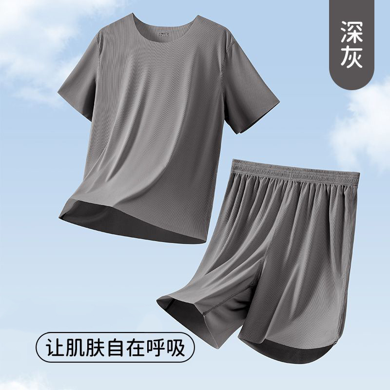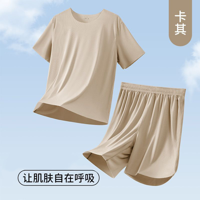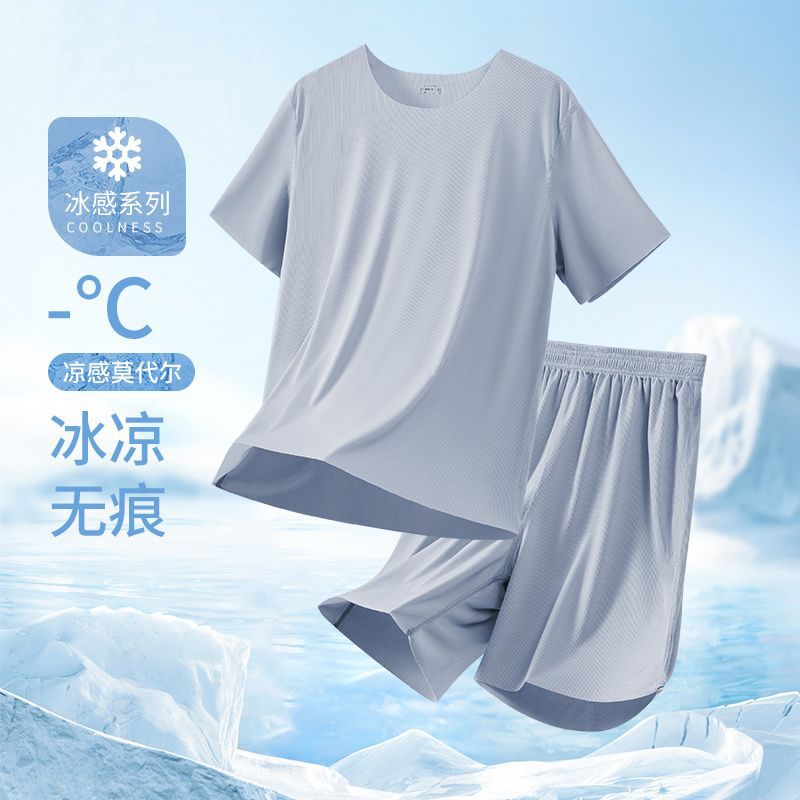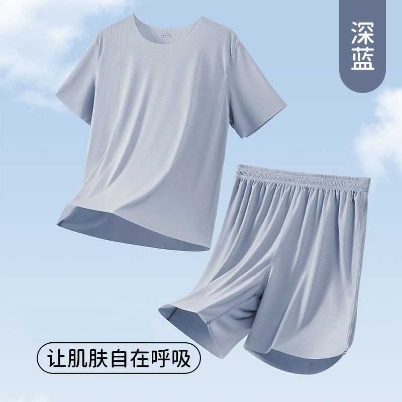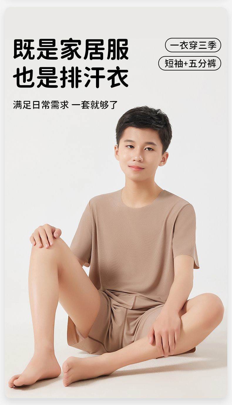 男士睡衣冰丝夏季天短袖短裤2024新款学生青少年家居服套装薄款