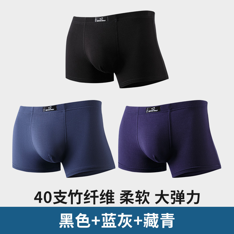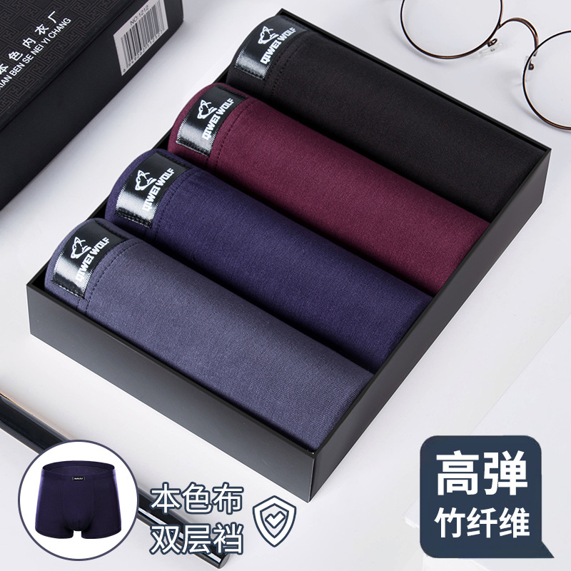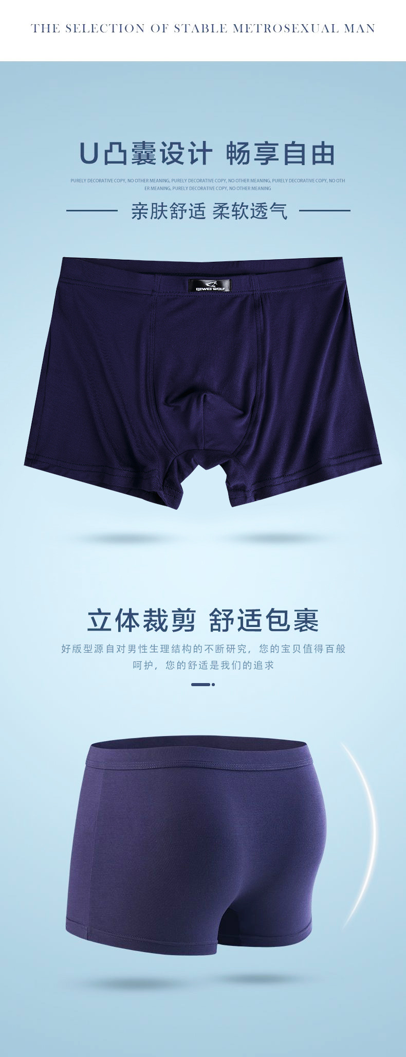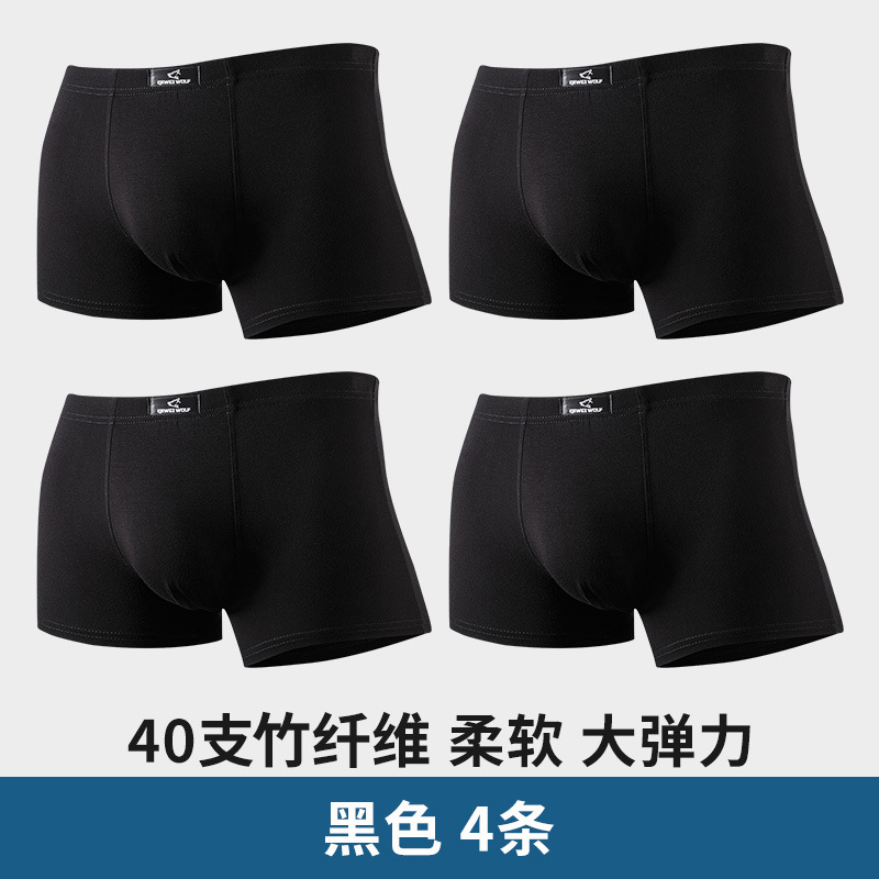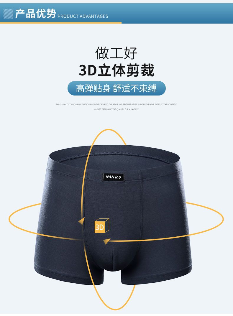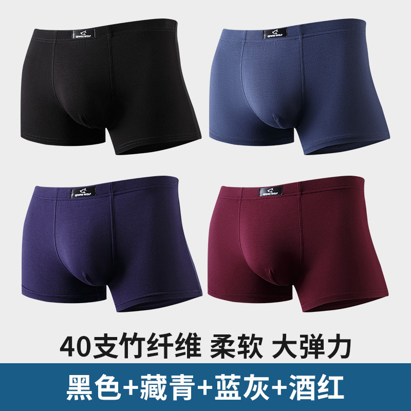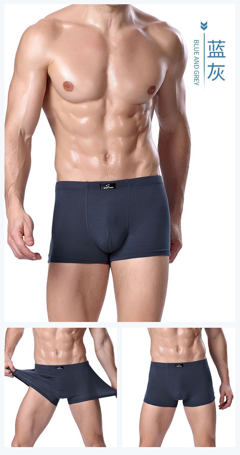男士内裤男平角内裤纯色柔软透气竹纤维宽松轻薄四角高弹中腰内裤