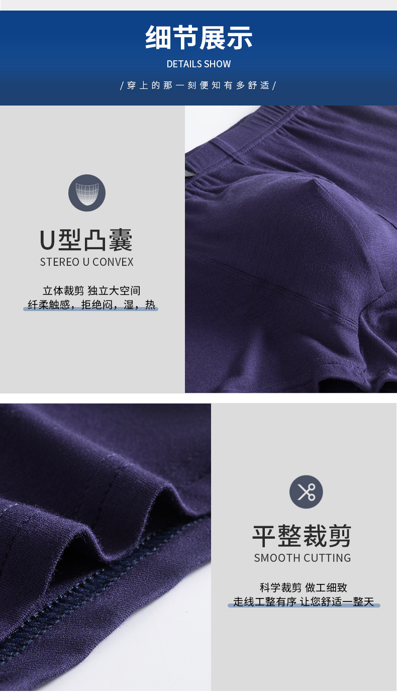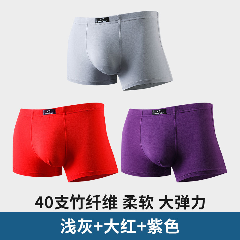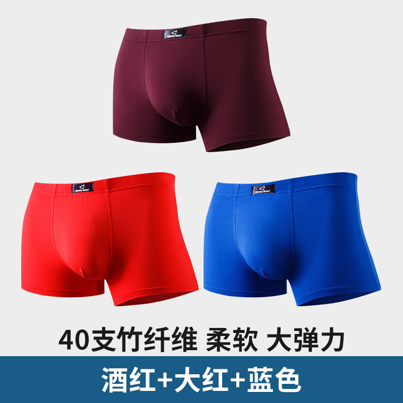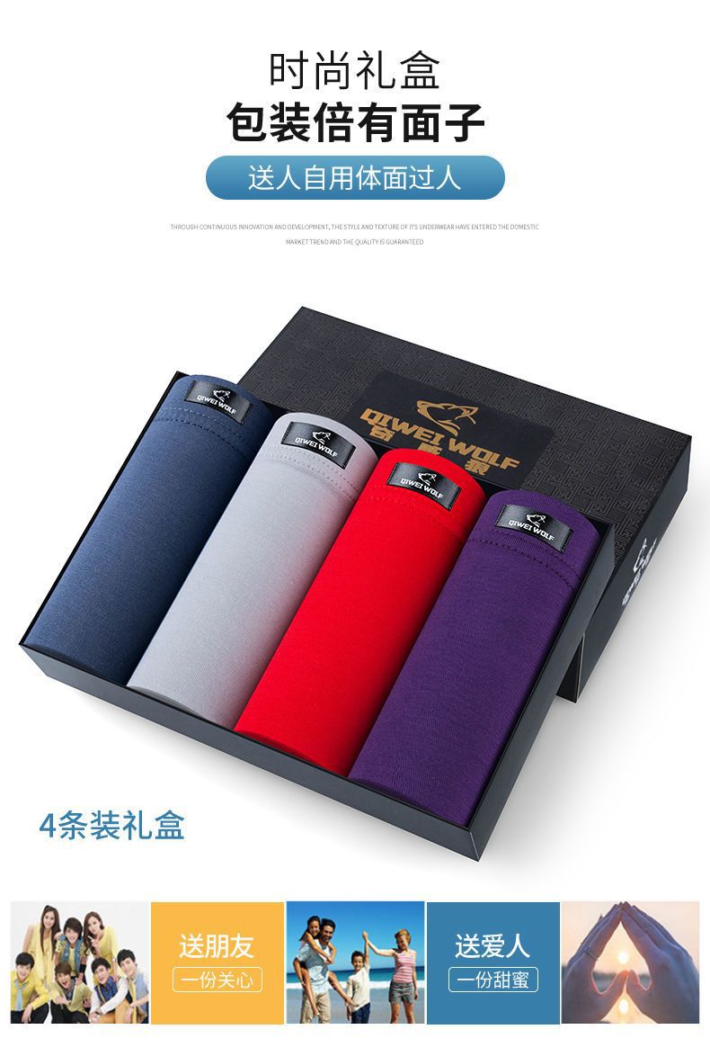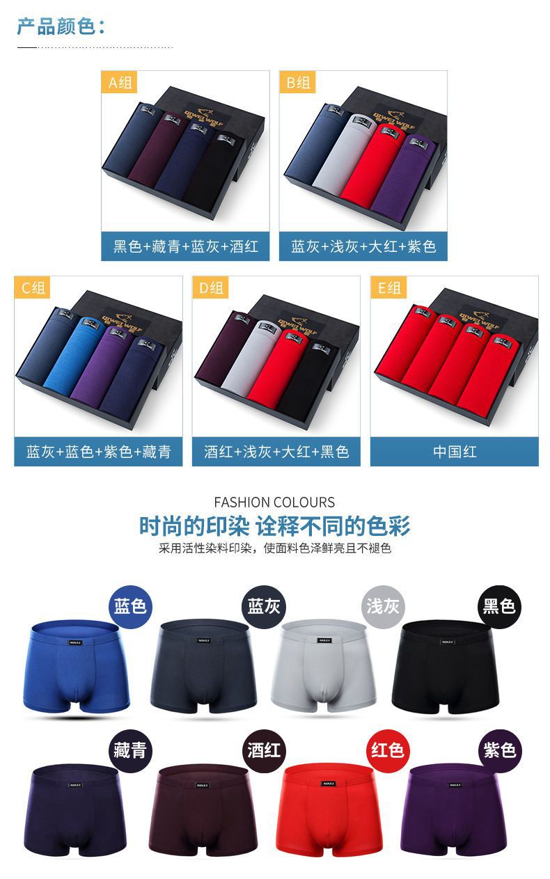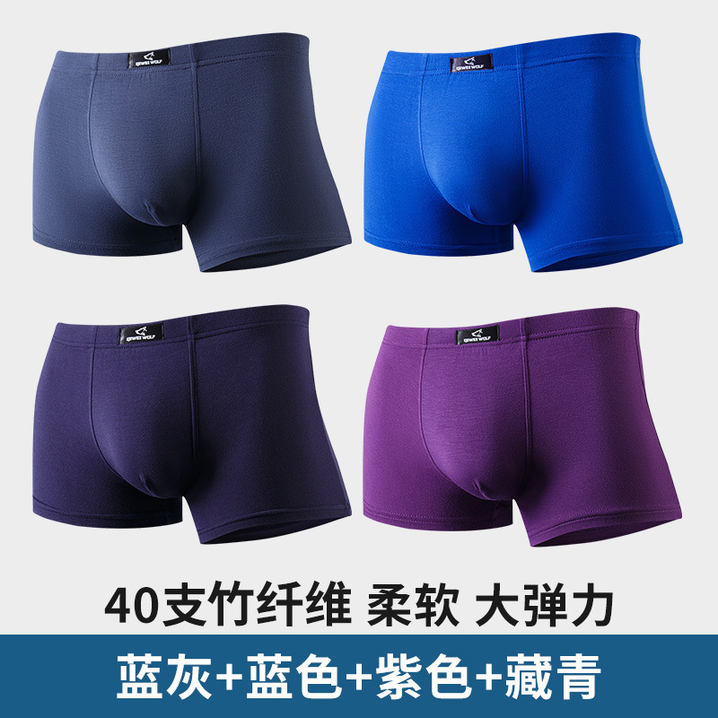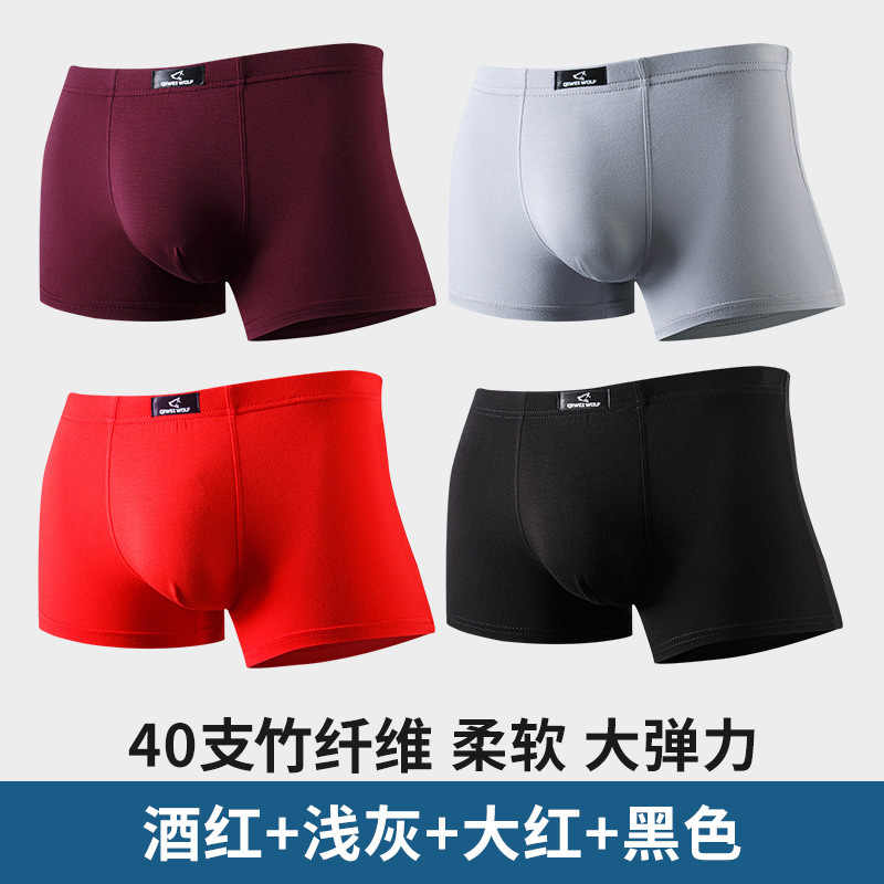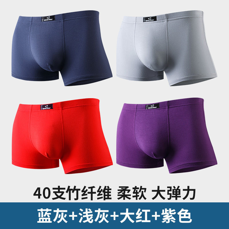 男士内裤男平角内裤纯色柔软透气竹纤维宽松轻薄四角高弹中腰内裤