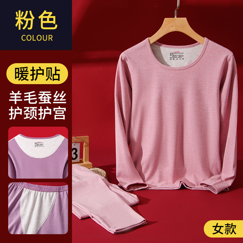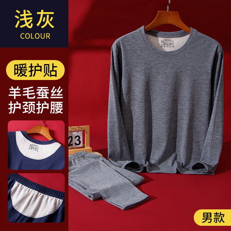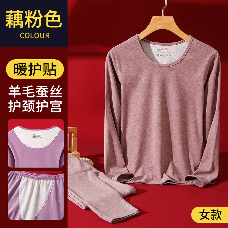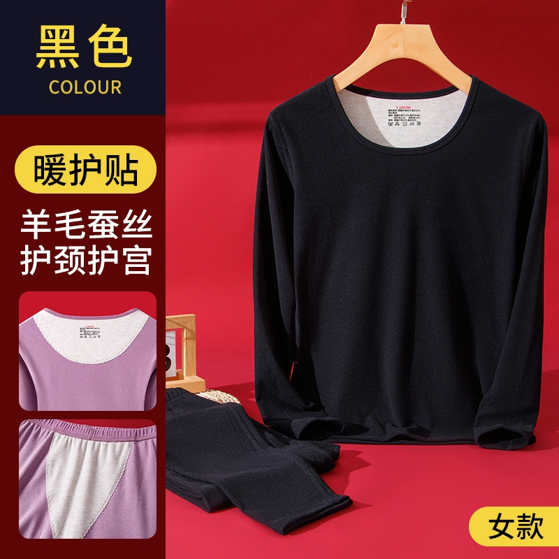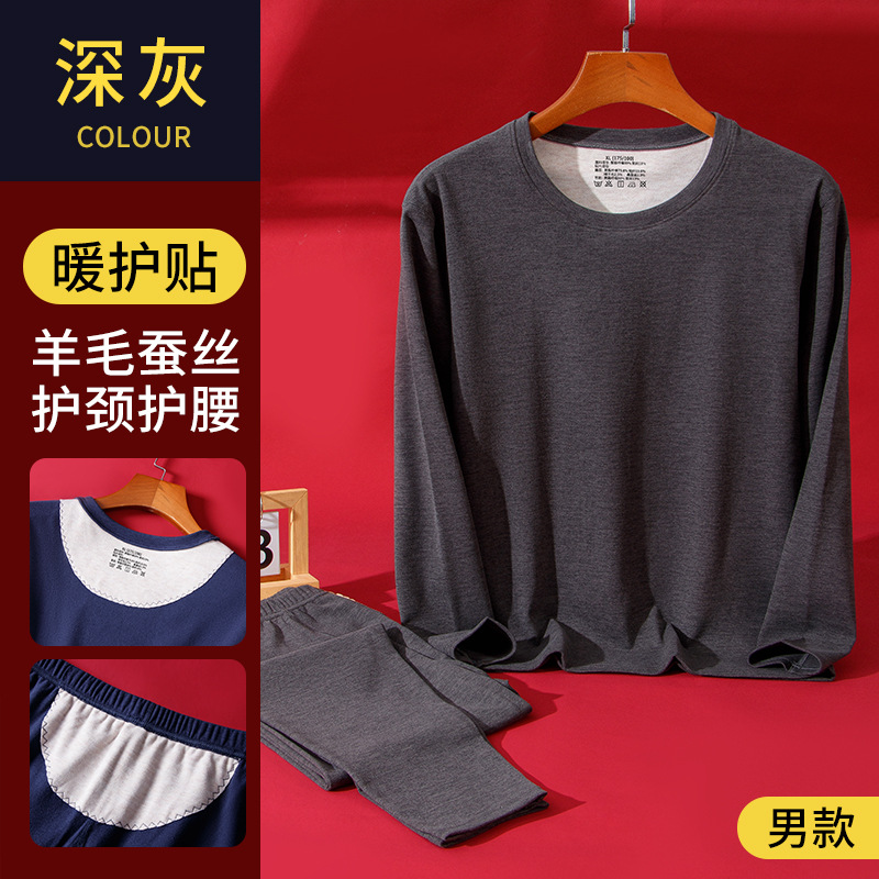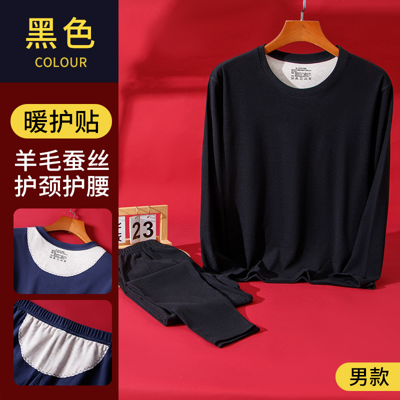 秋冬双面绒男女士保暖内衣套装情侣秋衣秋裤羊毛蚕丝贴片保暖内衣