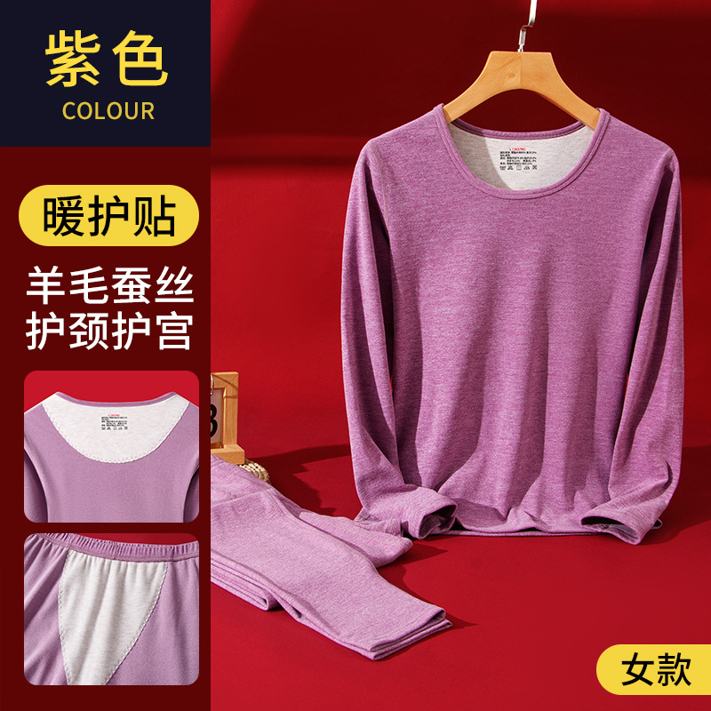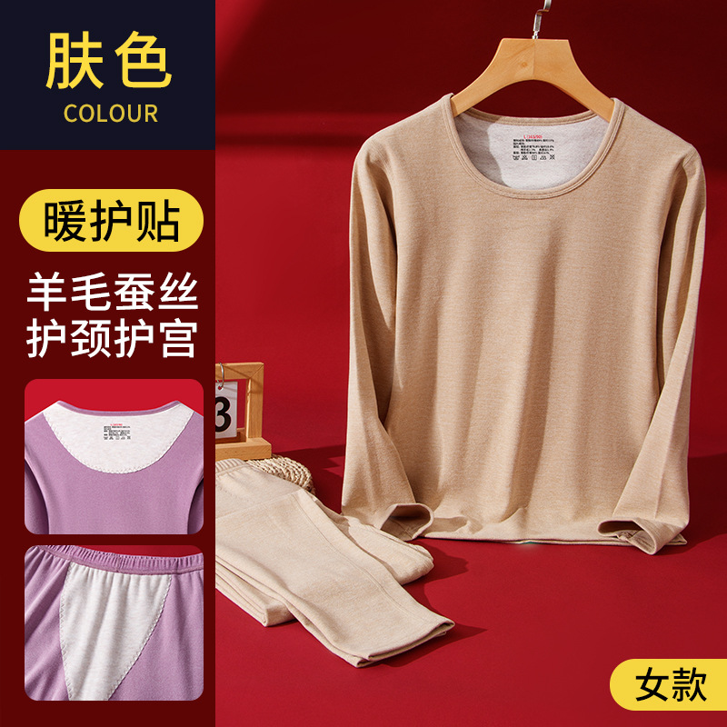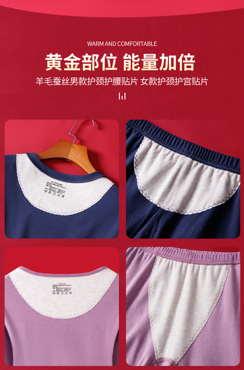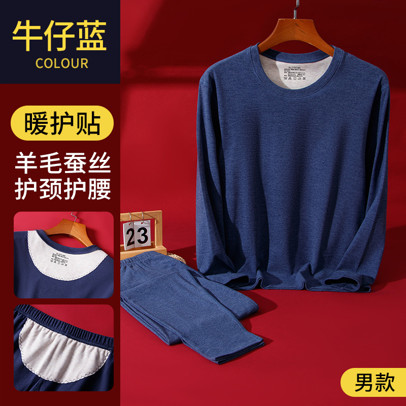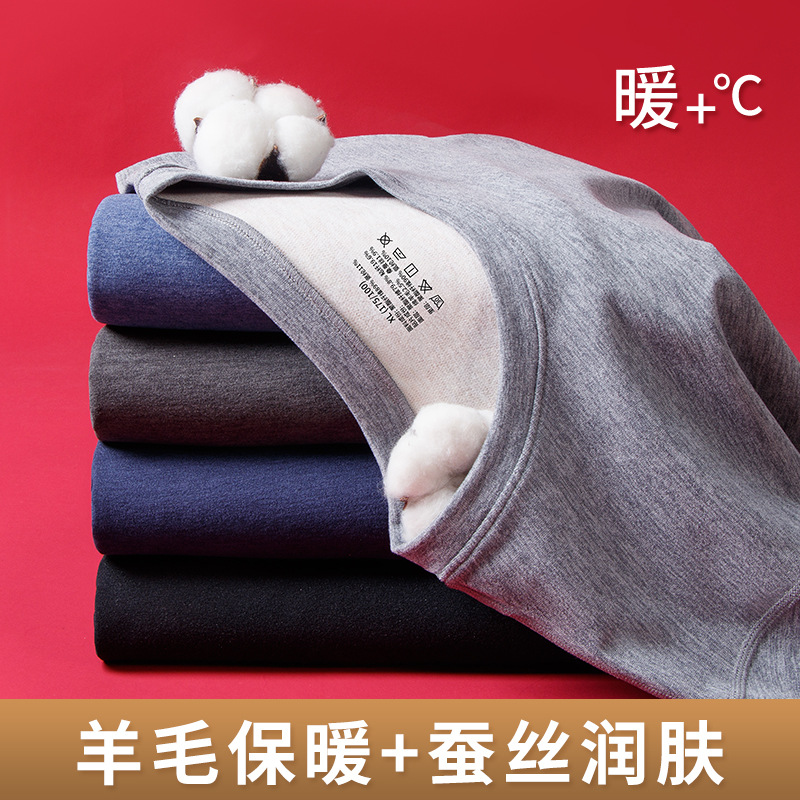 秋冬双面绒男女士保暖内衣套装情侣秋衣秋裤羊毛蚕丝贴片保暖内衣
