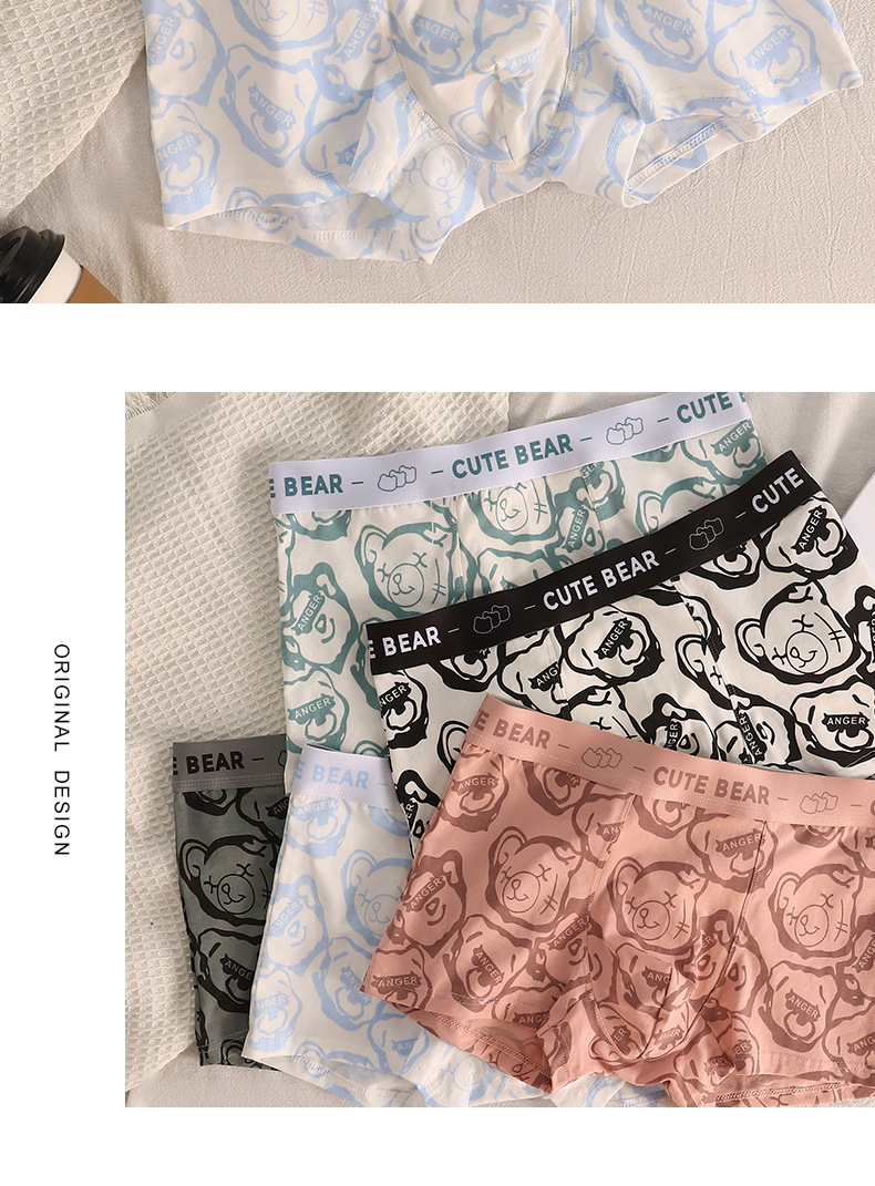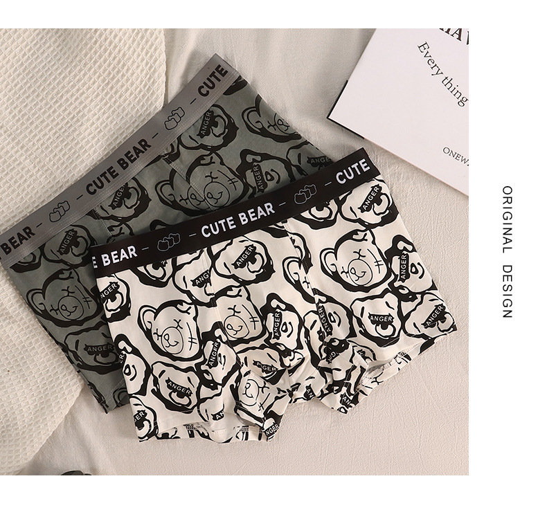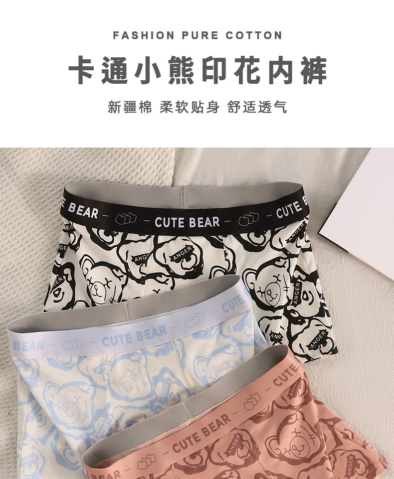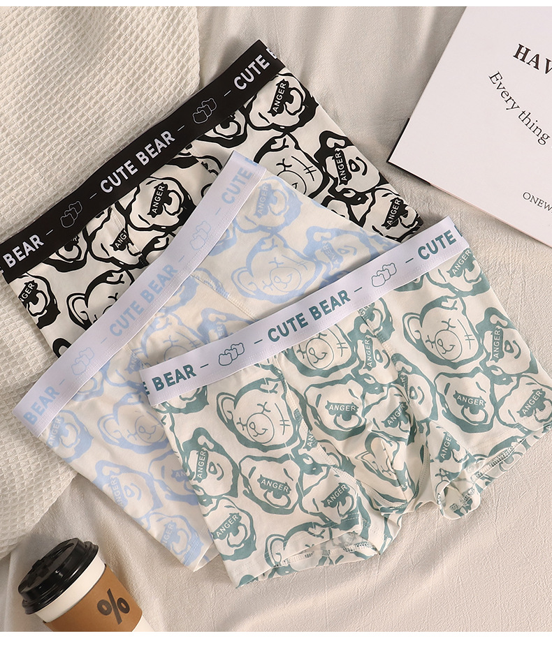 纯棉男士内裤男透气亲肤男生平角裤潮流可爱卡通青少年四角短裤头