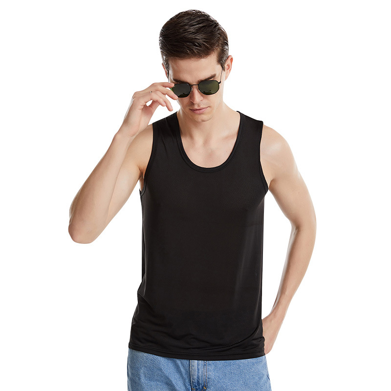 弹力舒适透气男士背心 网眼无袖宽肩T恤 柔软不紧绷U型男士背心
