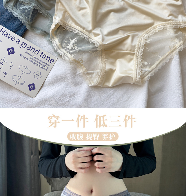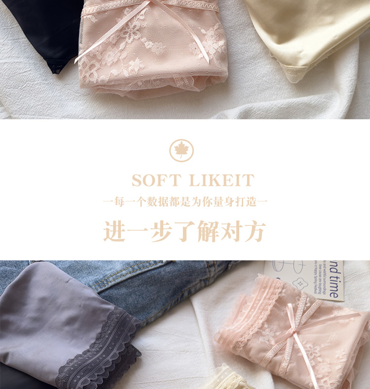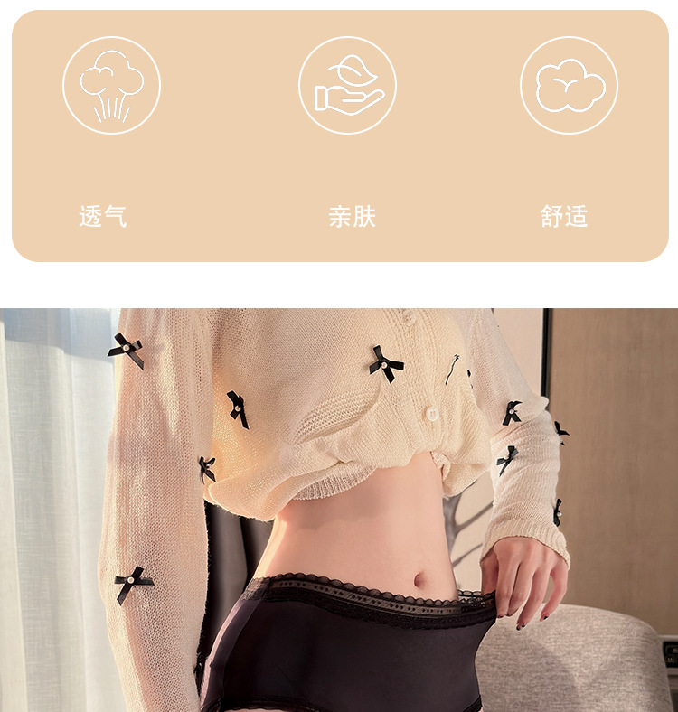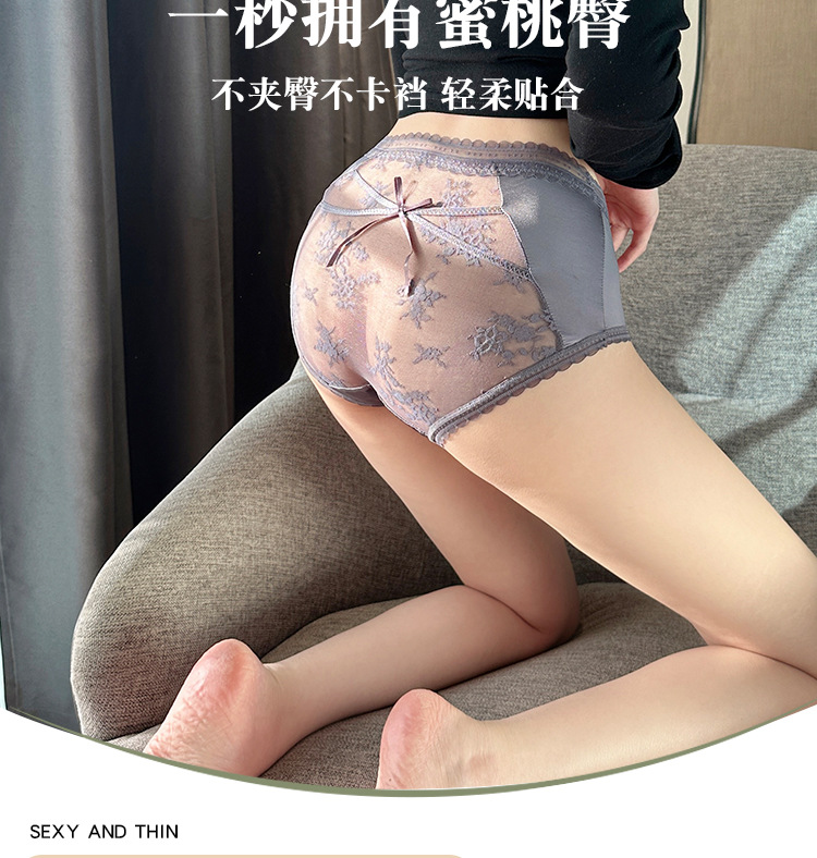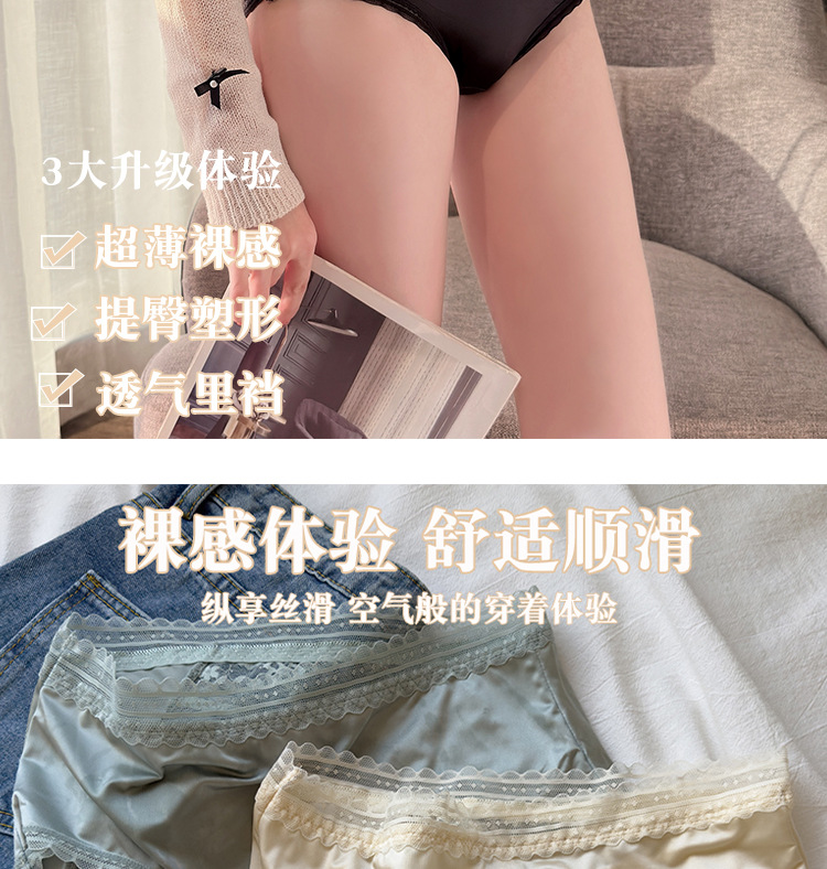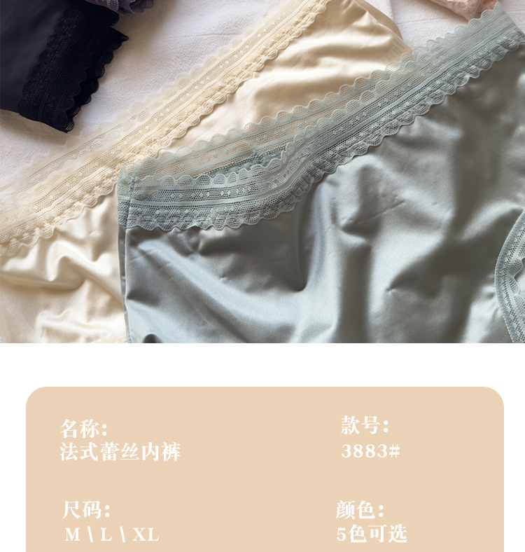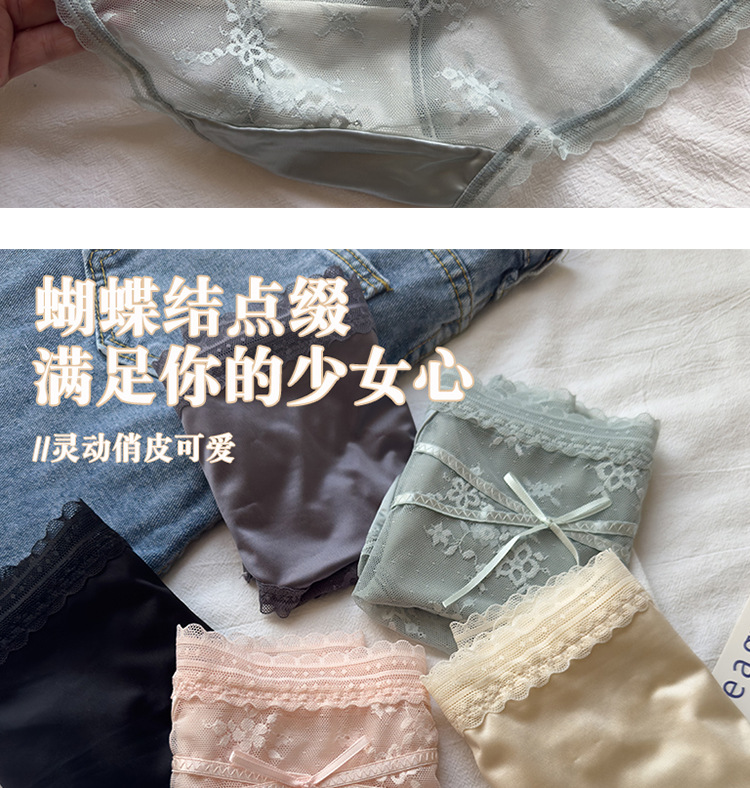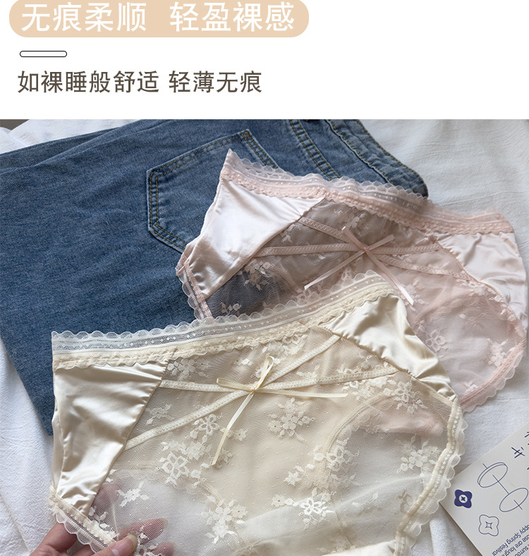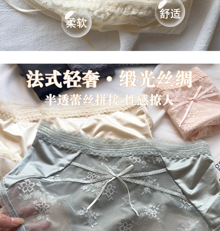 法式绸缎质感后蕾丝性感女士内裤包臀蝴蝶结高级感轻奢半透三角裤