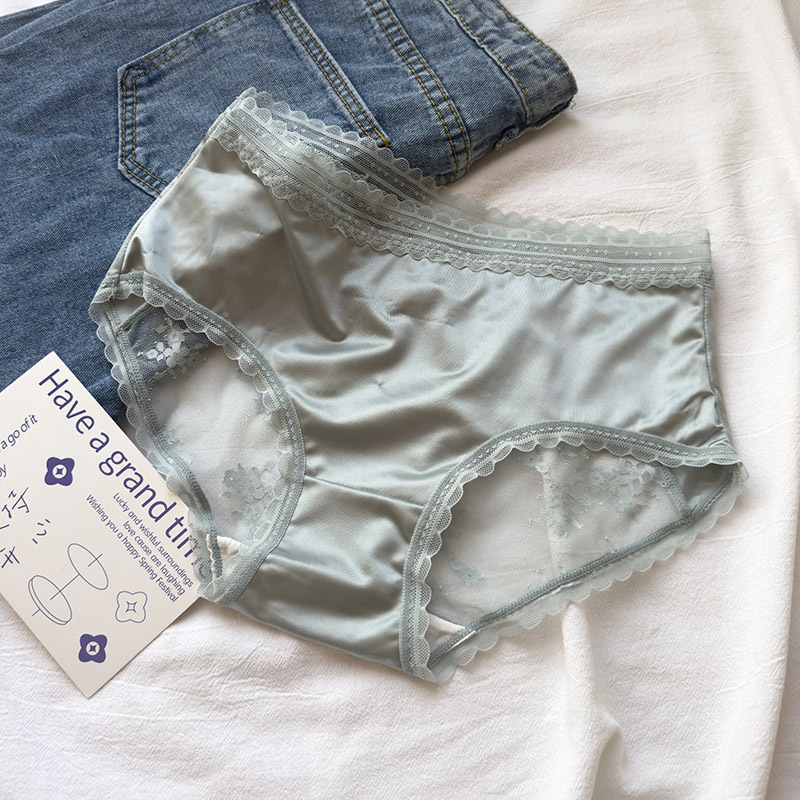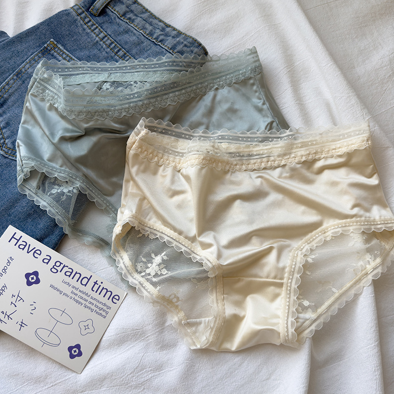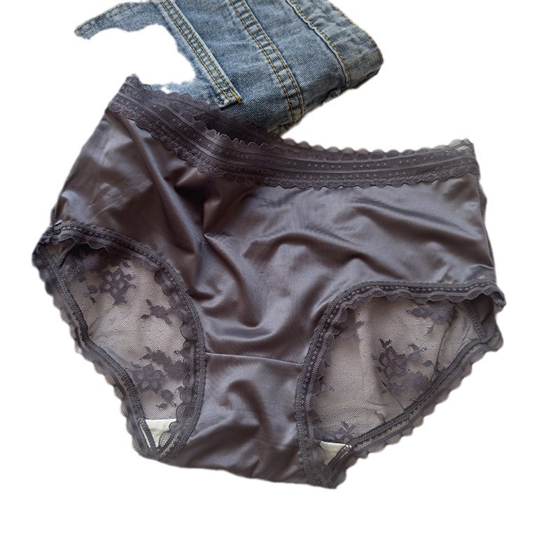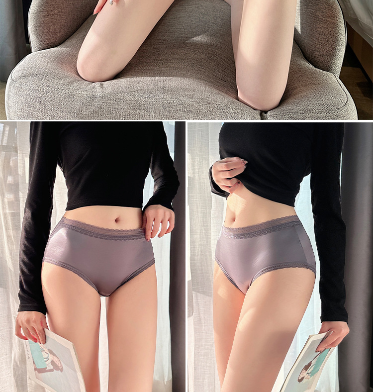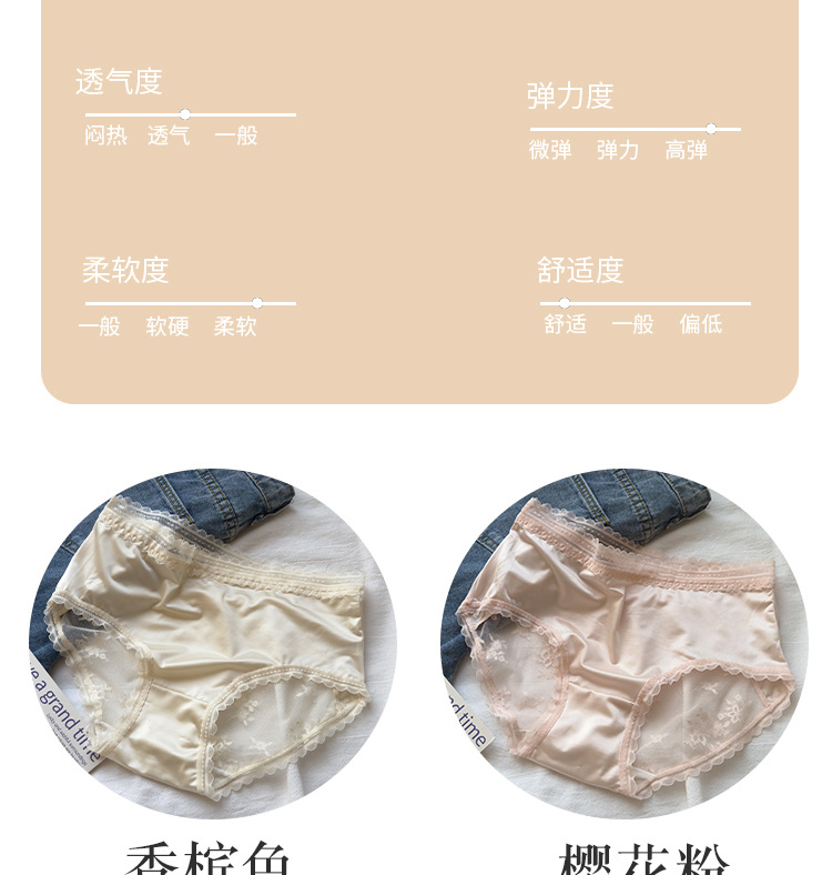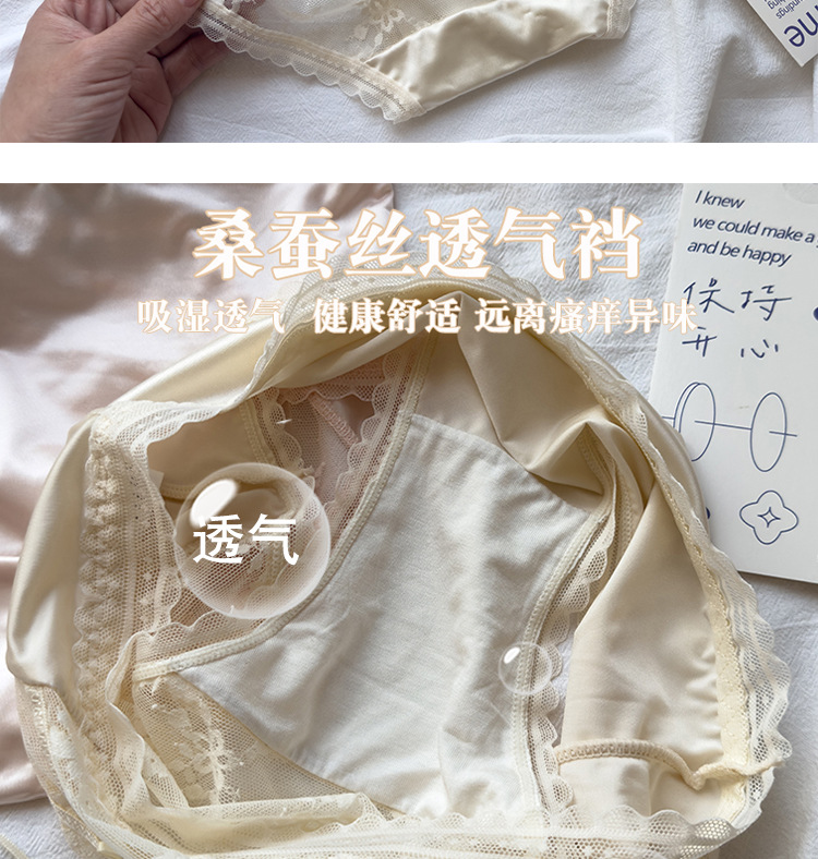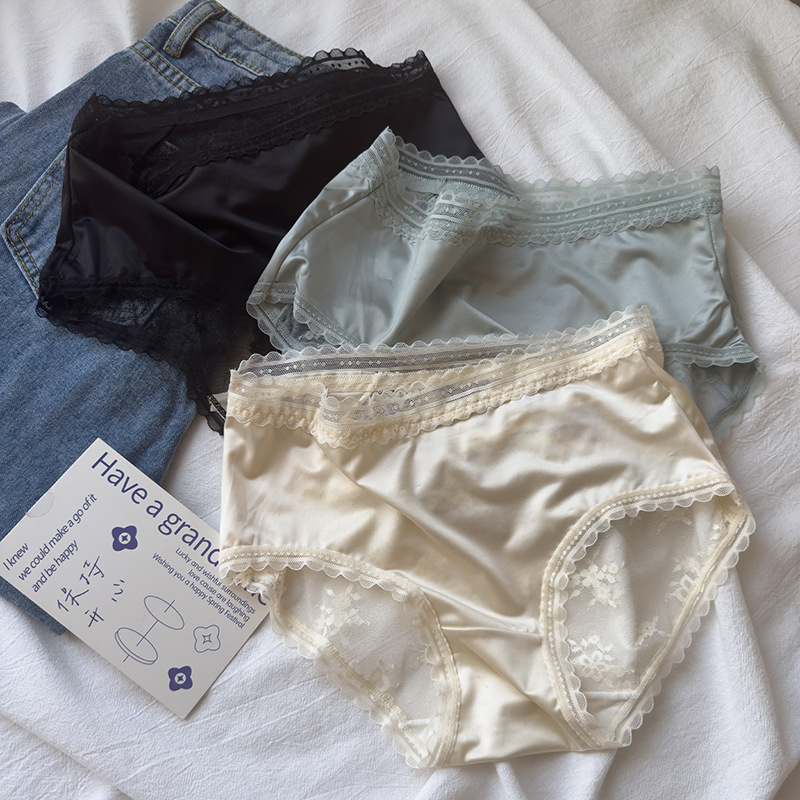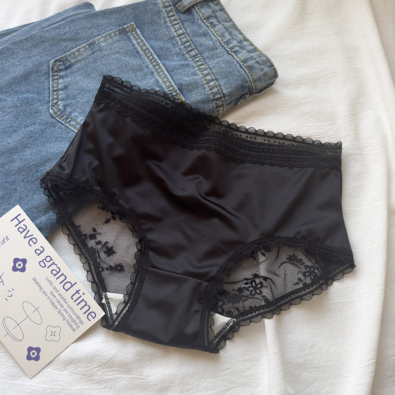 法式绸缎质感后蕾丝性感女士内裤包臀蝴蝶结高级感轻奢半透三角裤