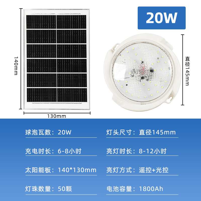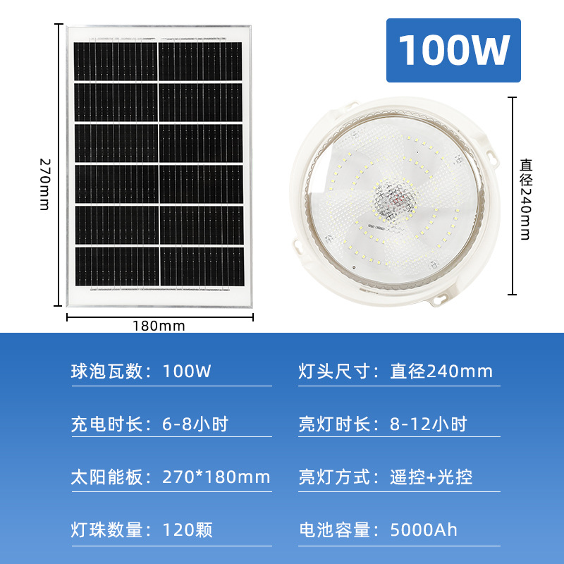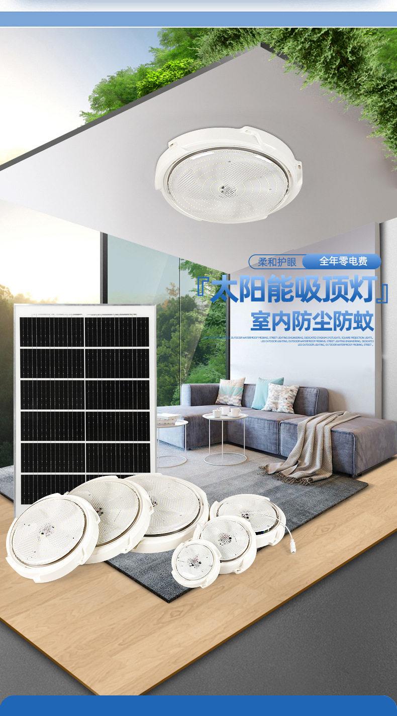 太阳能吸顶灯LED家用室内卧室外照明灯大功率庭院太阳能灯