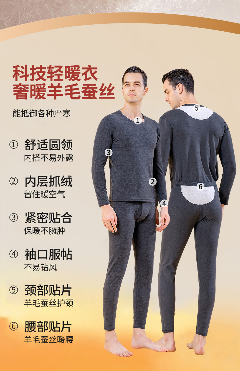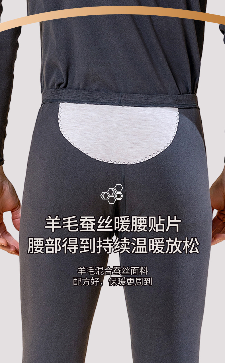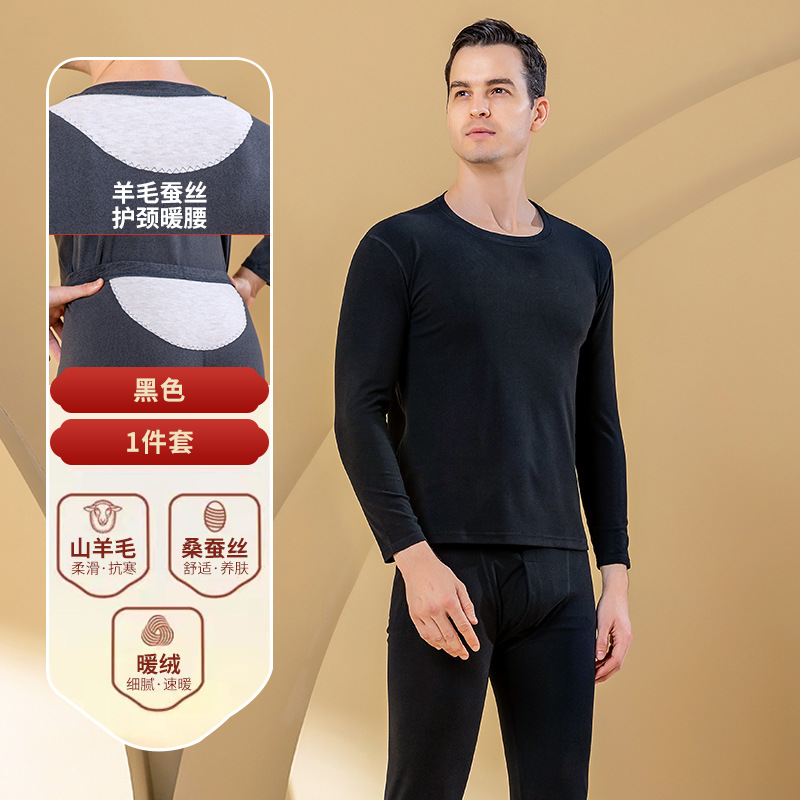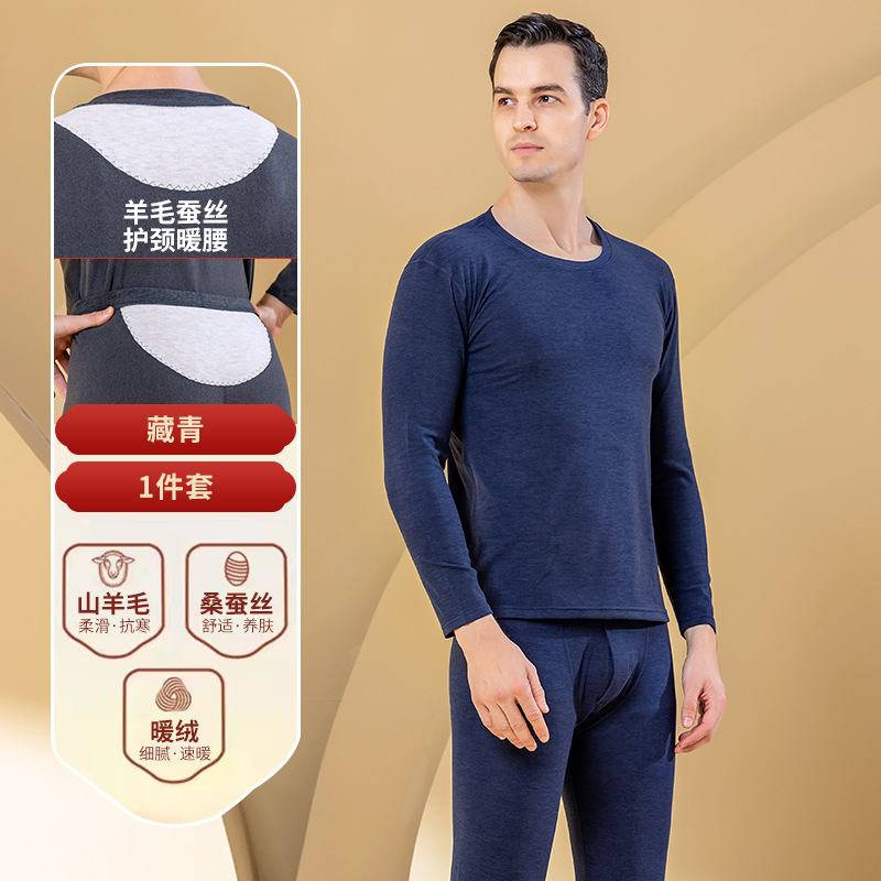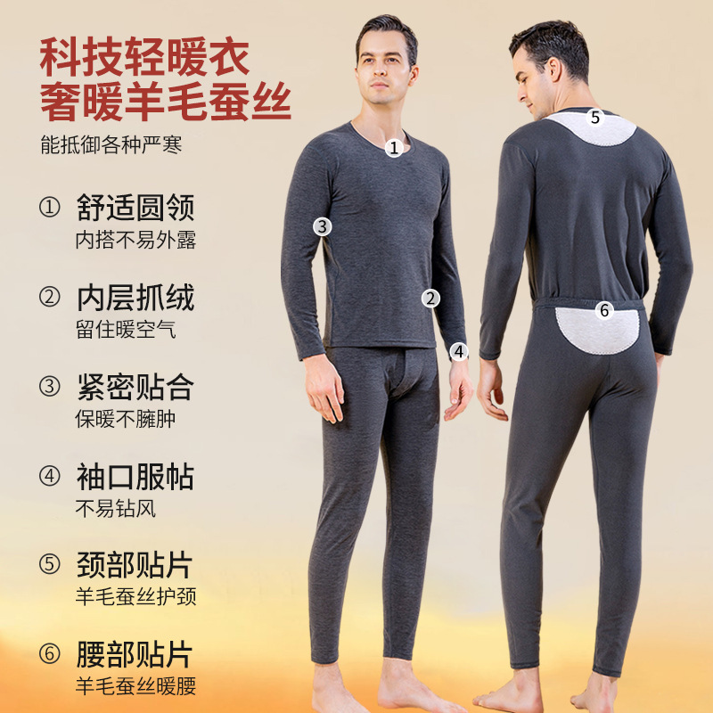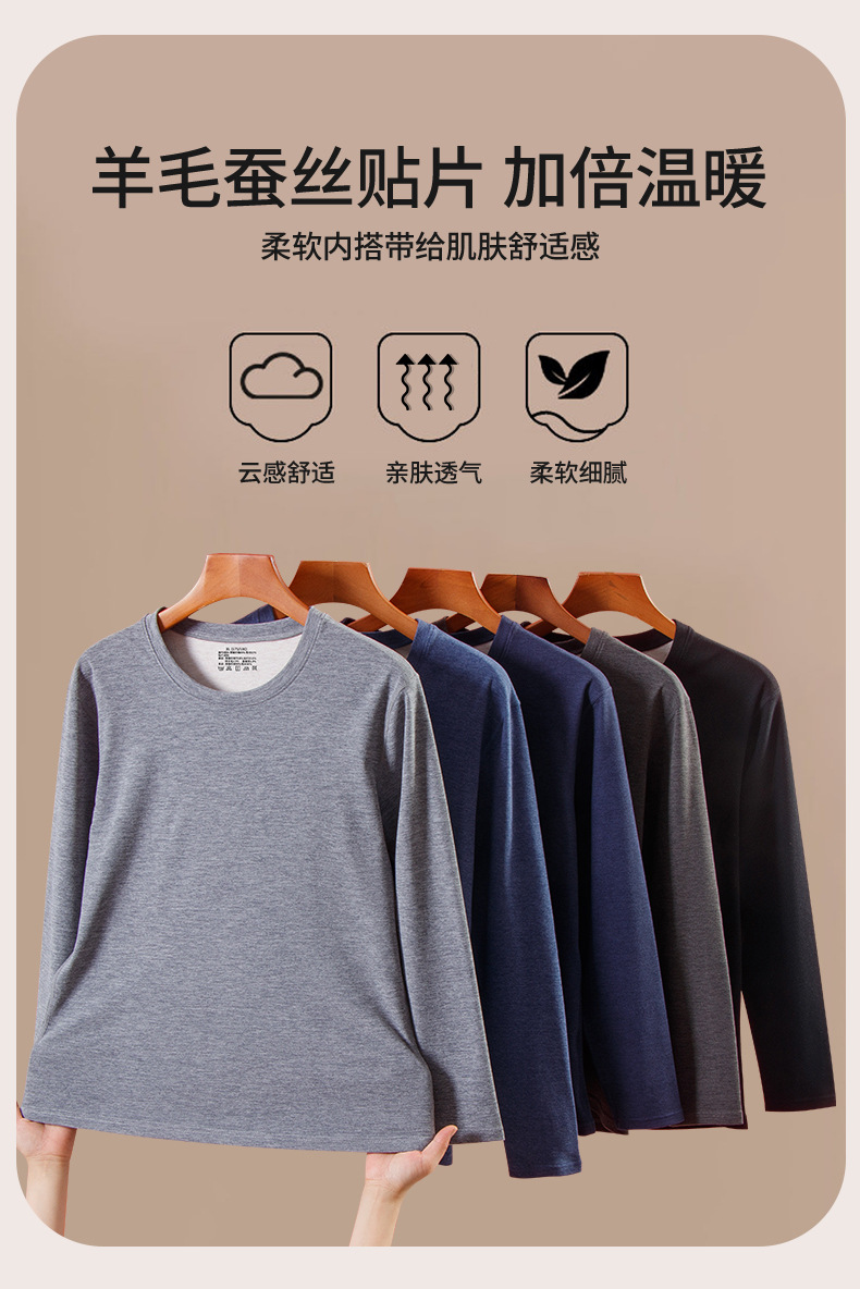 秋冬新款男士羊毛蚕丝贴片保暖内衣套装打底衫加厚中老年秋衣秋裤