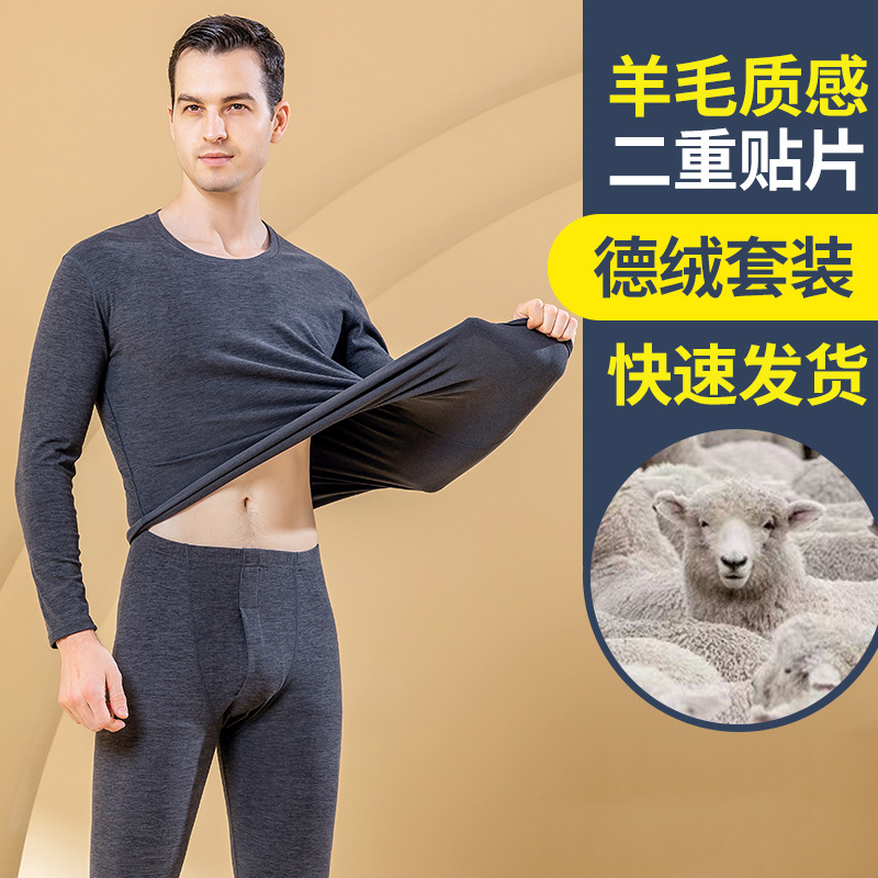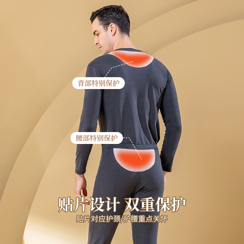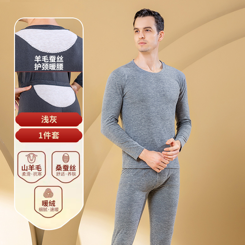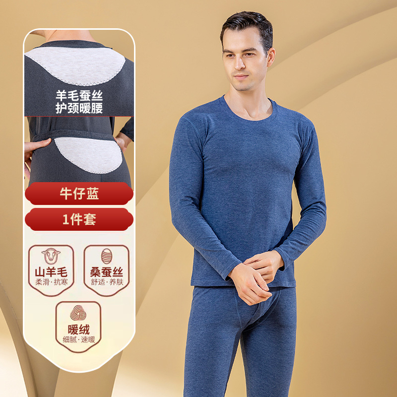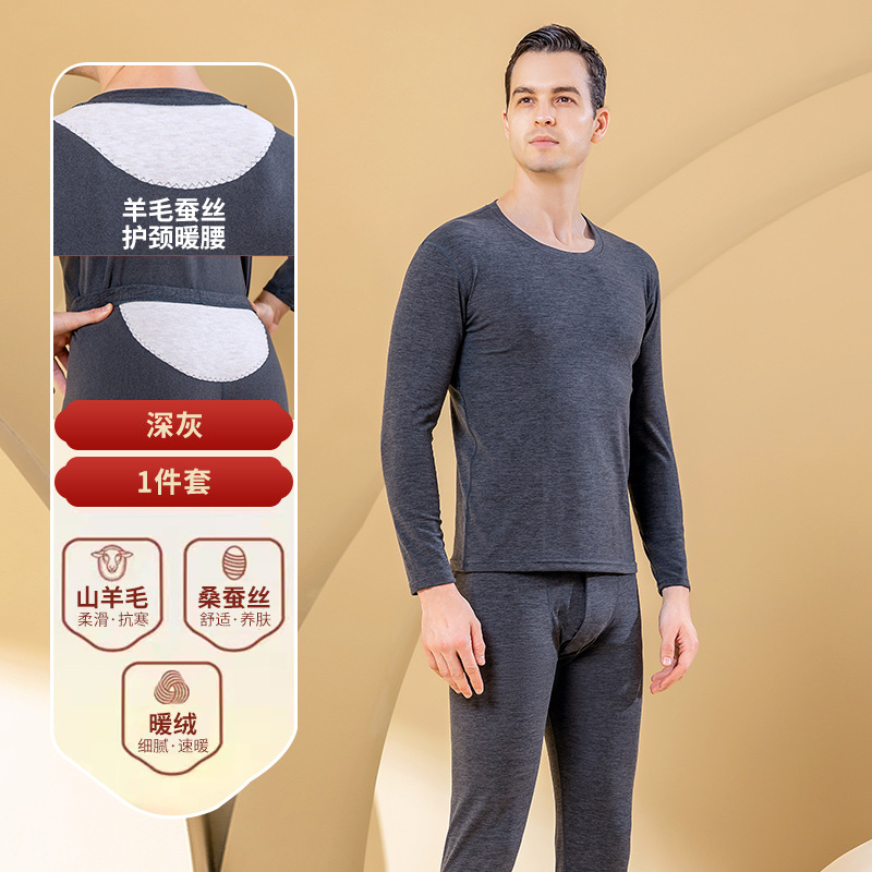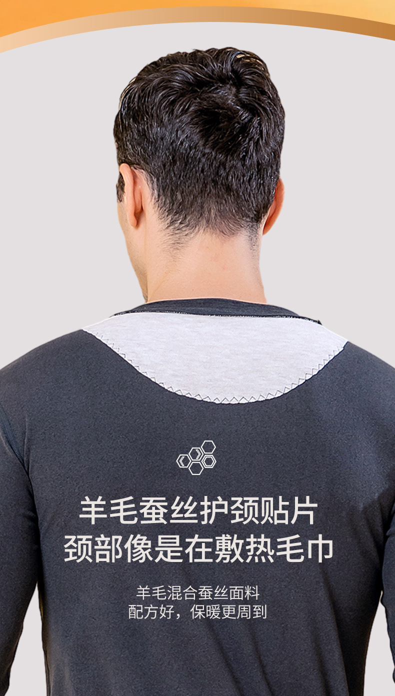 秋冬新款男士羊毛蚕丝贴片保暖内衣套装打底衫加厚中老年秋衣秋裤