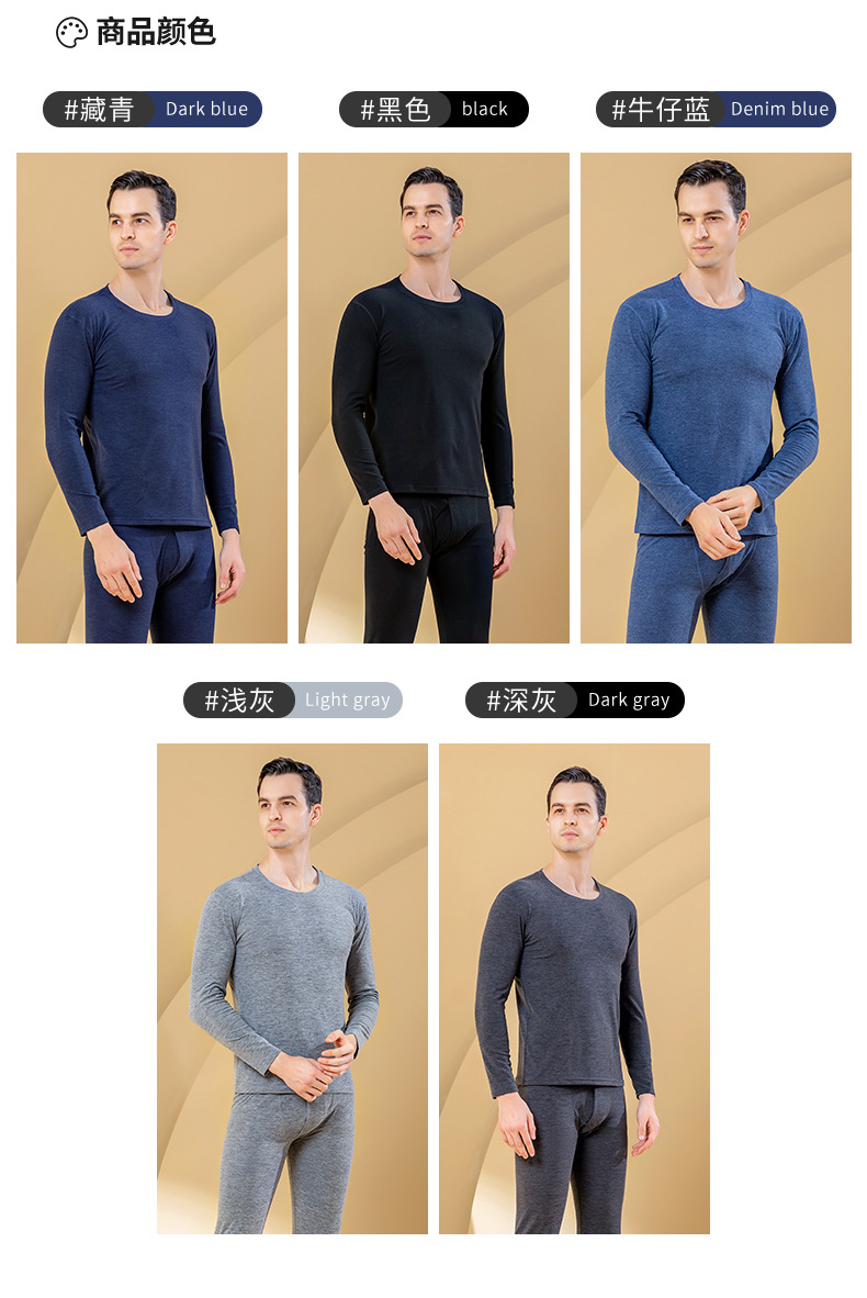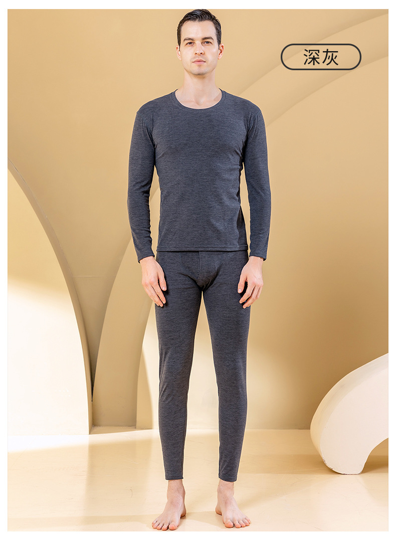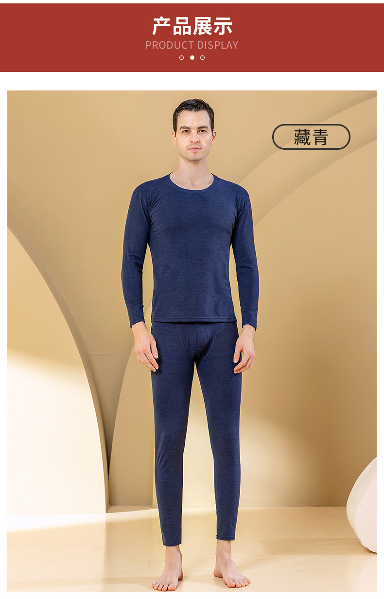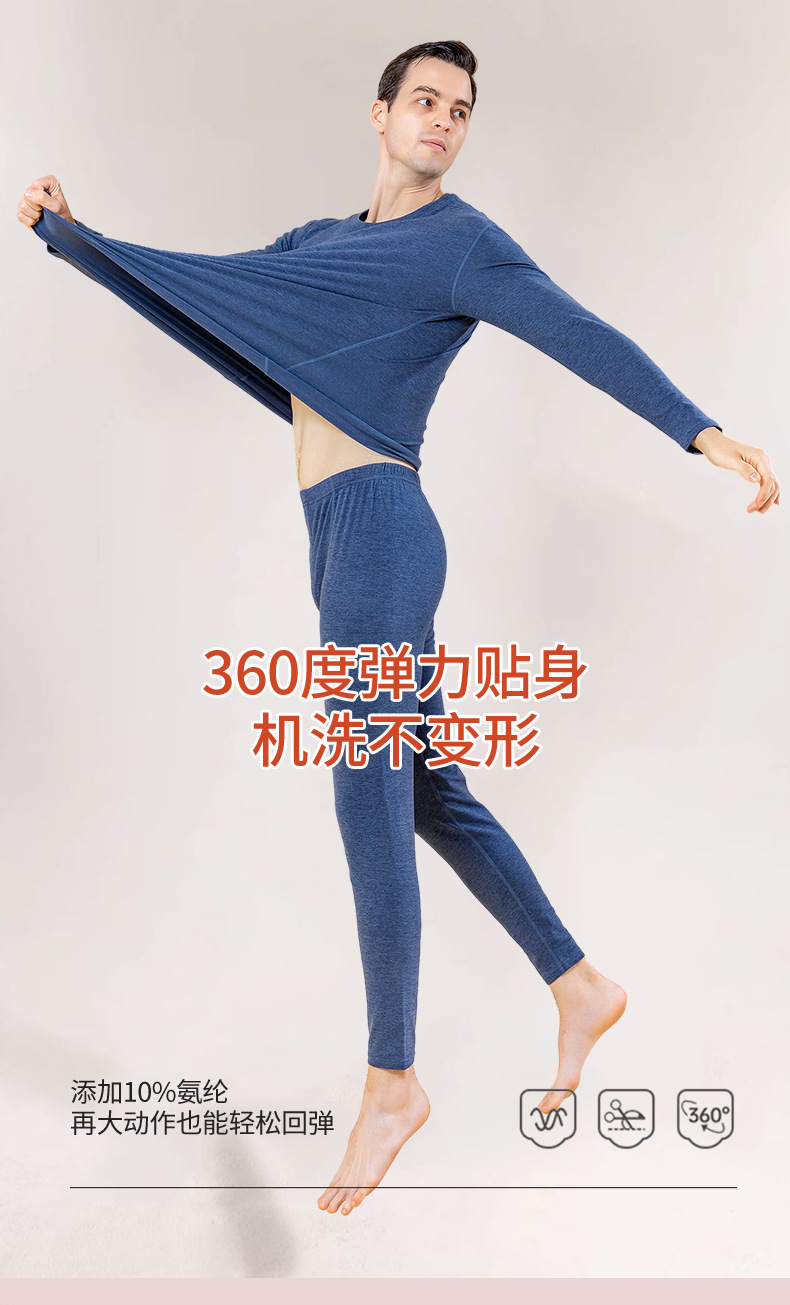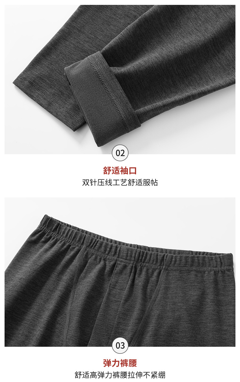 秋冬新款男士羊毛蚕丝贴片保暖内衣套装打底衫加厚中老年秋衣秋裤