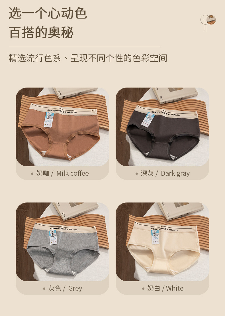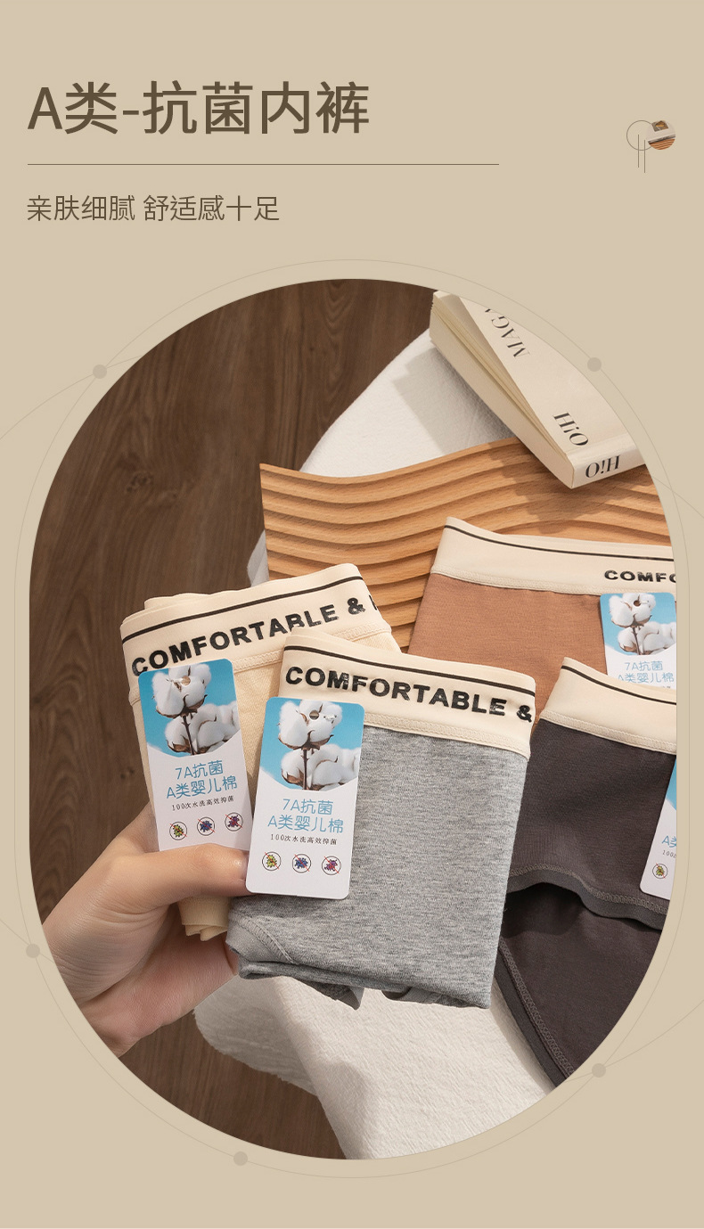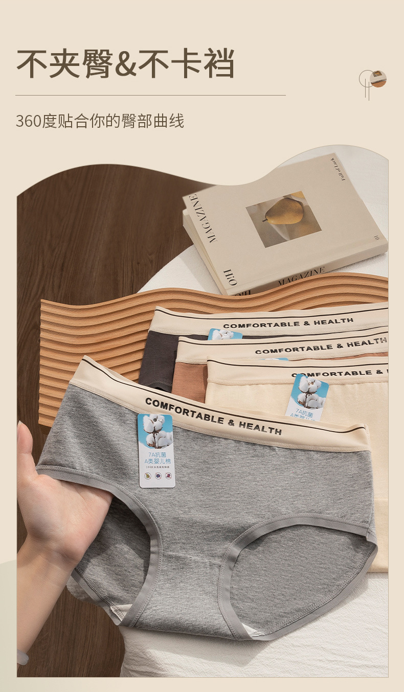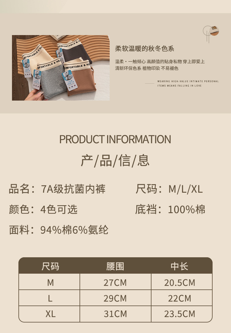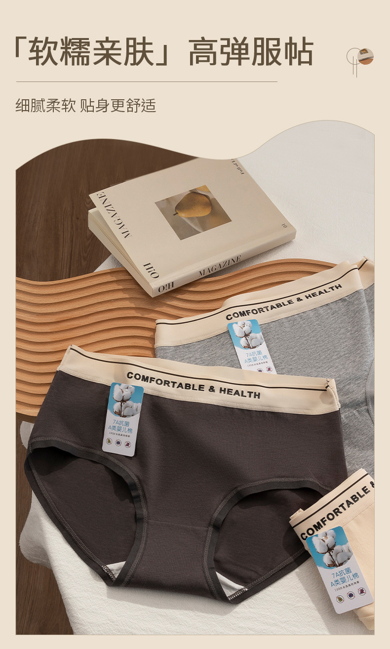 四季款~7A级纯棉女士内裤全棉抑菌裆A类婴儿棉女生中腰纯色三角裤