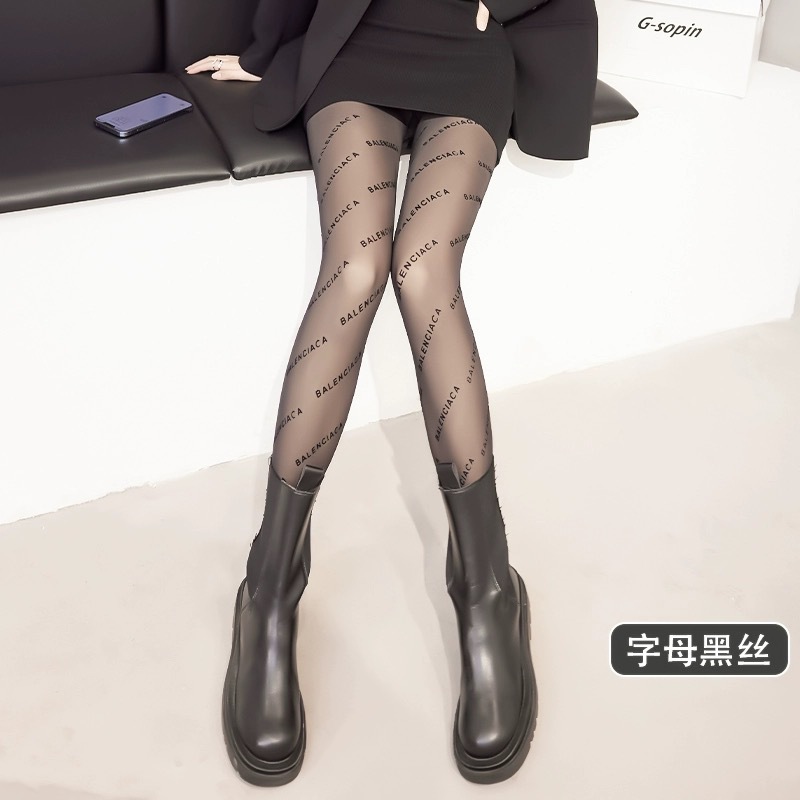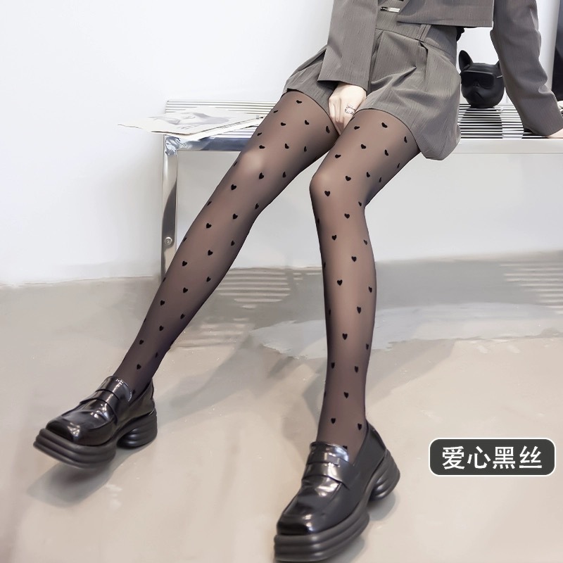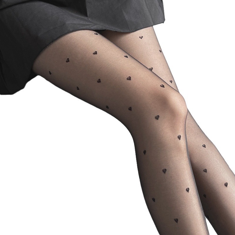 原版字母丝袜女夏季薄款JK性感0D黑丝爱心波点黑透肤防勾丝连裤袜