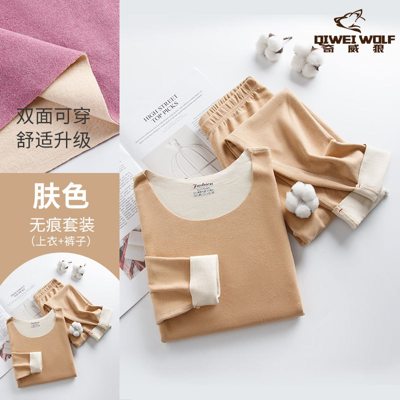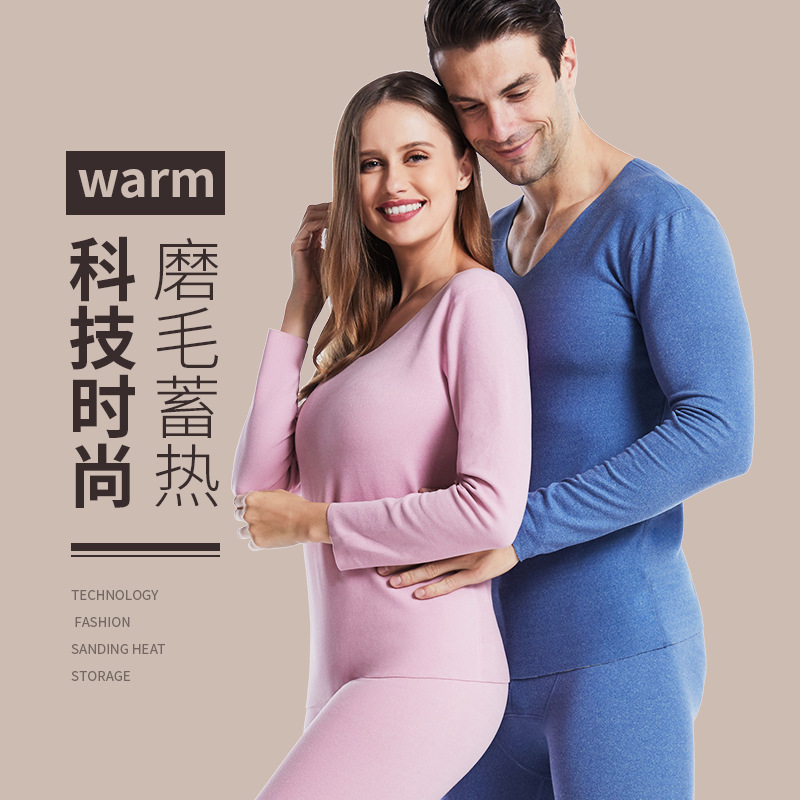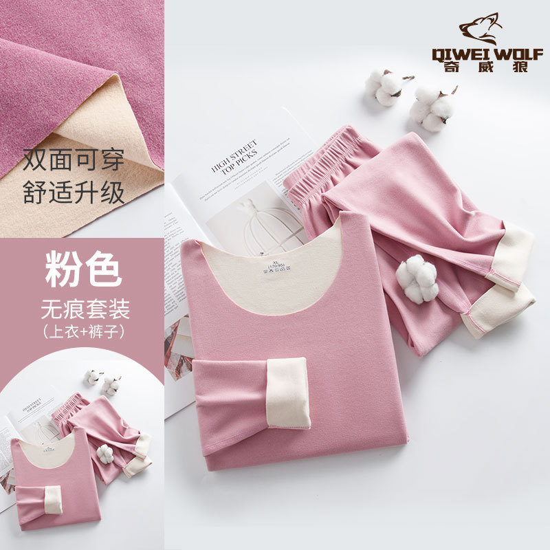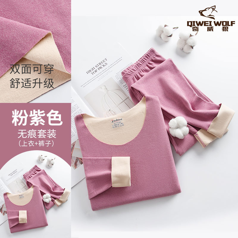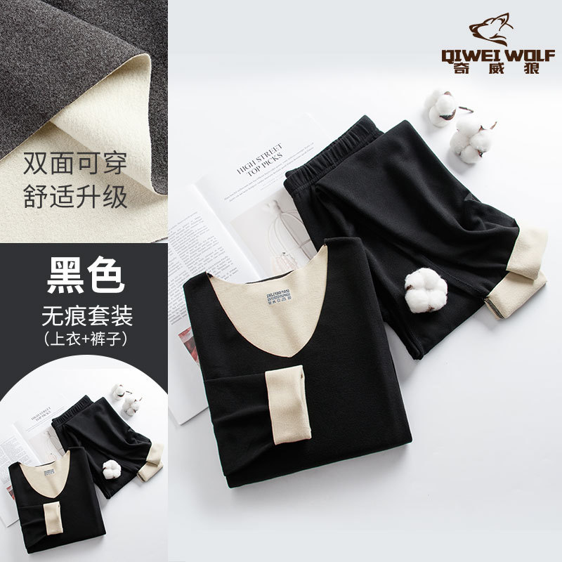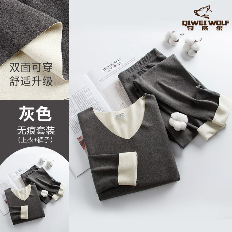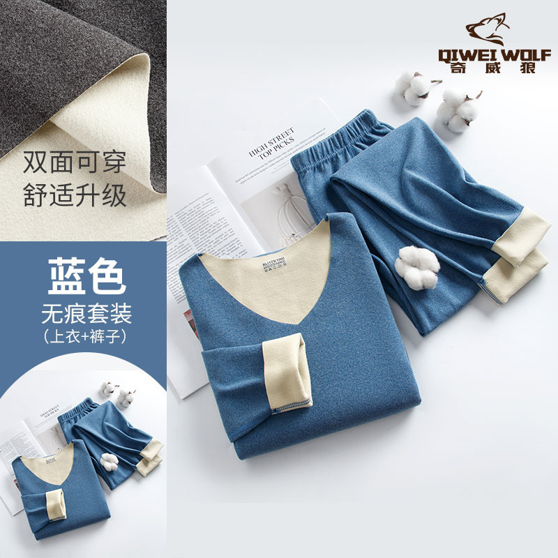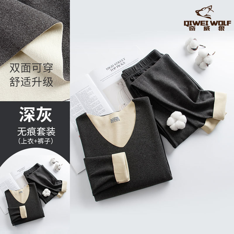 男士德绒双色无痕保暖内衣套装速暖秋衣秋裤轻盈弹性中厚保暖内衣