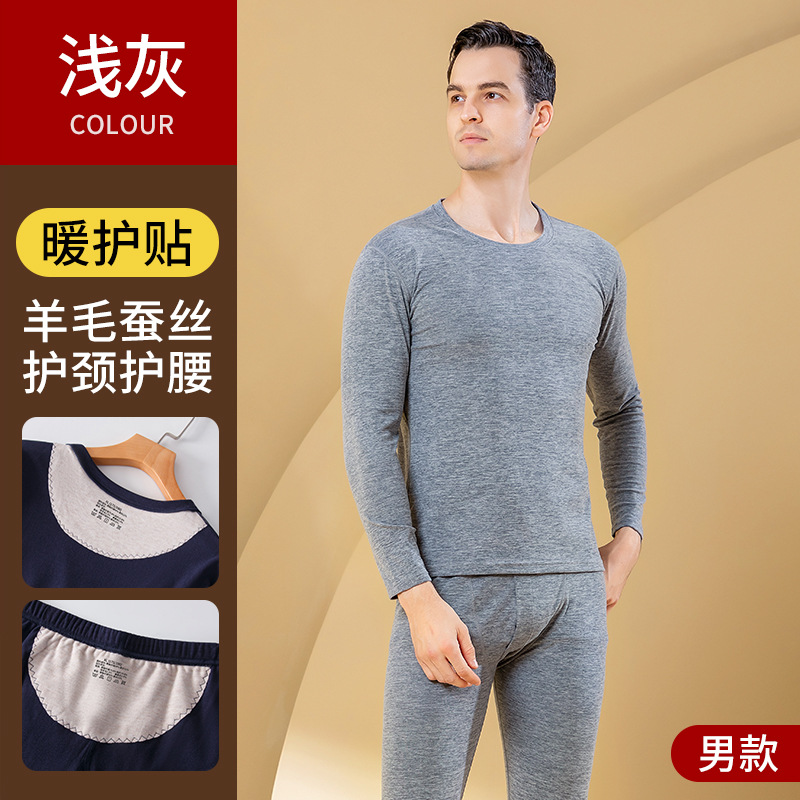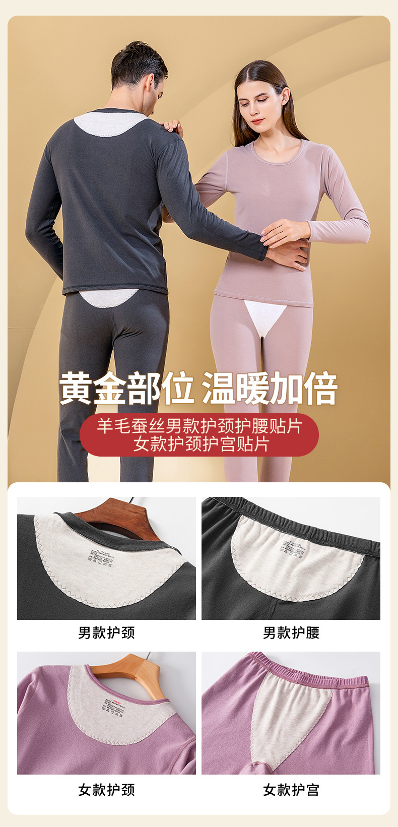 新款男士羊毛暖护贴保暖内衣套装加厚情侣睡衣女秋衣秋裤厂家批发