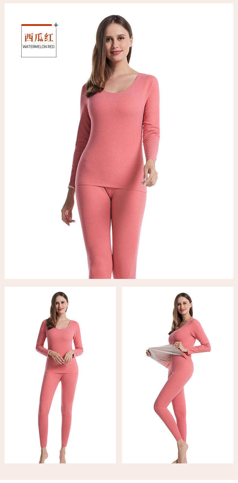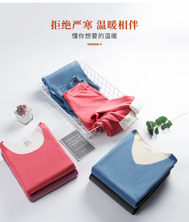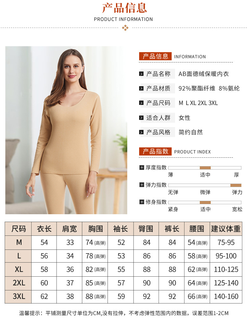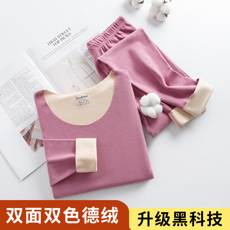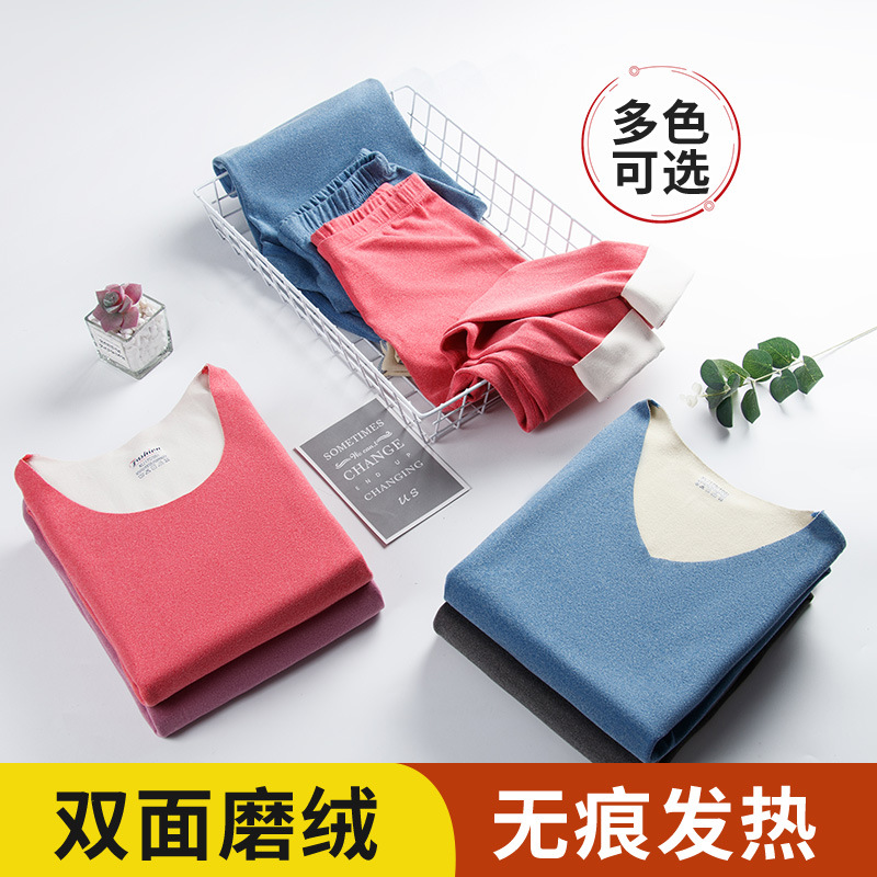 冬季新款AB面绒德保暖内衣套装 双面双色磨绒无痕高弹女秋衣秋裤