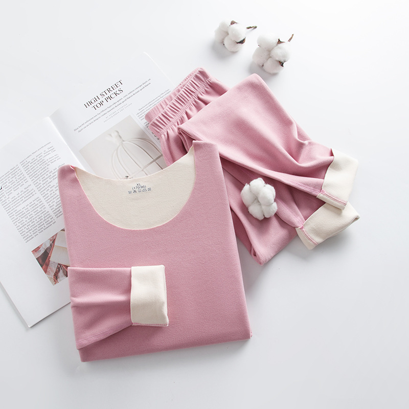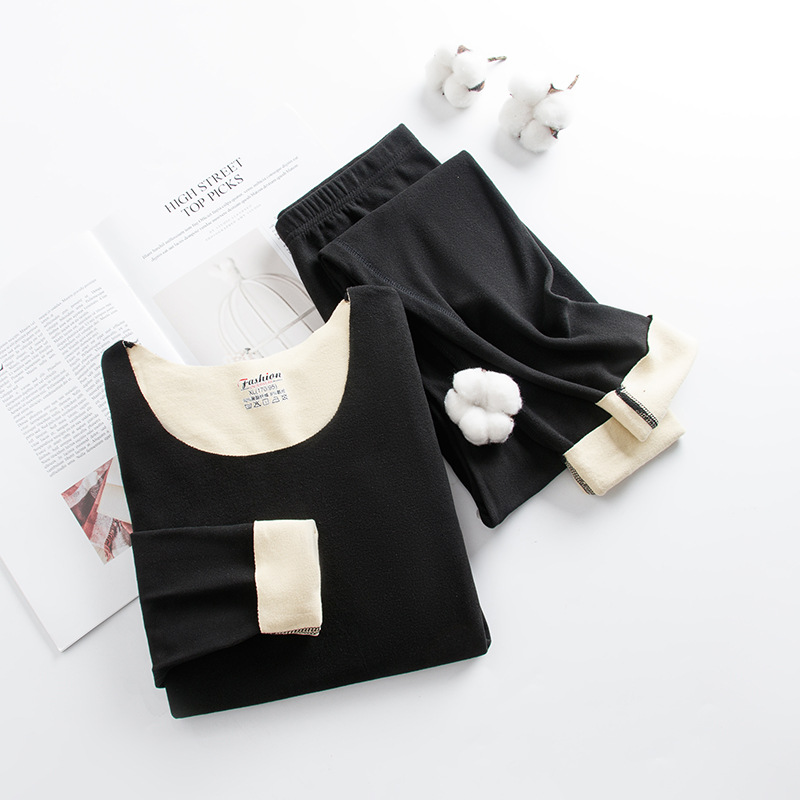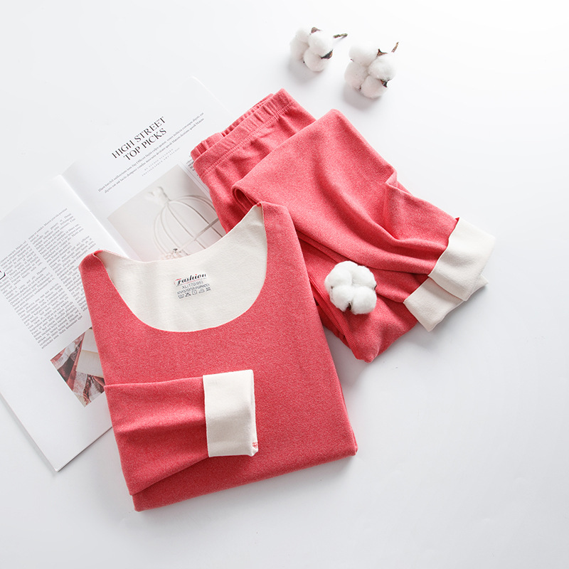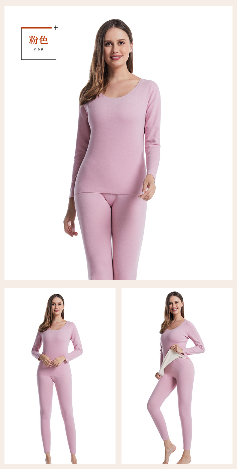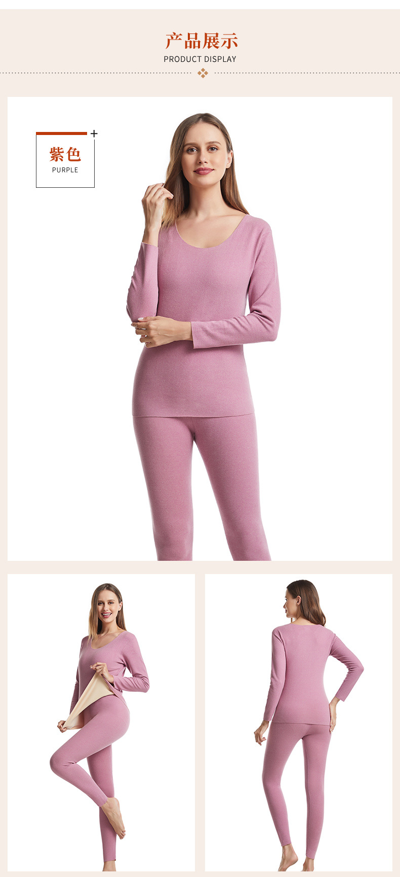 冬季新款AB面绒德保暖内衣套装 双面双色磨绒无痕高弹女秋衣秋裤