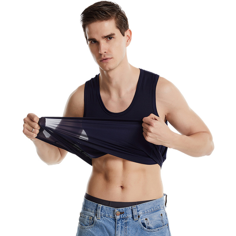 无袖网眼男士背心 薄款弹力U字型宽肩背心 贴身吸汗透气男士背心