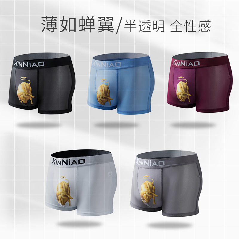 速干中腰男士平角裤 网纱透气舒适内裤 动物图案柔软贴身男士内裤