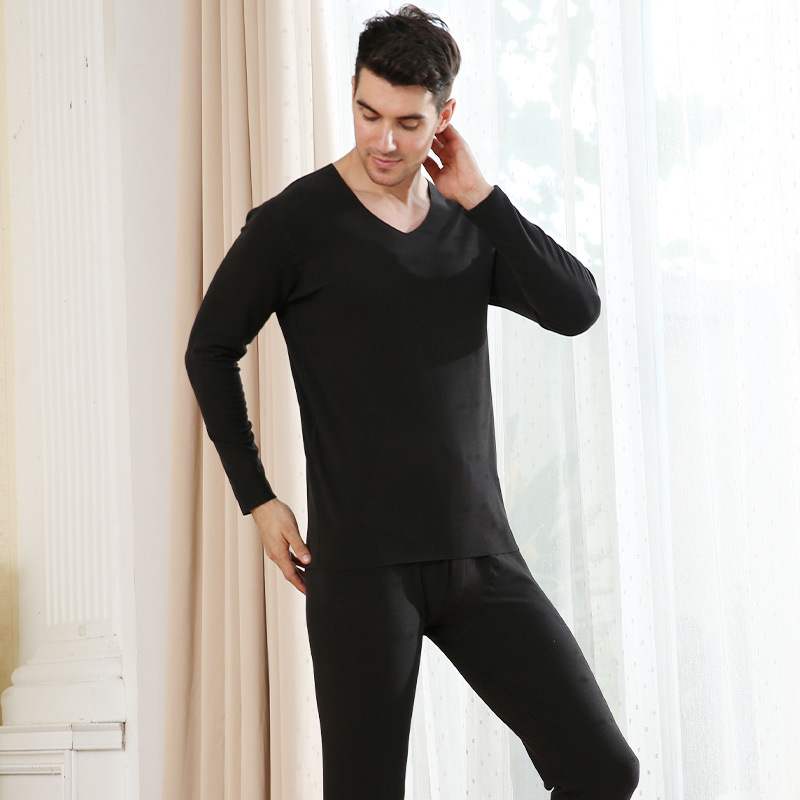 秋冬V领男士内衣套装 弹力舒适加厚保暖内衣 轻薄吸湿男秋衣秋裤