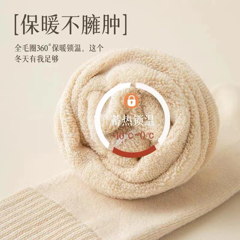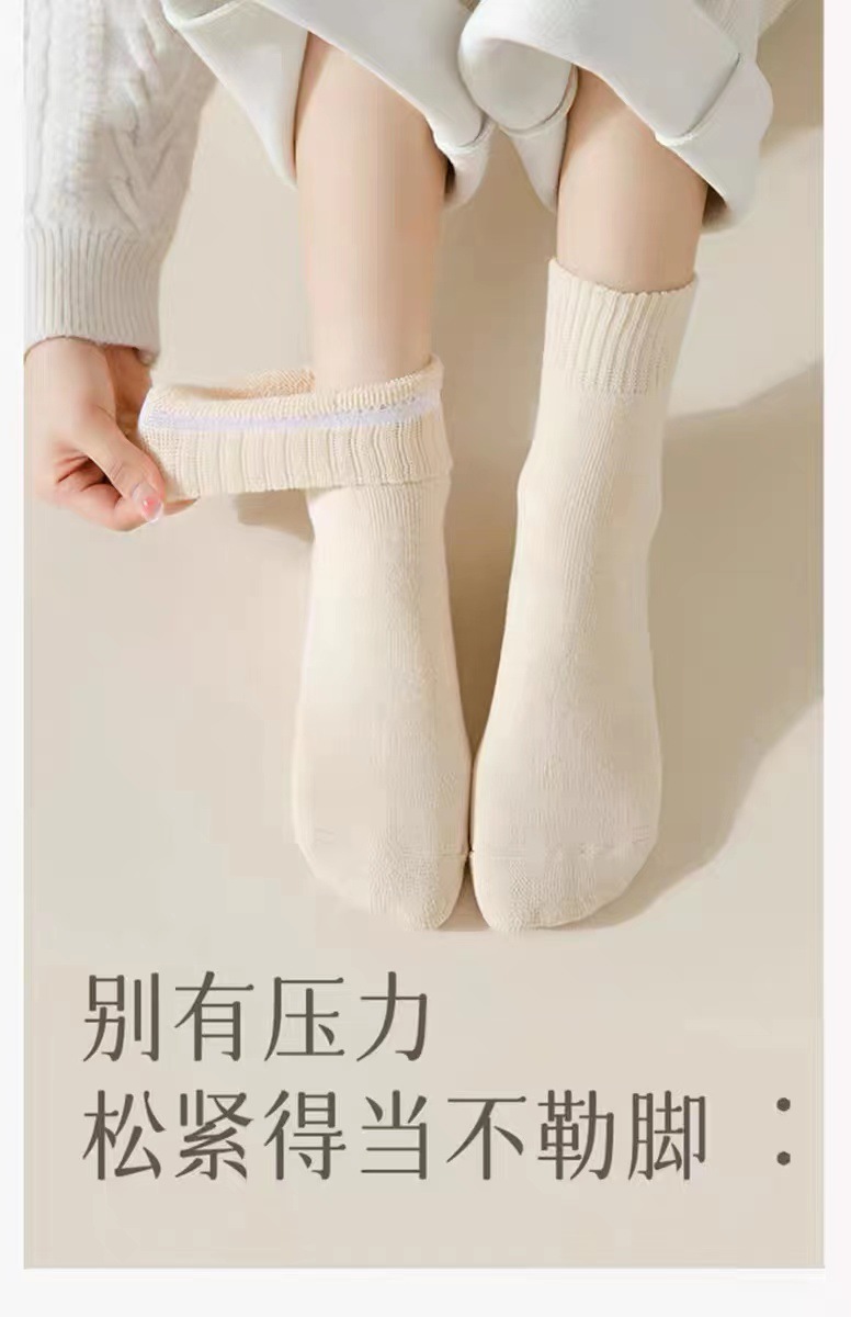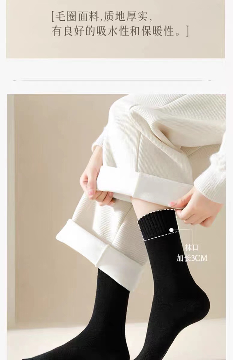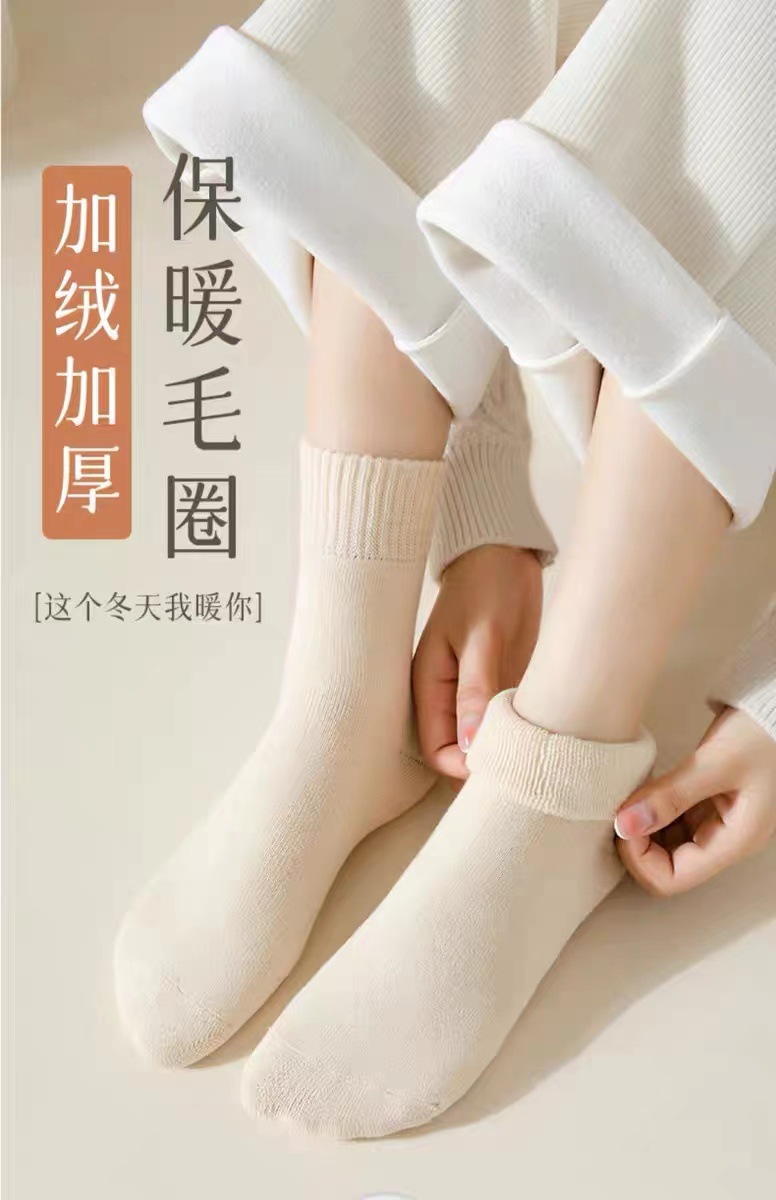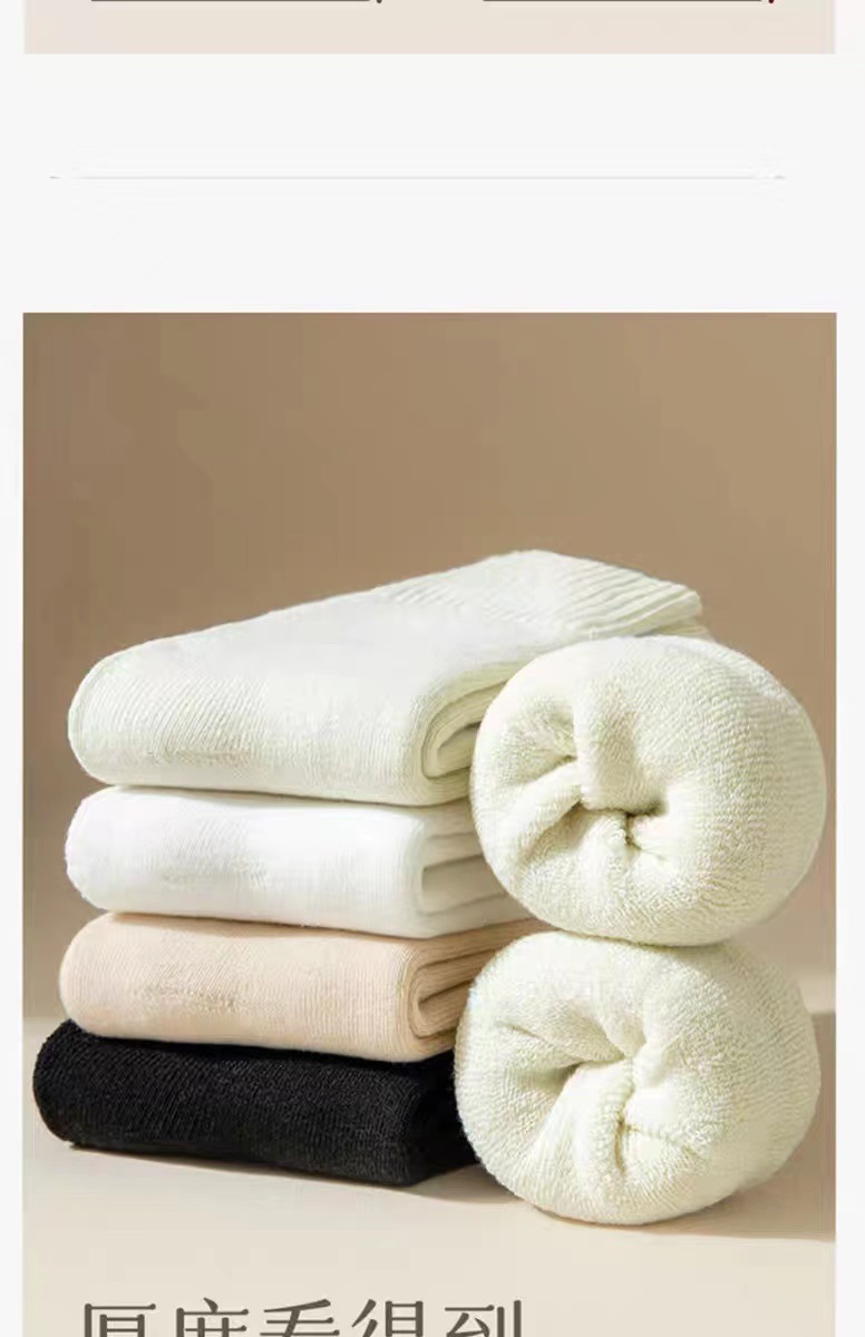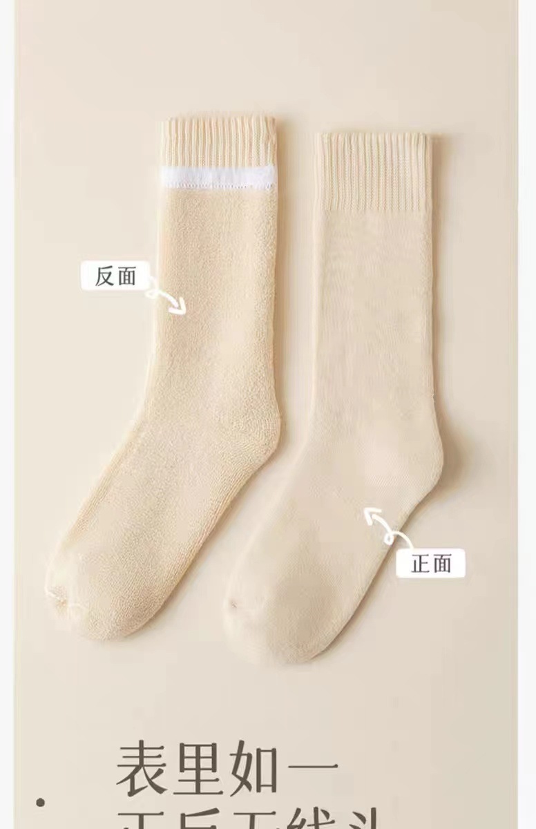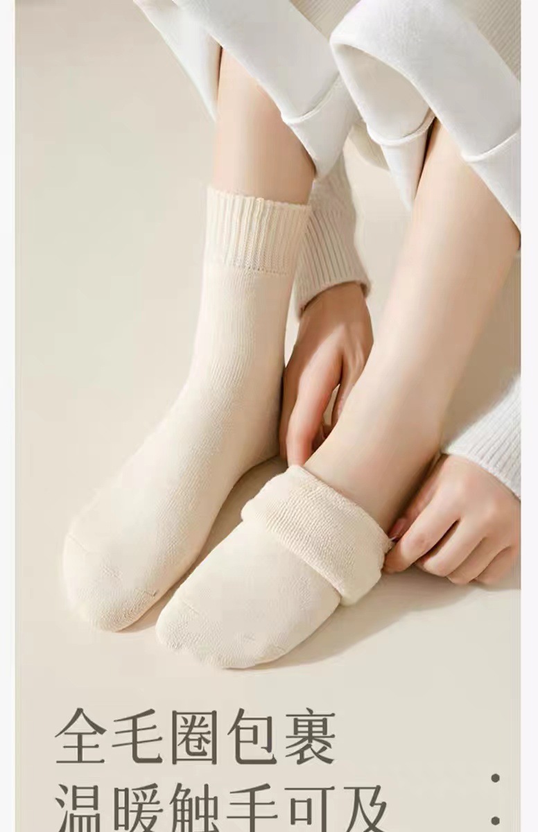 袜子女秋冬棉中筒袜日系加绒加厚毛圈保暖女袜奶白色软糯松口棉袜