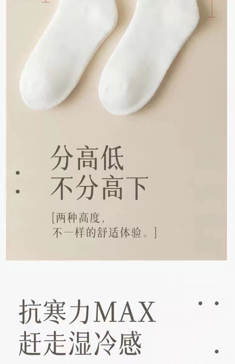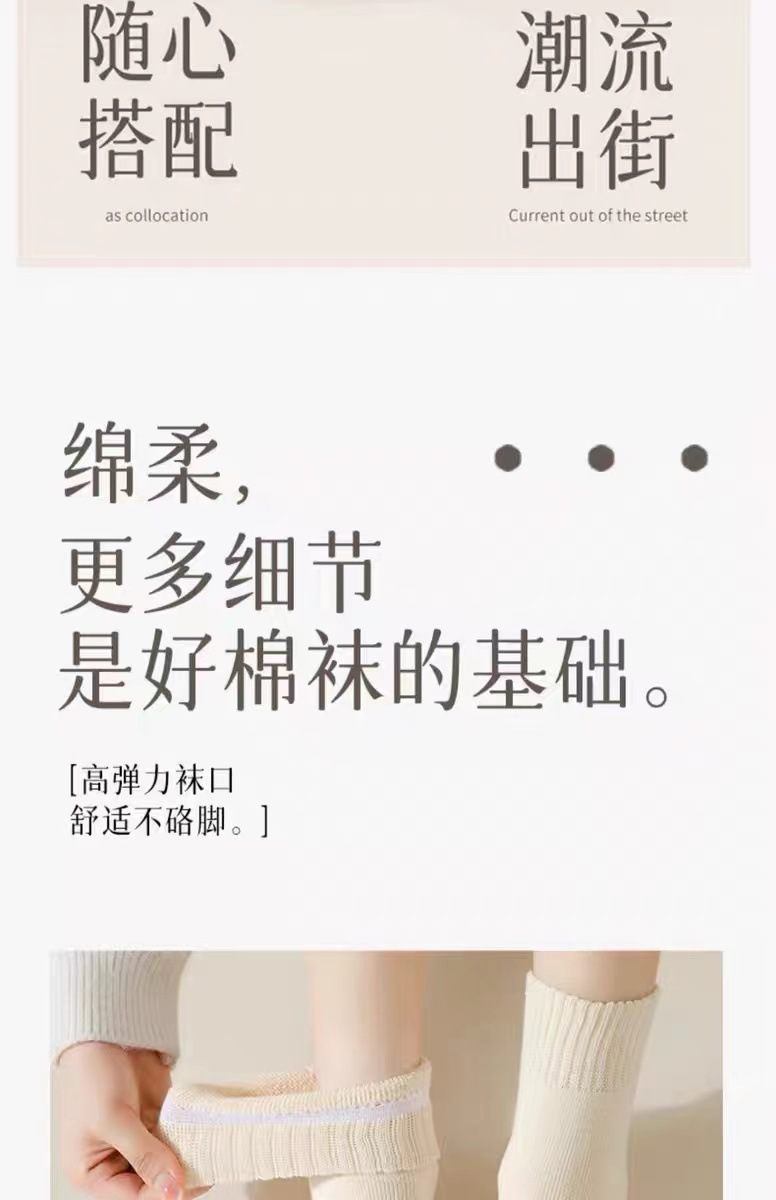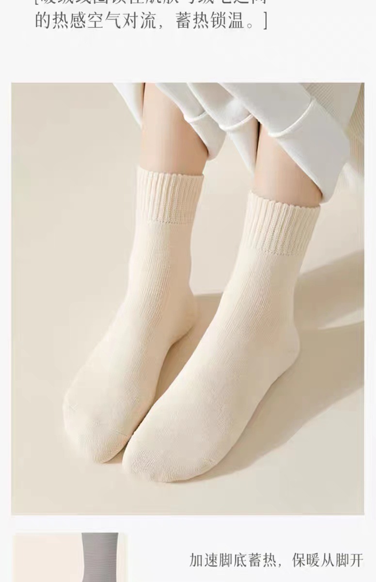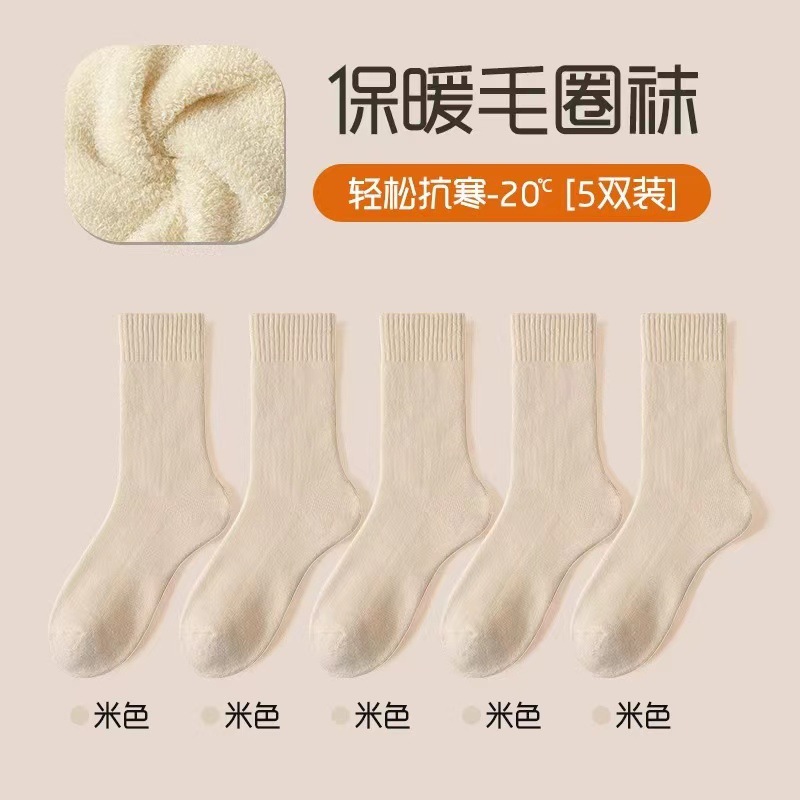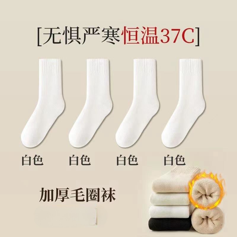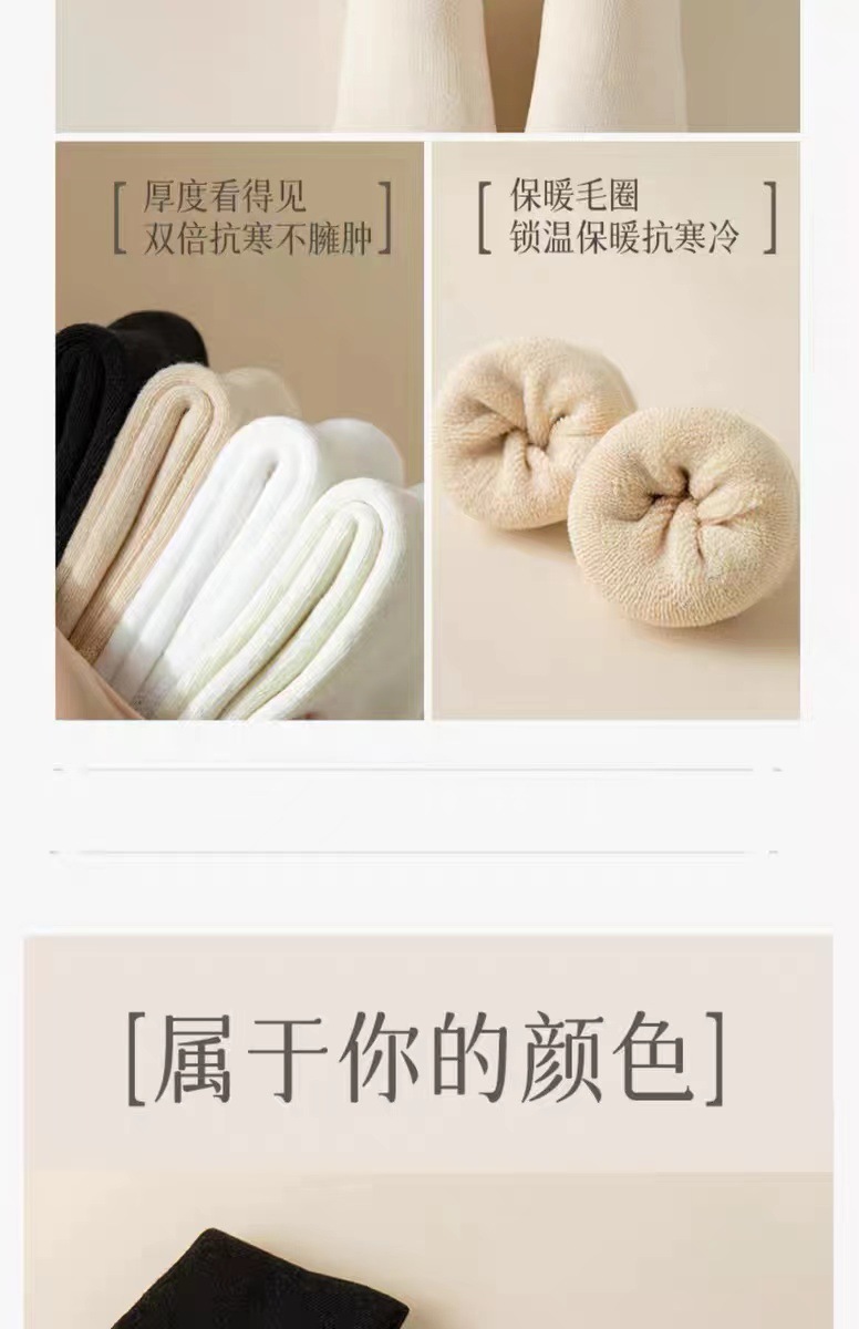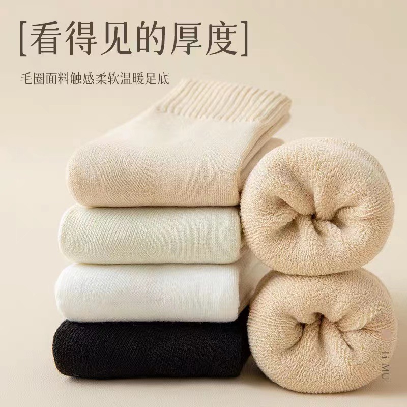 袜子女秋冬棉中筒袜日系加绒加厚毛圈保暖女袜奶白色软糯松口棉袜