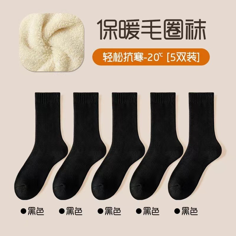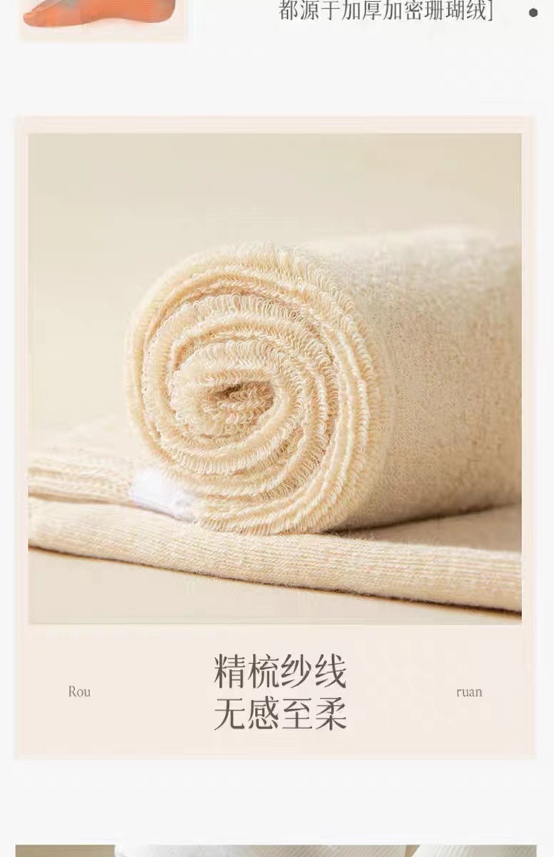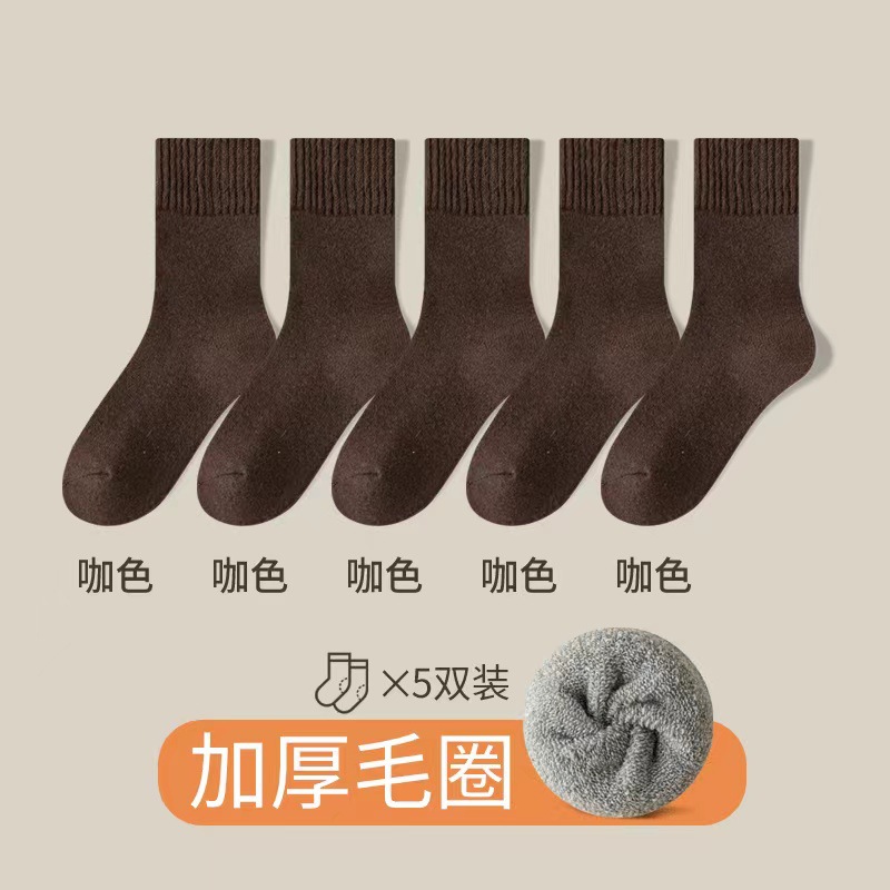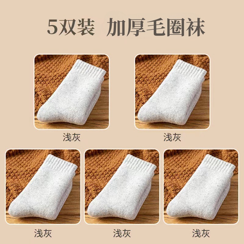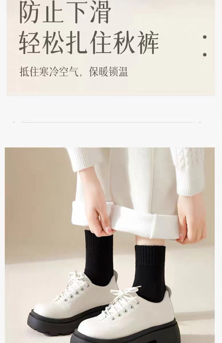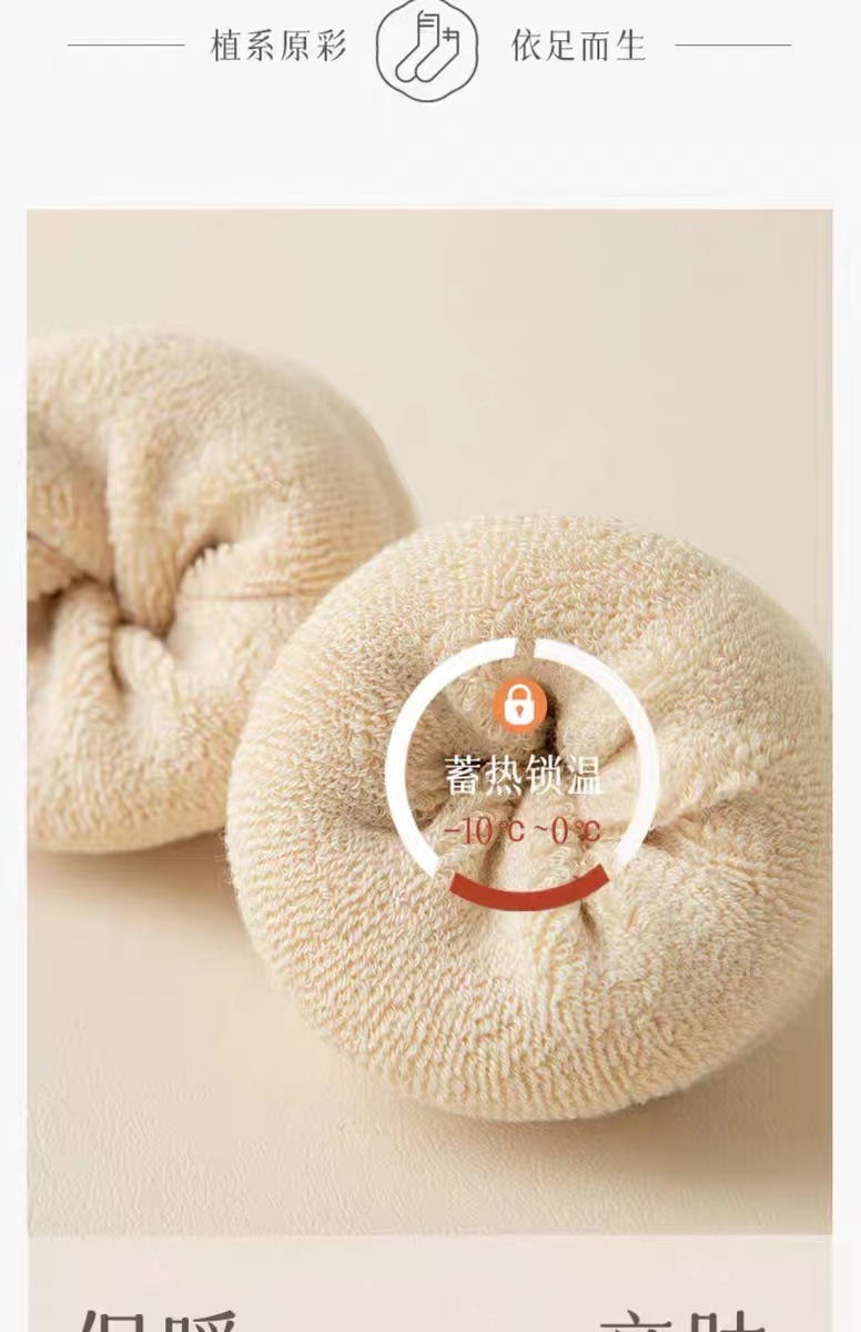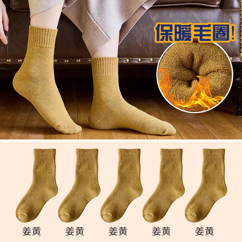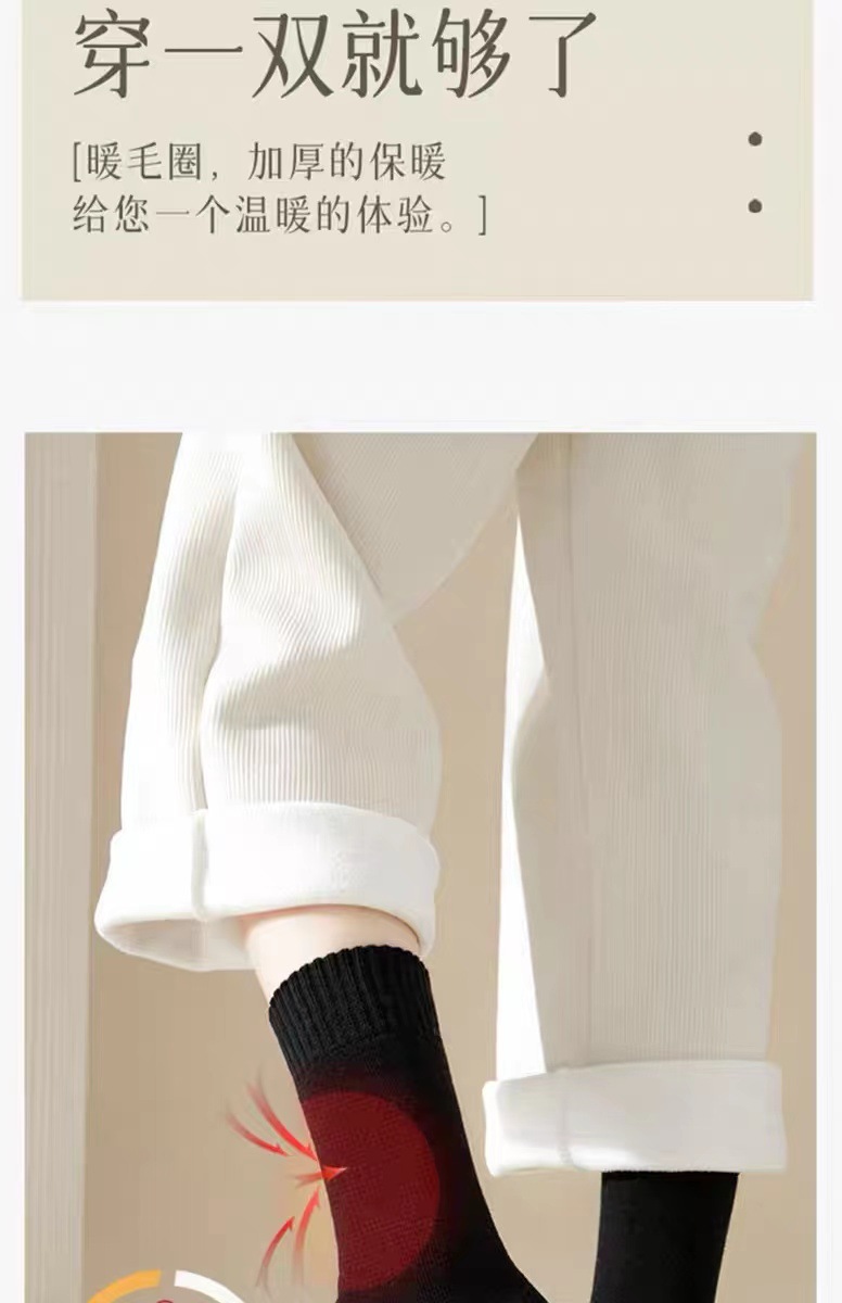 袜子女秋冬棉中筒袜日系加绒加厚毛圈保暖女袜奶白色软糯松口棉袜
