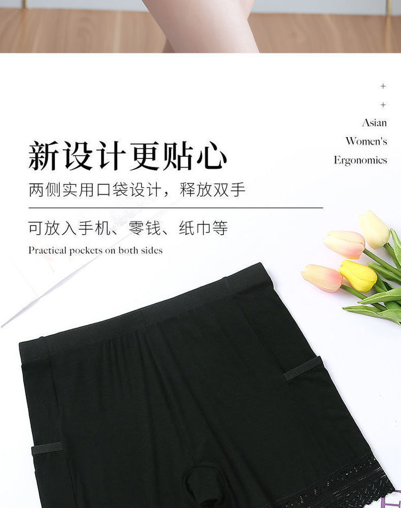莫代尔带口袋安全裤防走光蕾丝女夏季胖MM大码保险打底裤厂家批发