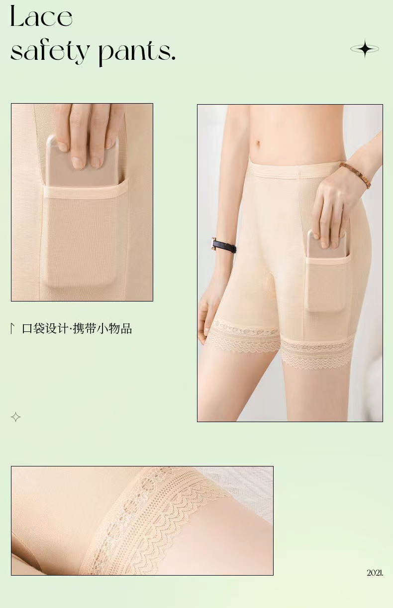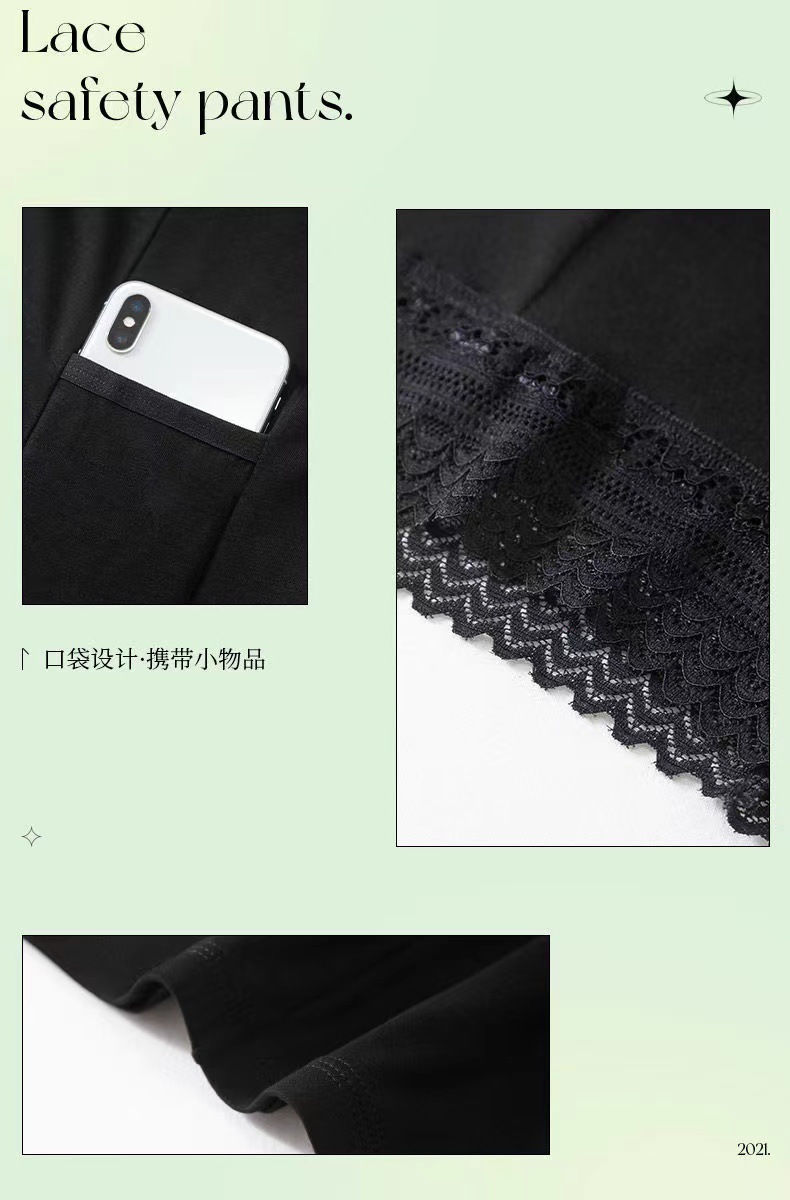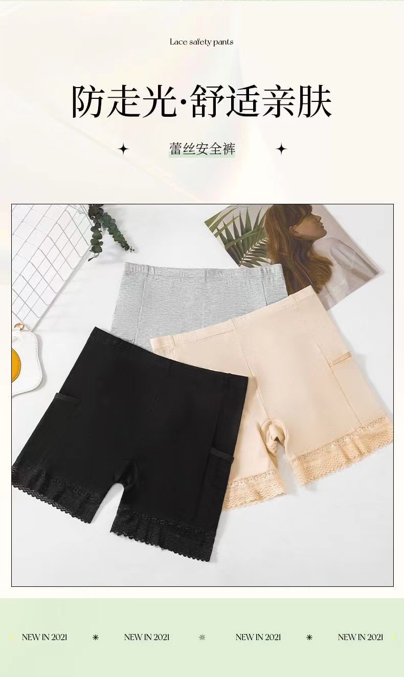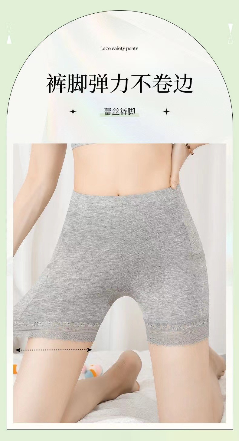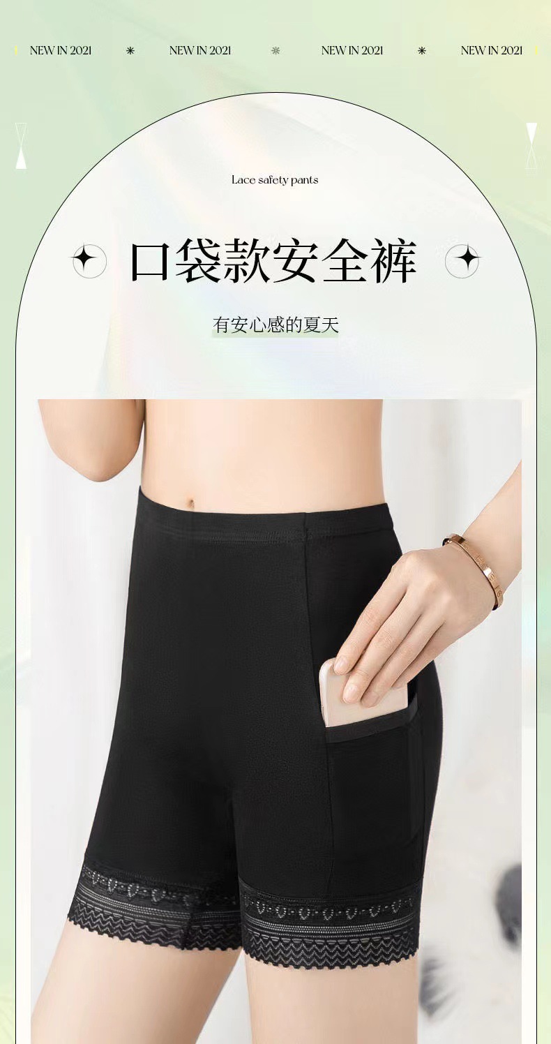 女士口袋安全裤夏季薄款莫代尔打底裤大码蕾丝防走光保险裤批发款
