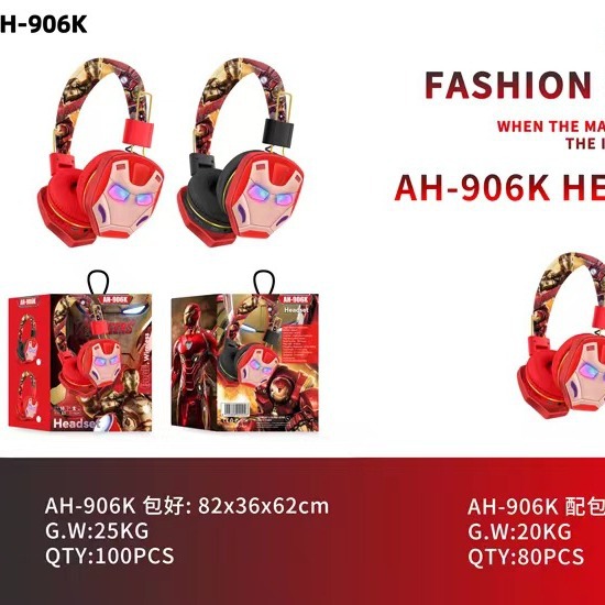 AH-906K 跨境儿童耳机可爱卡通头戴式无线音乐彩灯蓝牙耳机可折叠