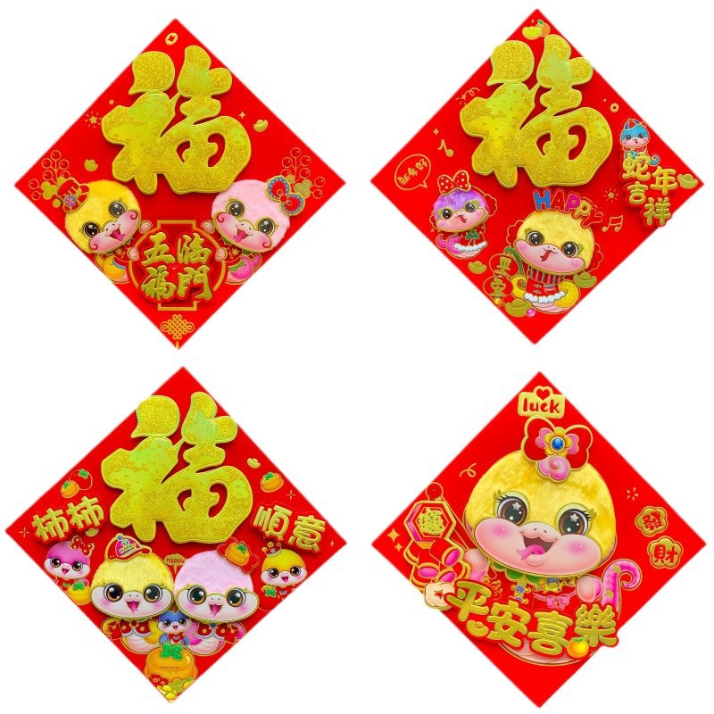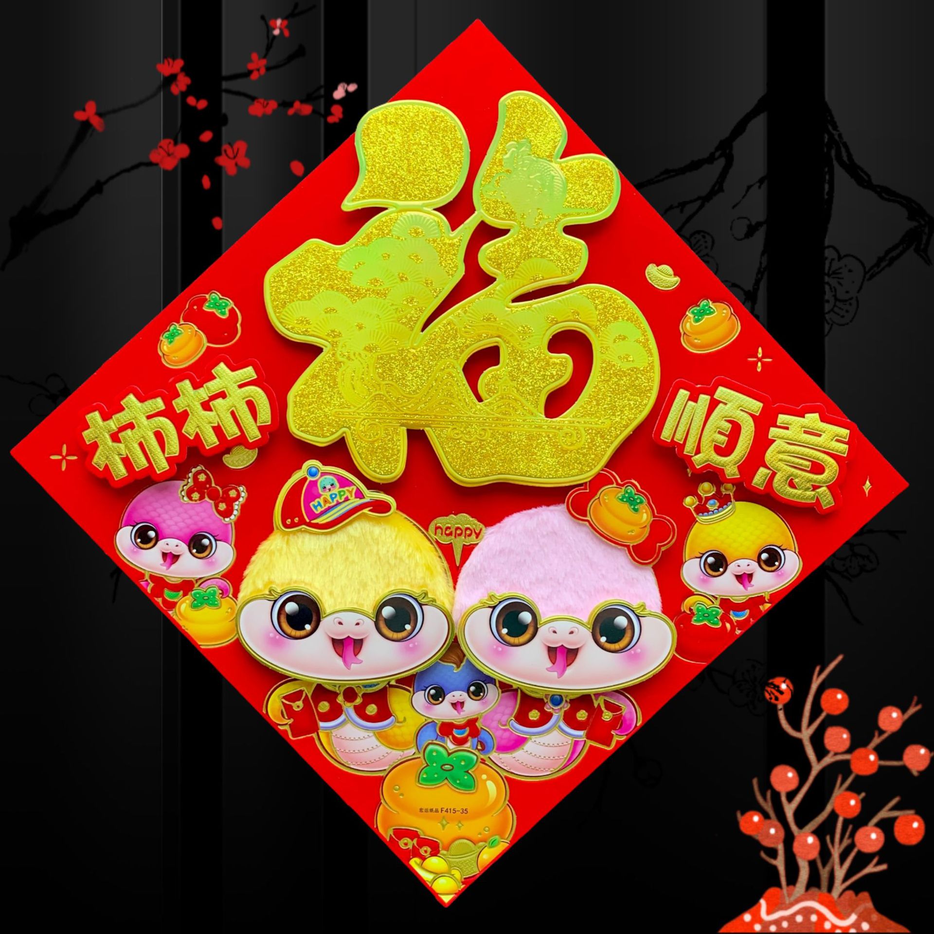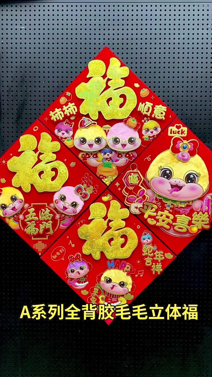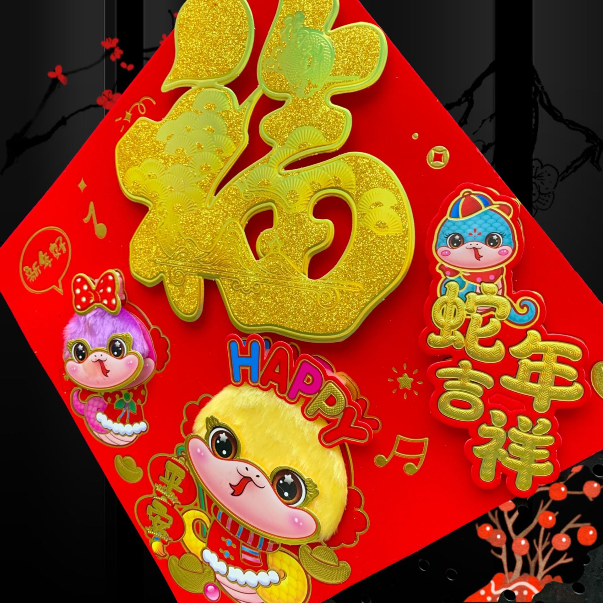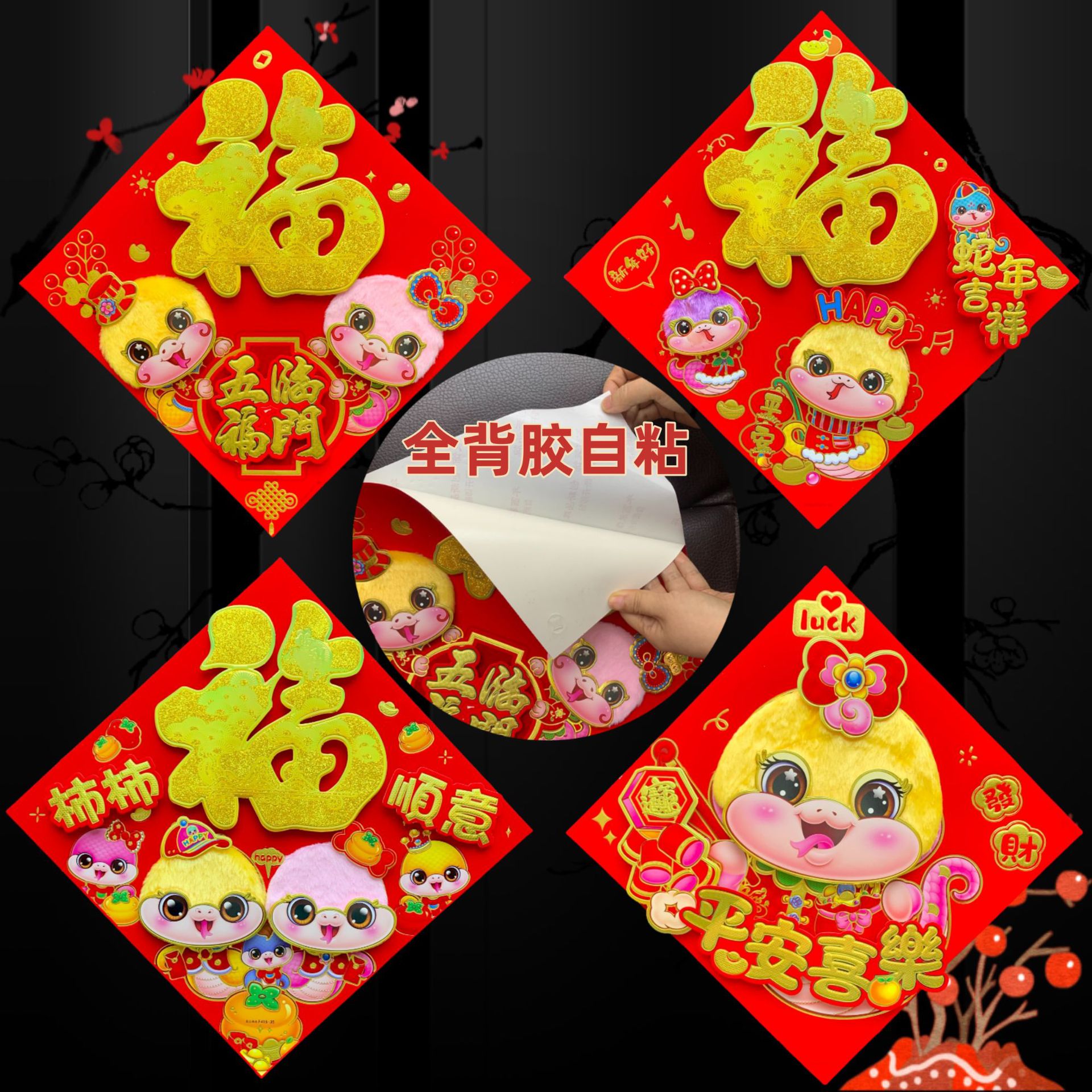 蛇年福字门贴全背胶自粘毛毛立体福字2025年春节新款福字贴装饰