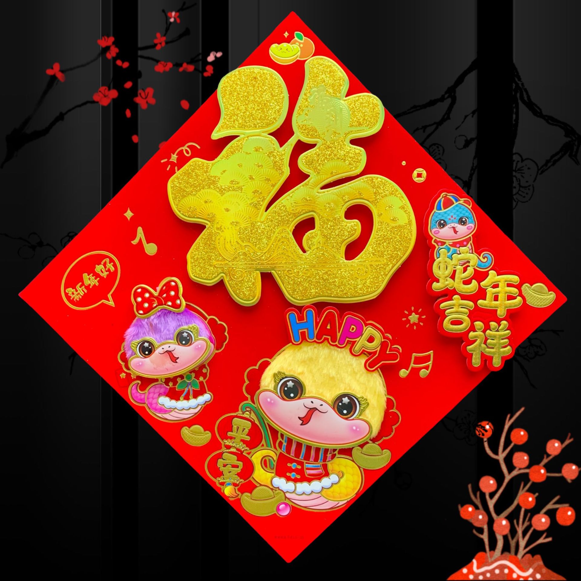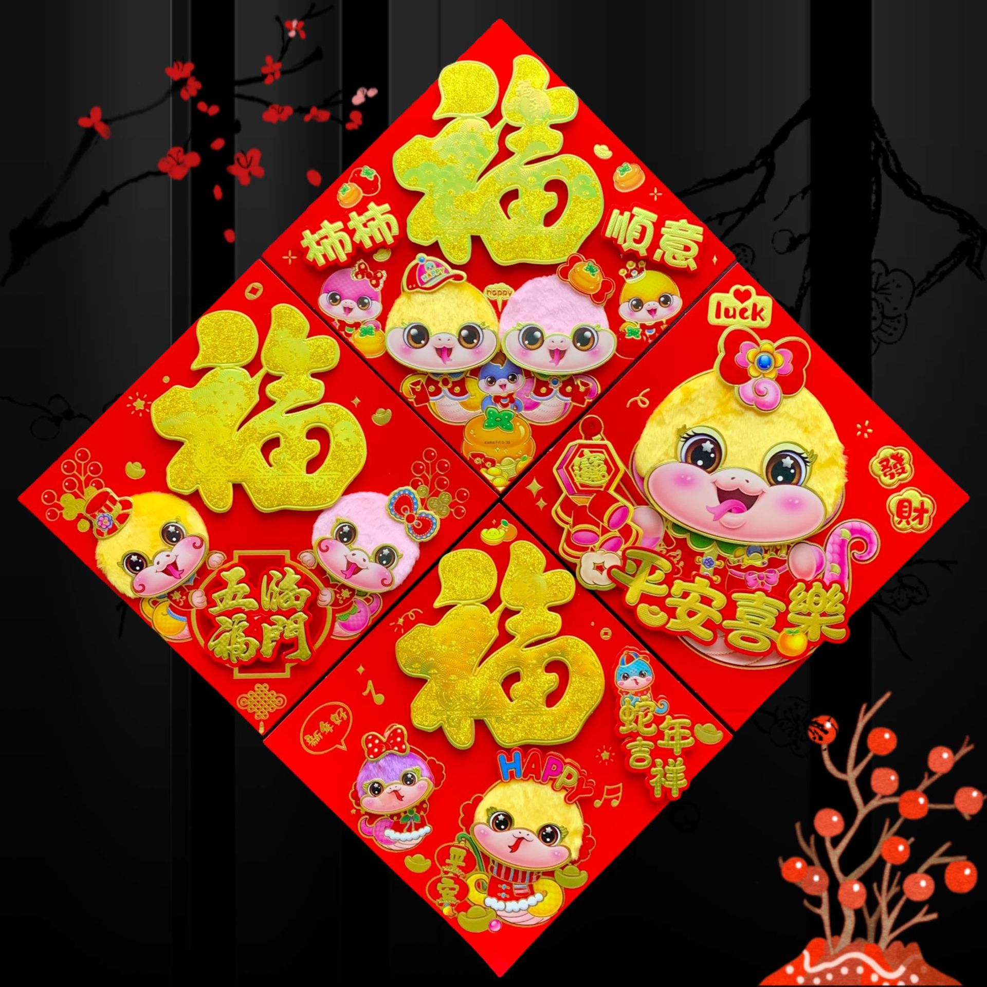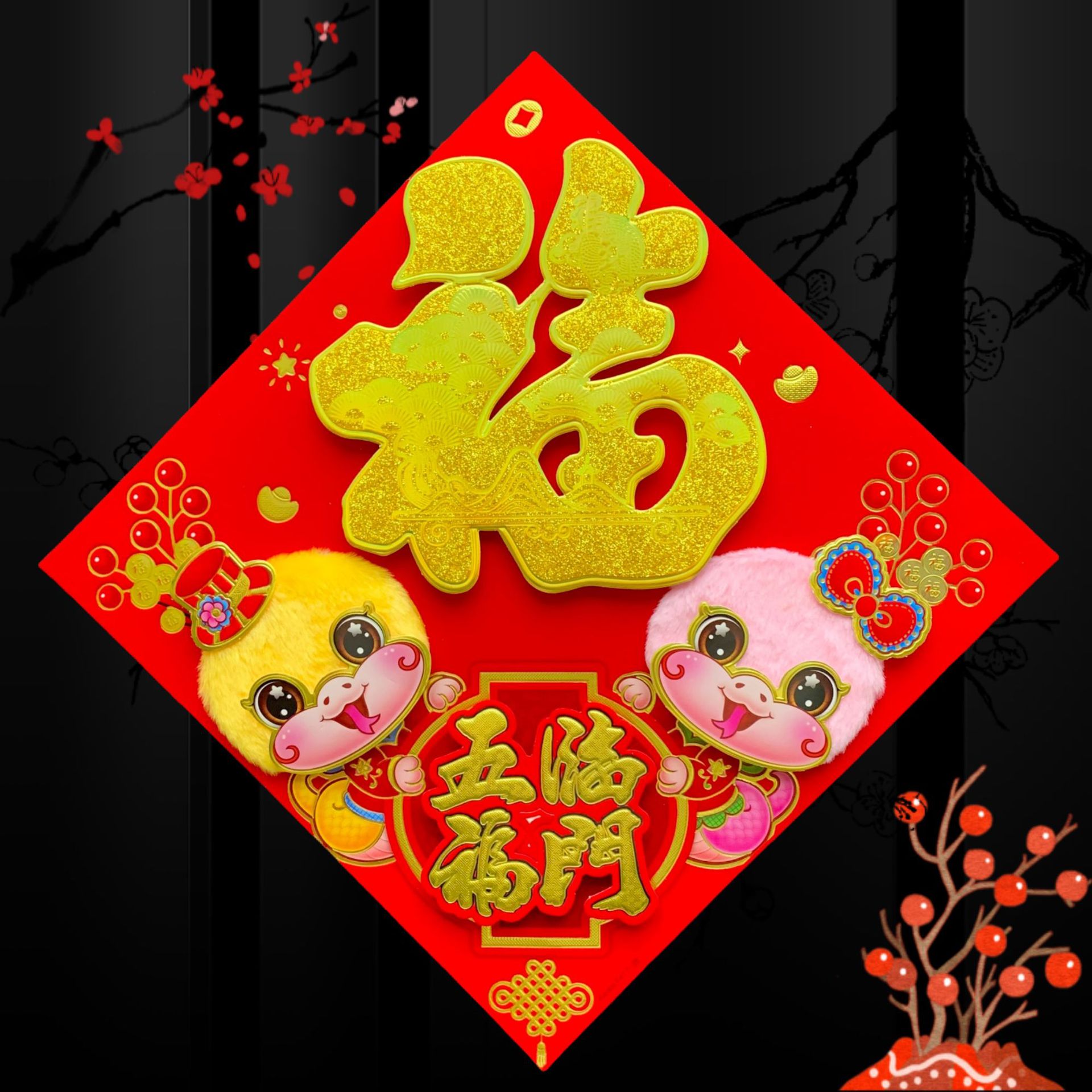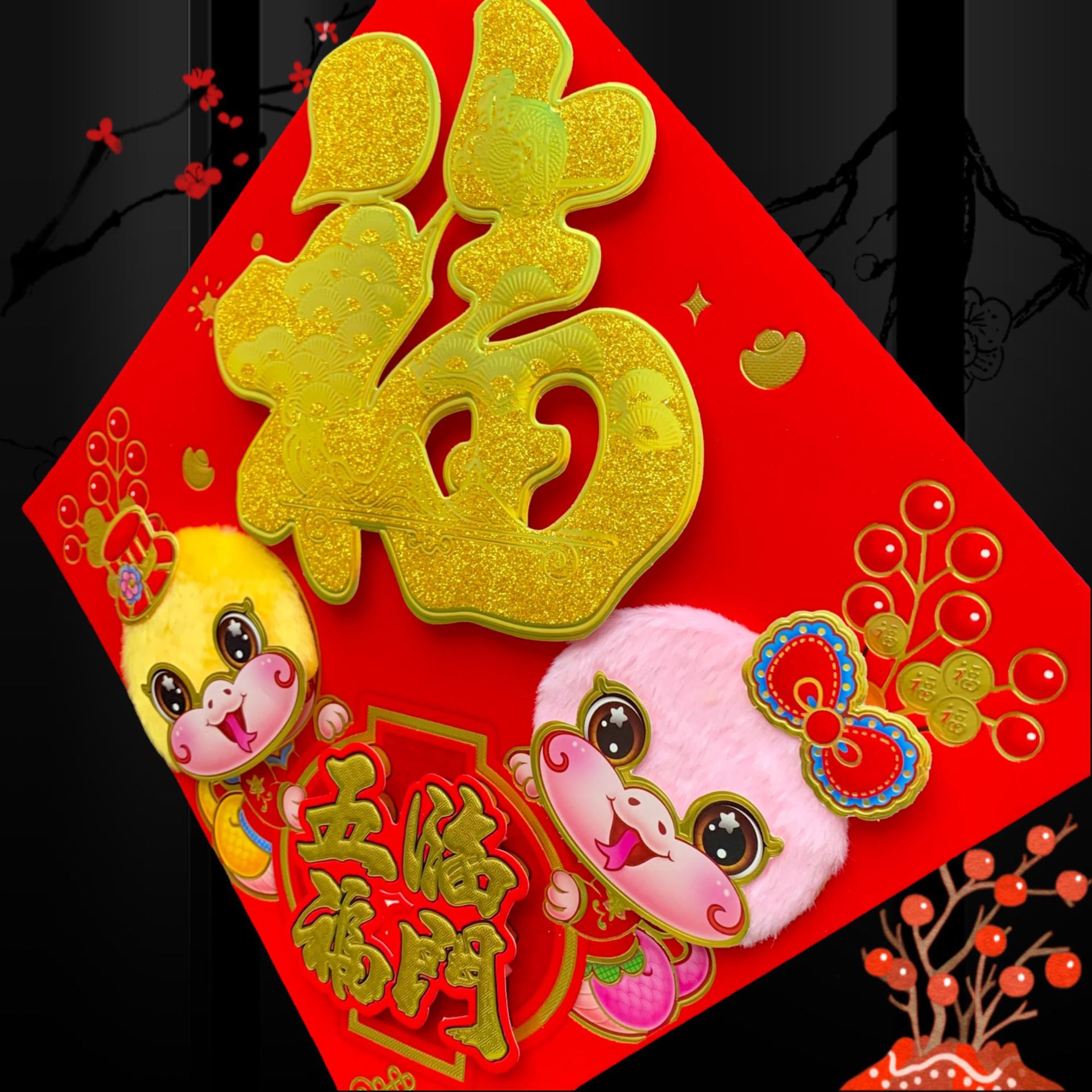 蛇年福字门贴全背胶自粘毛毛立体福字2025年春节新款福字贴装饰