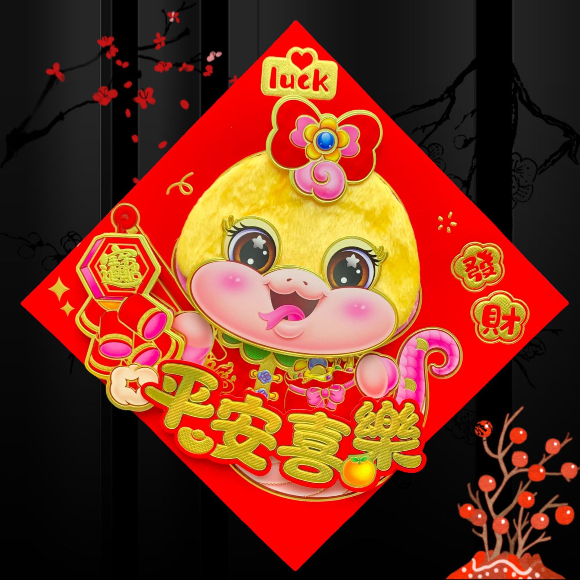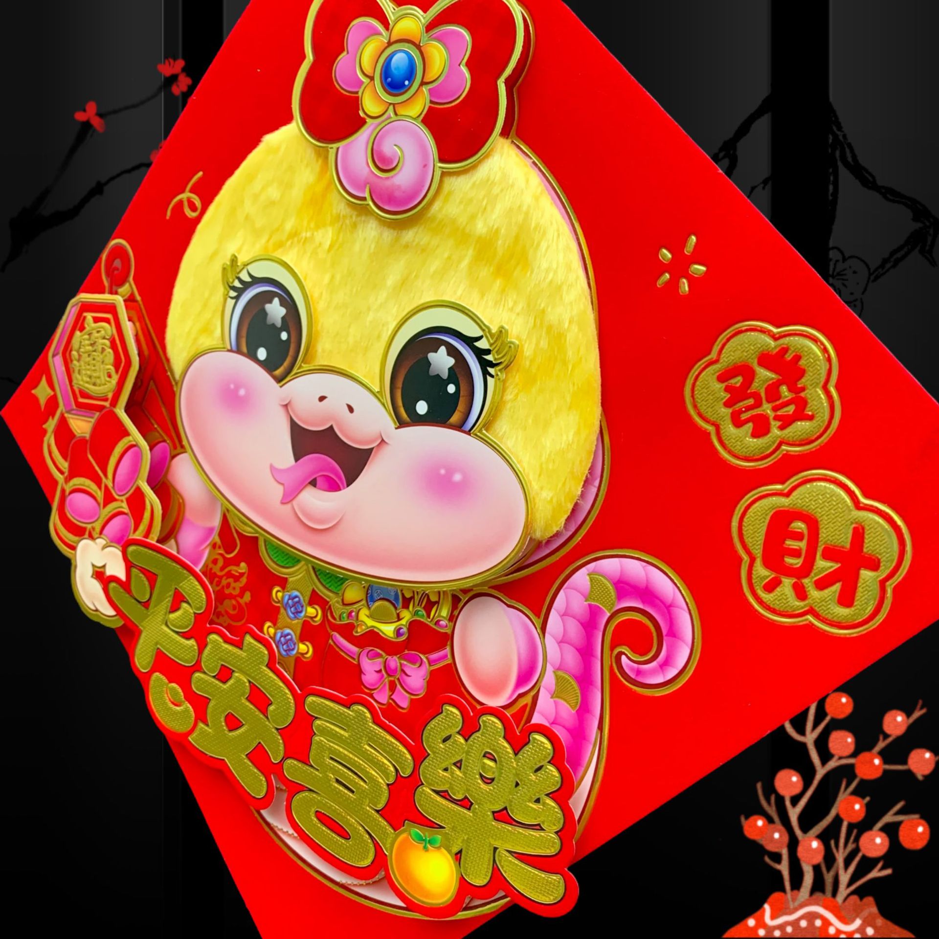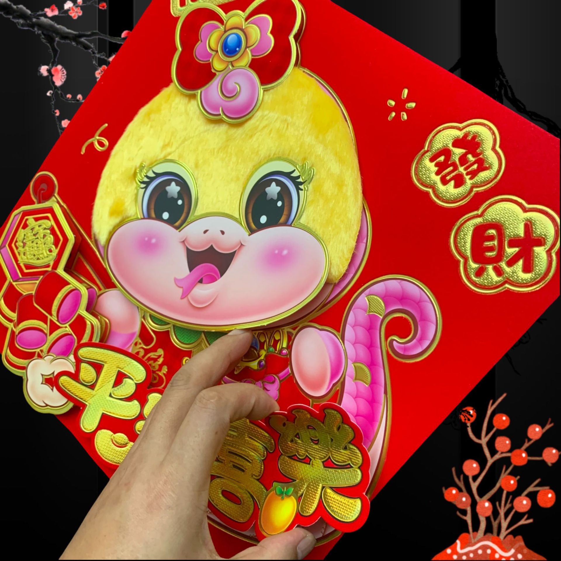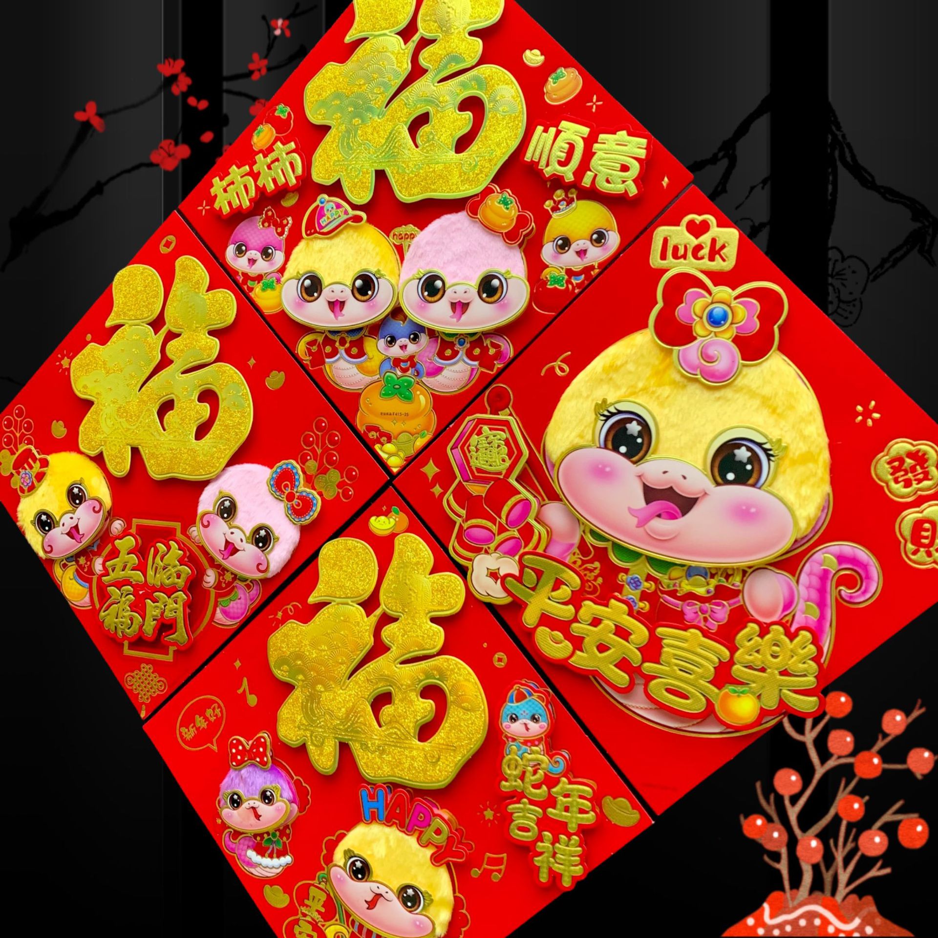 蛇年福字门贴全背胶自粘毛毛立体福字2025年春节新款福字贴装饰