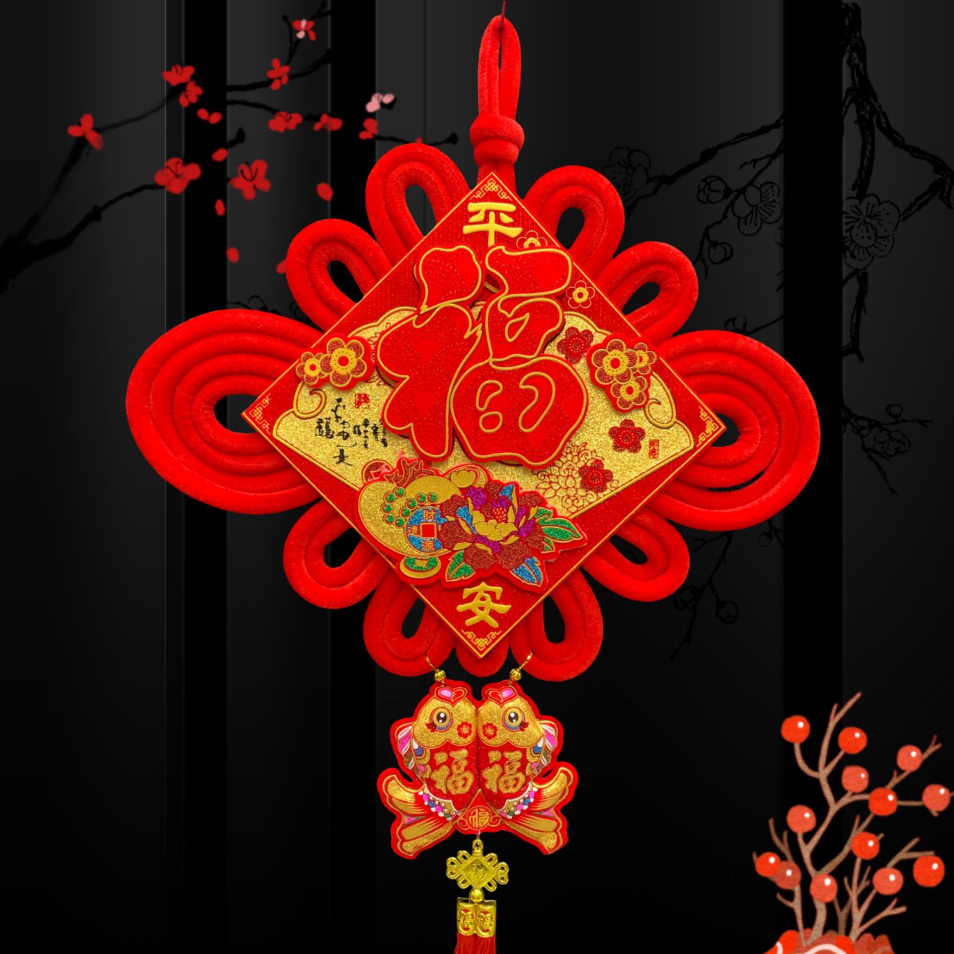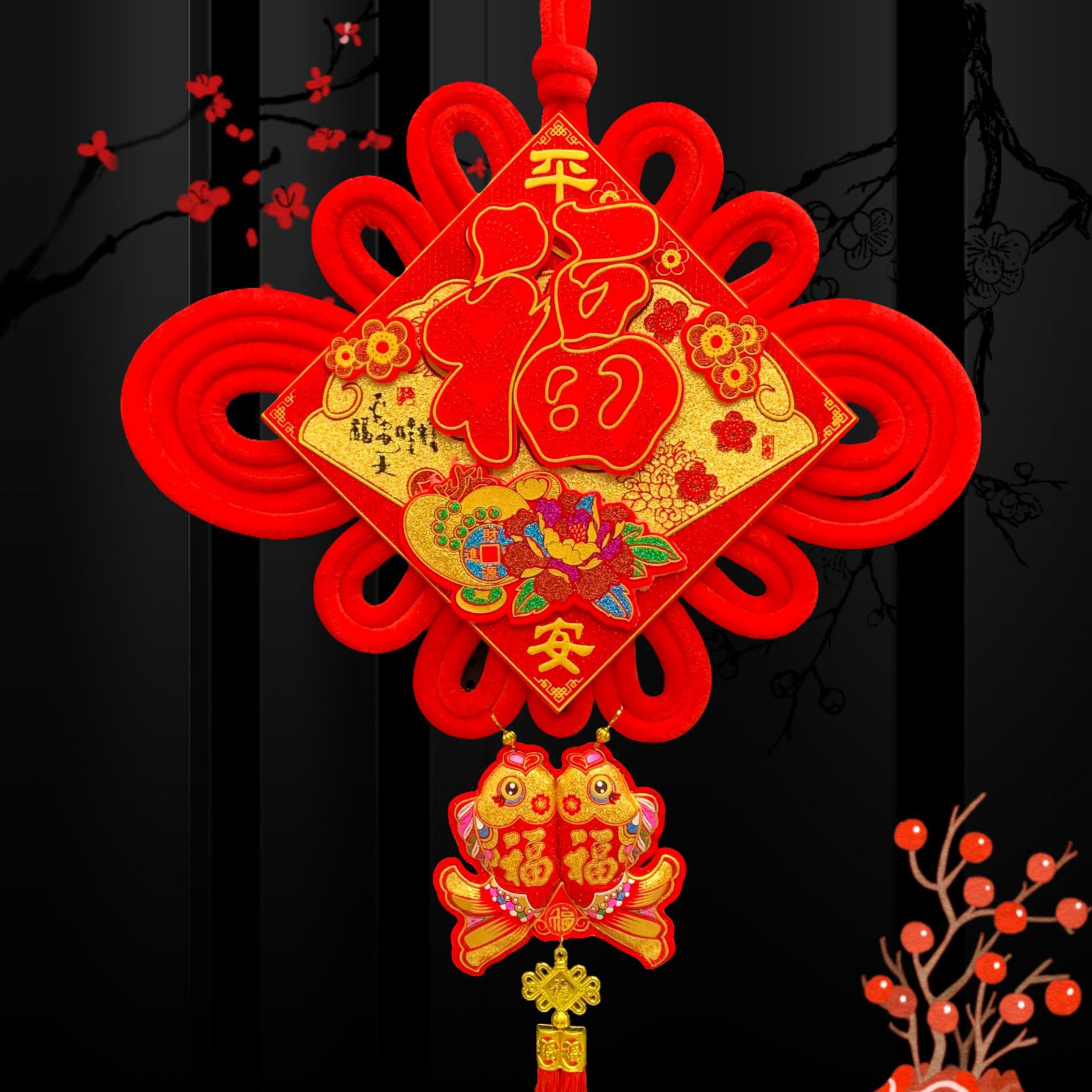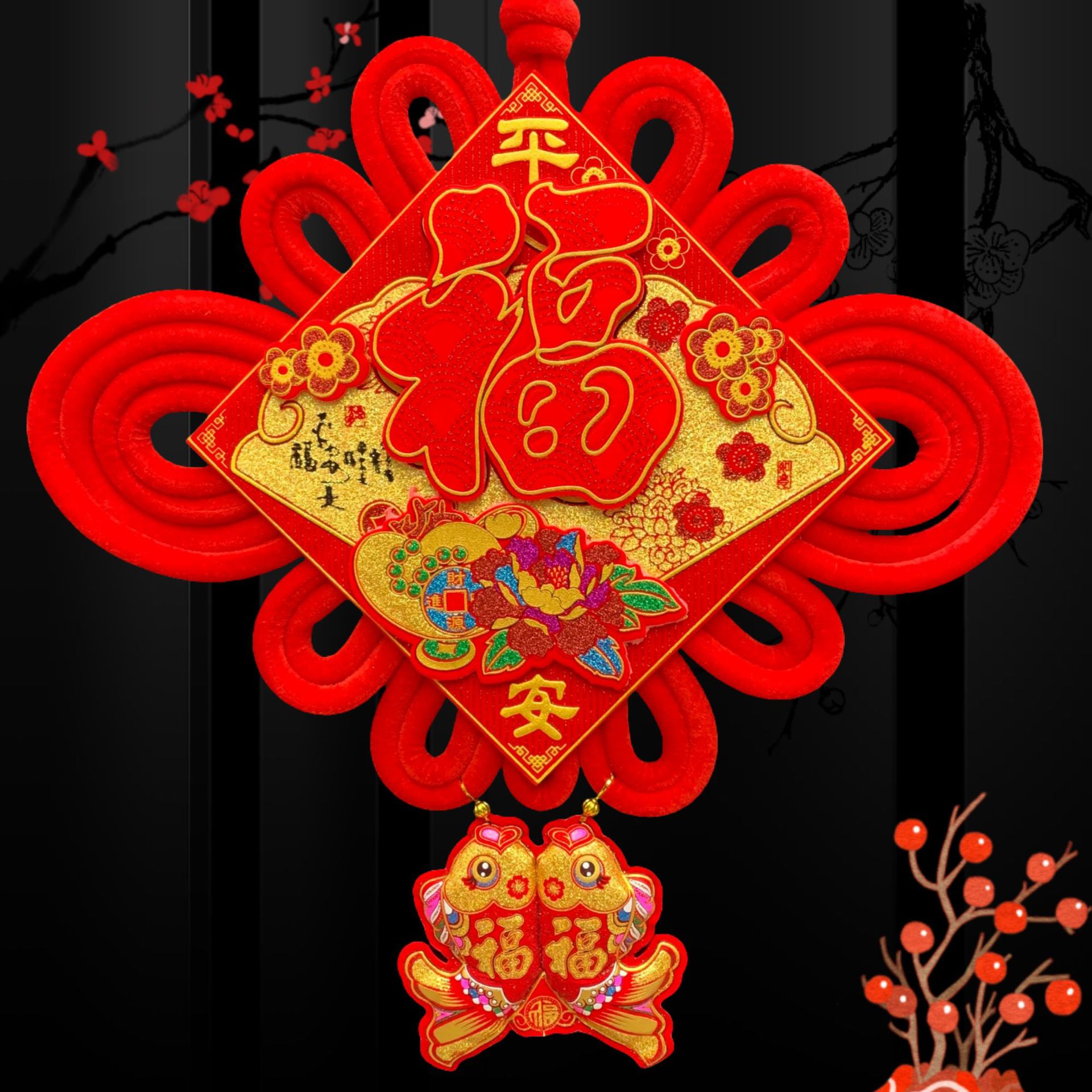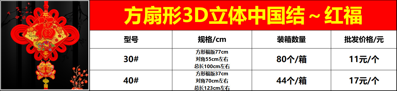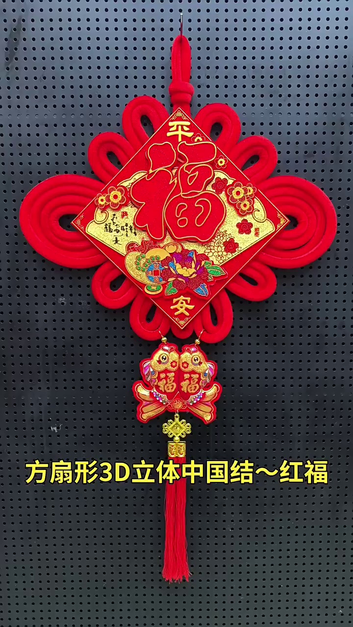 新品上市方扇形3D立体中国结~红福,双鱼双线,实心福字实心配件,30# 40# 两个尺寸,