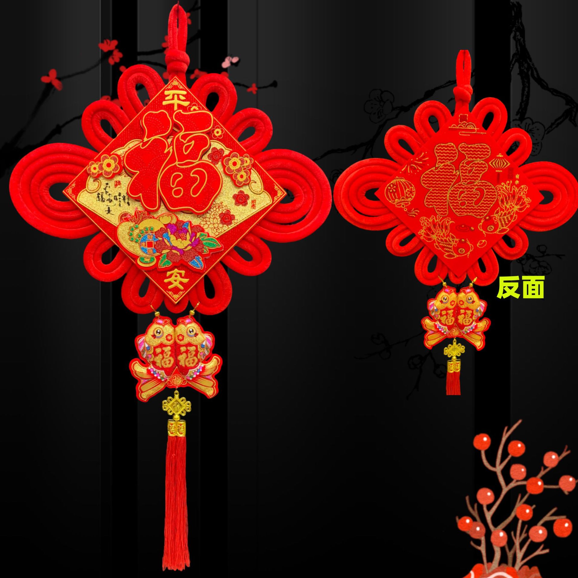 新年挂饰批发春节装饰喜庆用品 方扇形3D立体中国结红福挂件