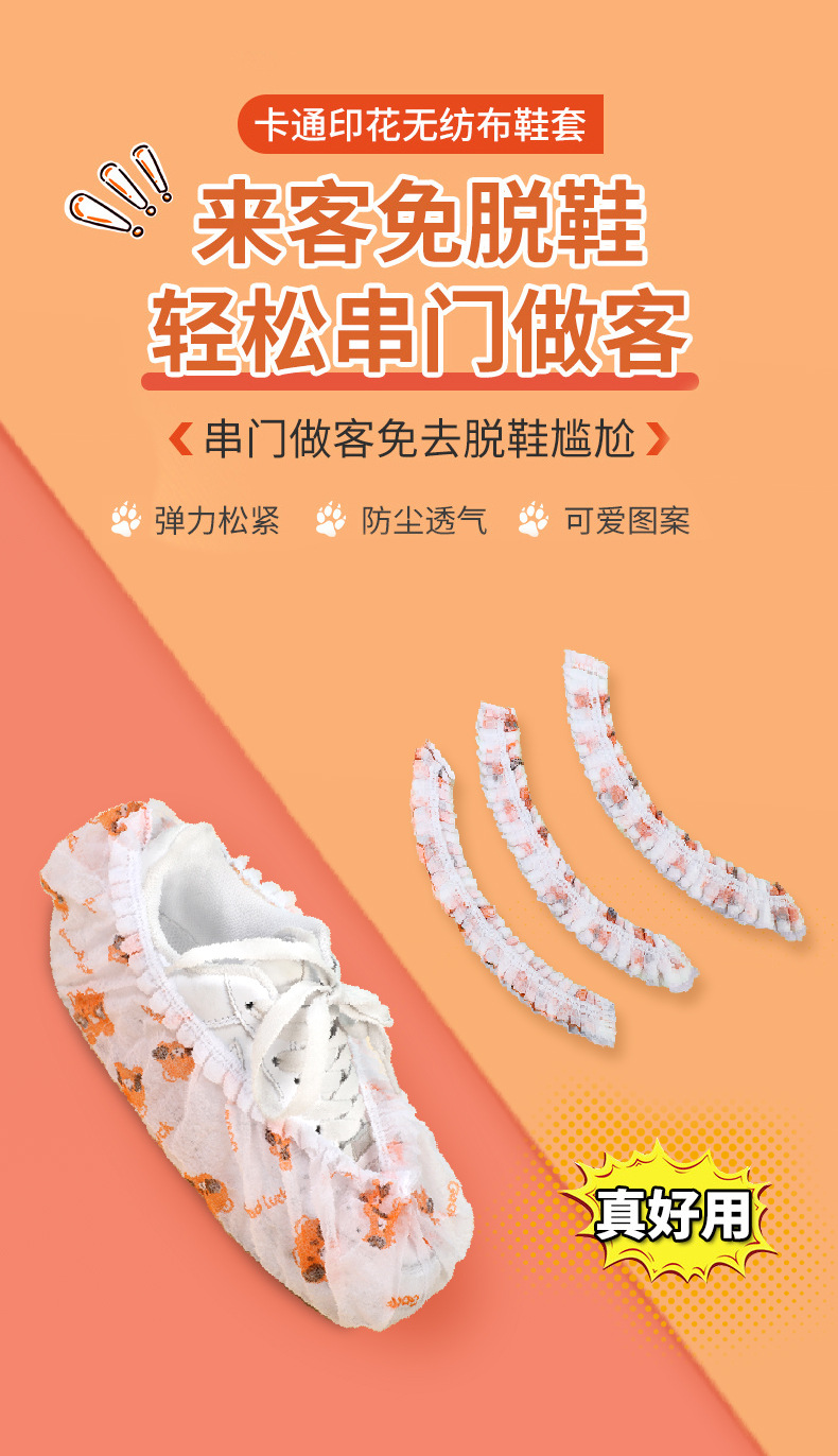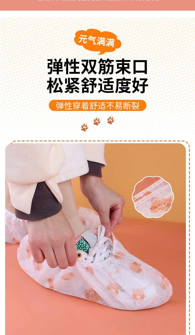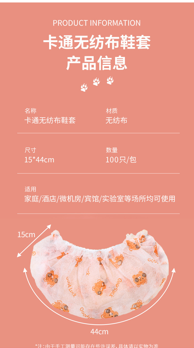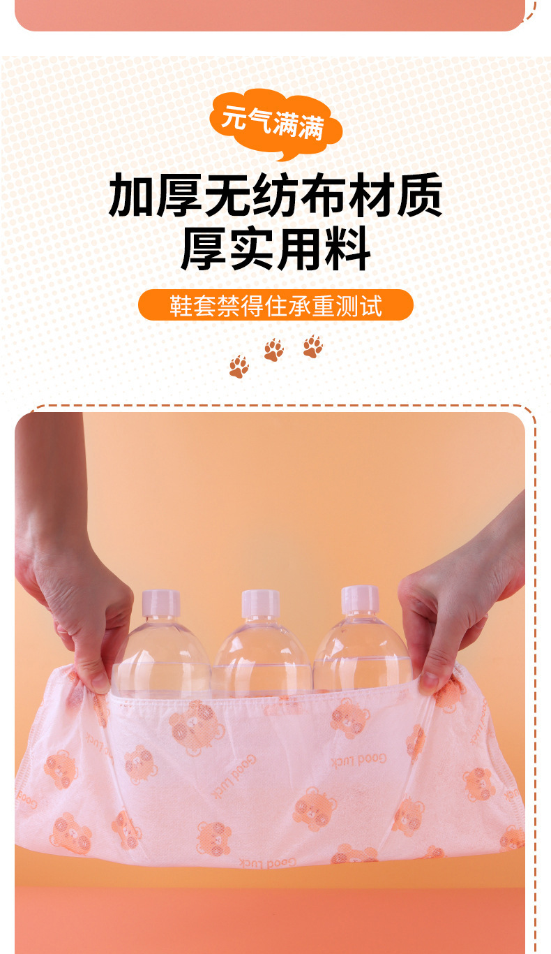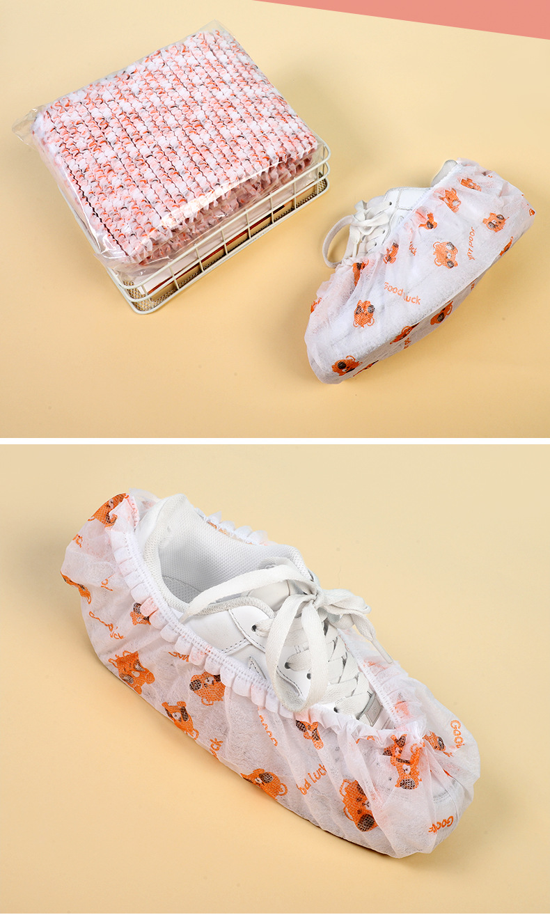 条形款一次性鞋套无纺布卡通印花加厚耐磨家用访华机房学生鞋套