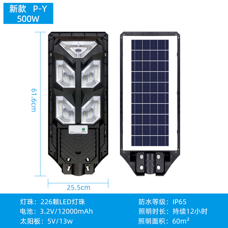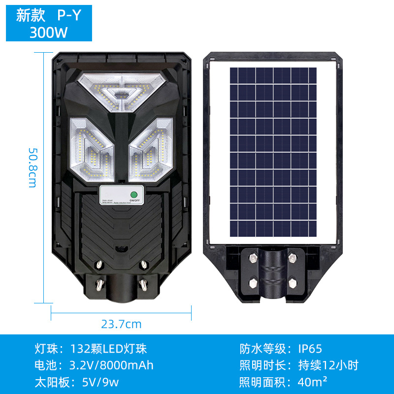 外贸新款一体化太阳能路灯户外led庭院路灯人体感应农村太阳能灯