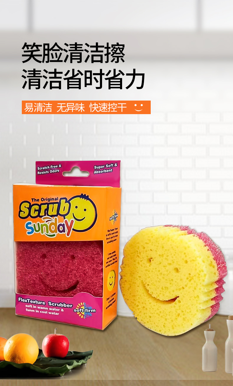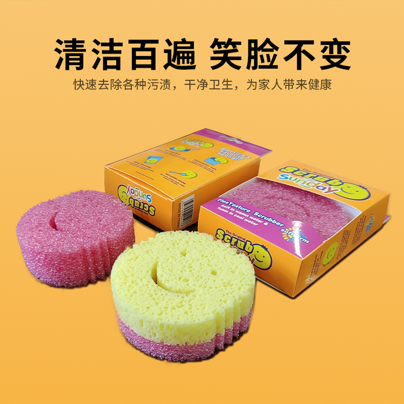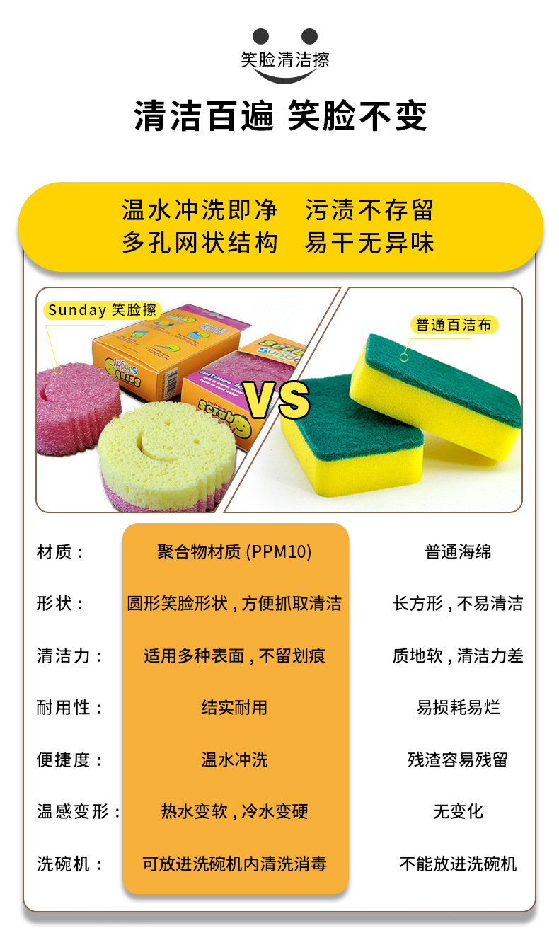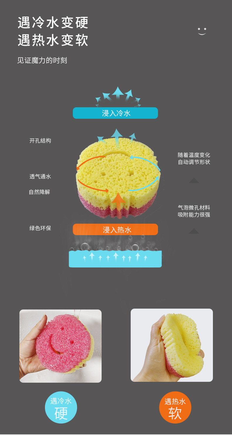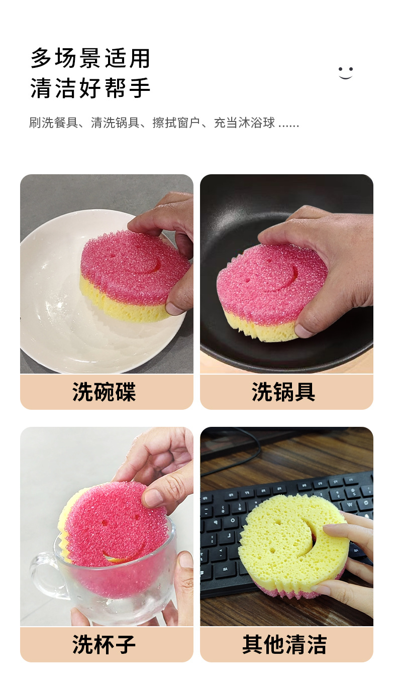 进口感温海绵双层笑脸海绵魔力清洁擦笑脸海绵擦蜂窝海绵