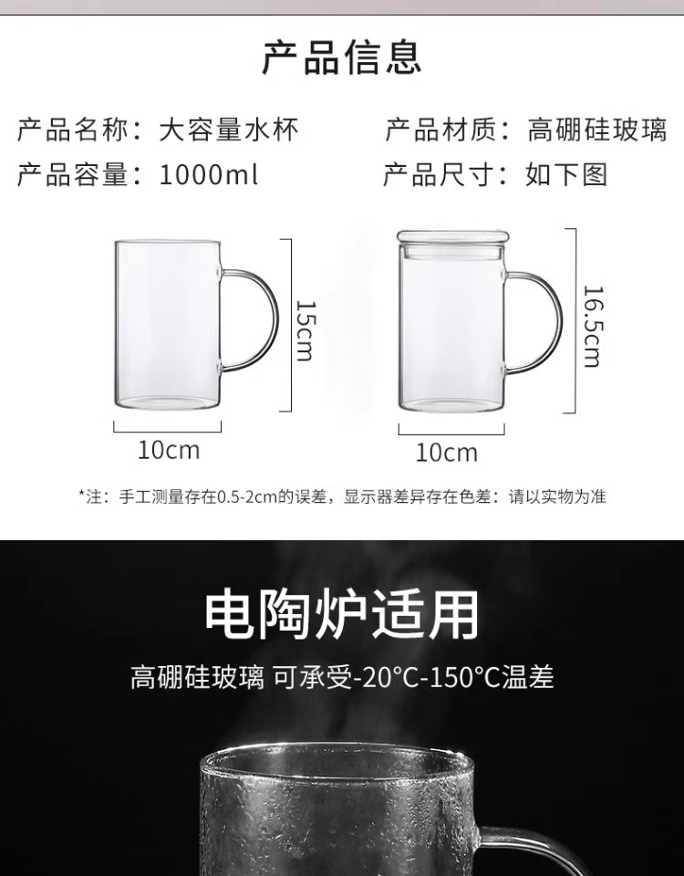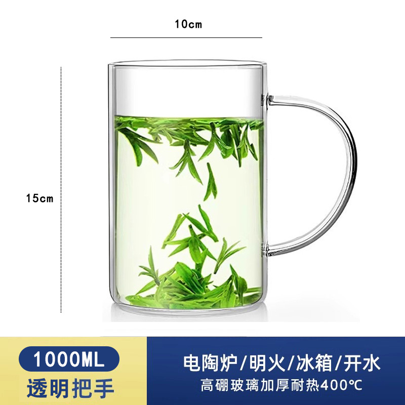 男士杯子啤酒杯玻璃杯耐热防爆耐高温茶杯1000ml大容量办公室水杯