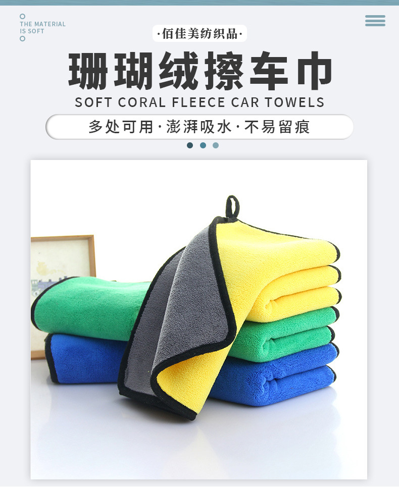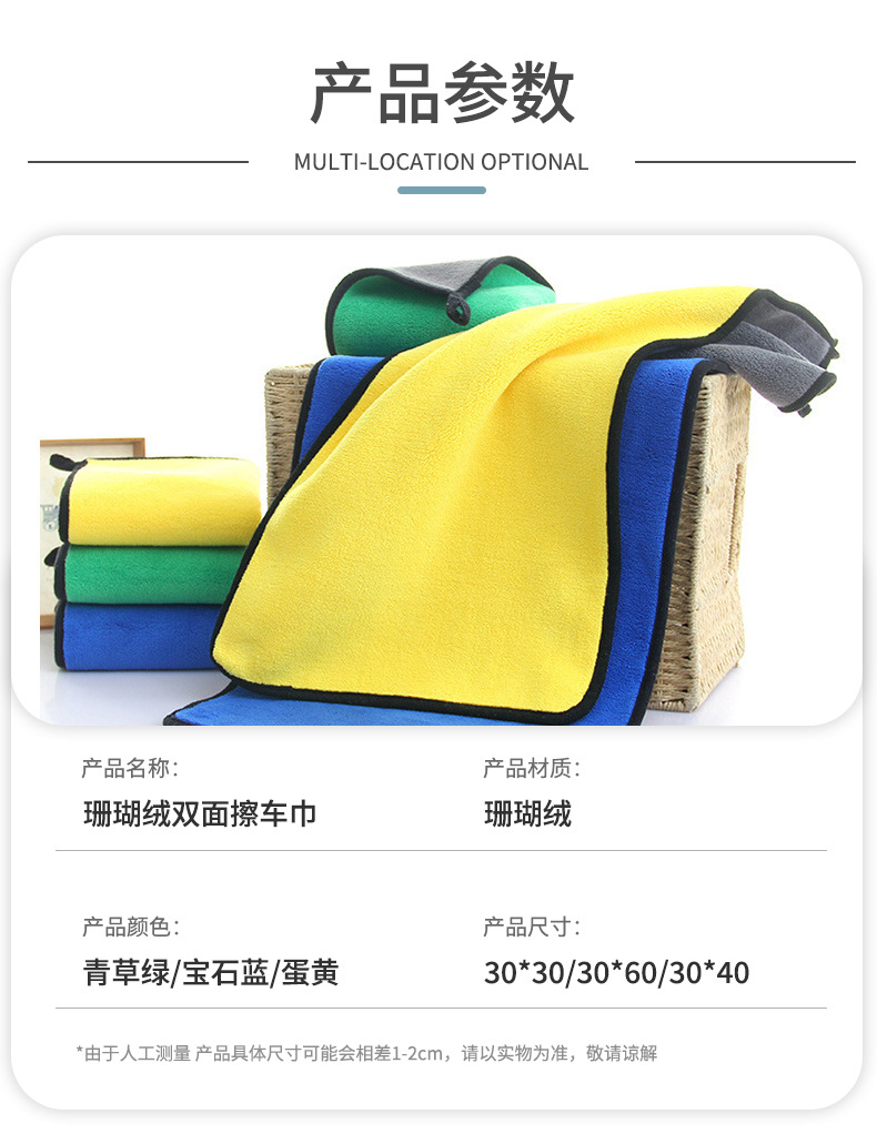 珊瑚绒洗车毛巾家政保洁清洁抹布双面加厚可定logo汽车美容擦车巾