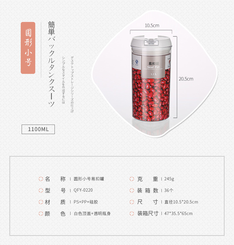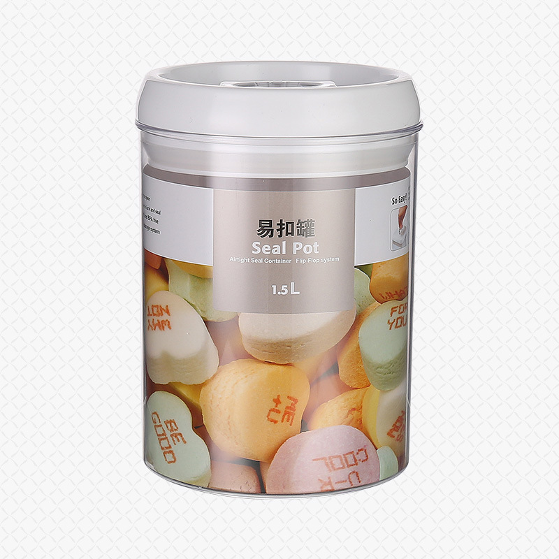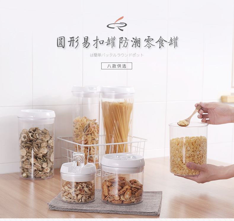 密封罐食品优质透明圆形塑料透明易扣罐子厨房