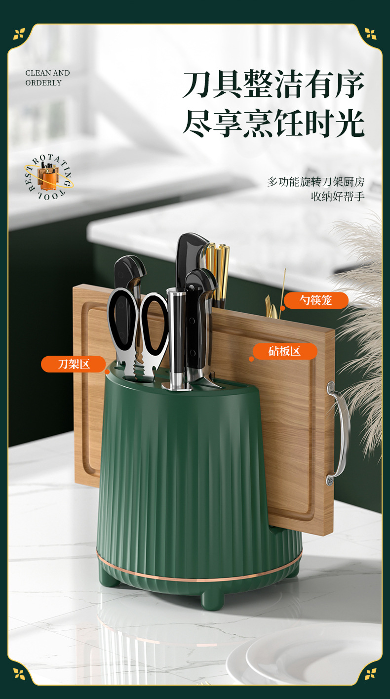 一体收纳盒家用菜刀架子家用旋转置物架厨房旋转多功能筷子筒刀架
